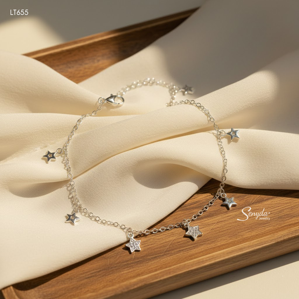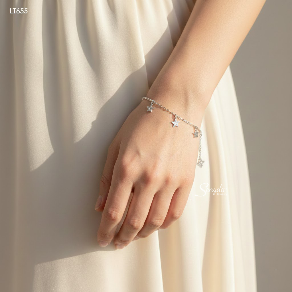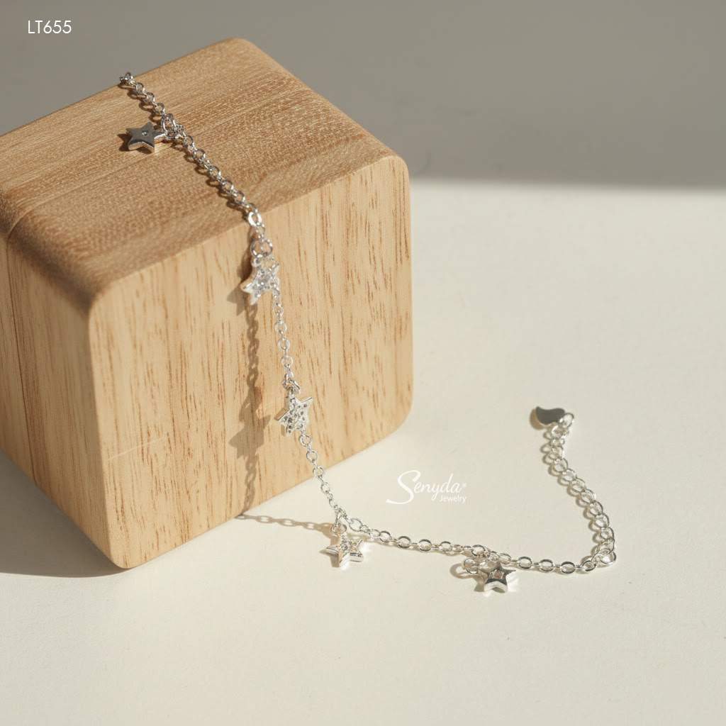 LT655 Lắc tay bạc Ý Senyda ngôi sao trơn đá treo