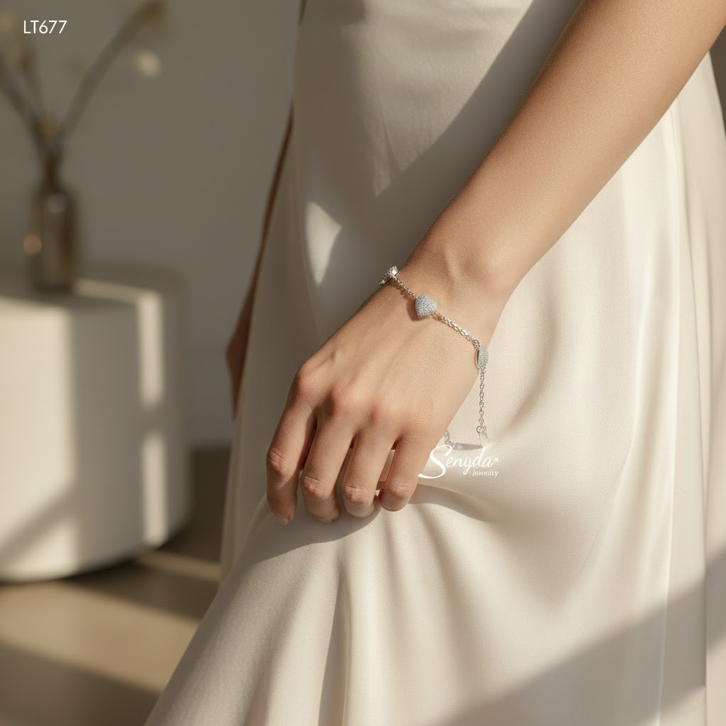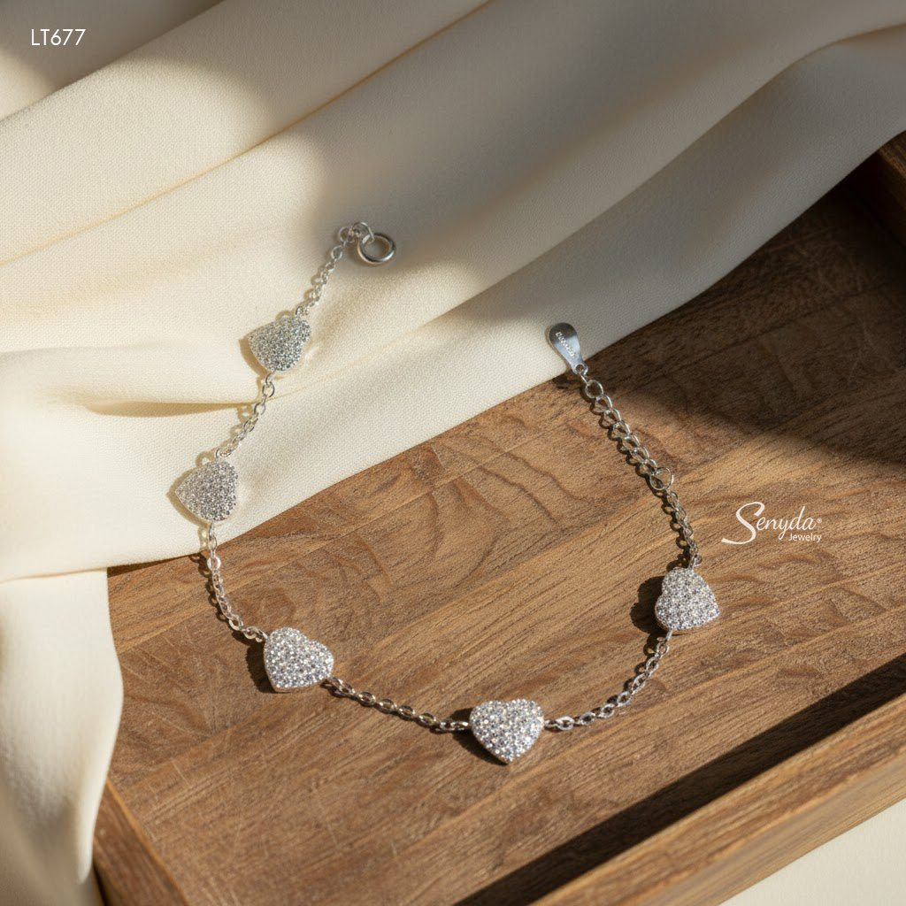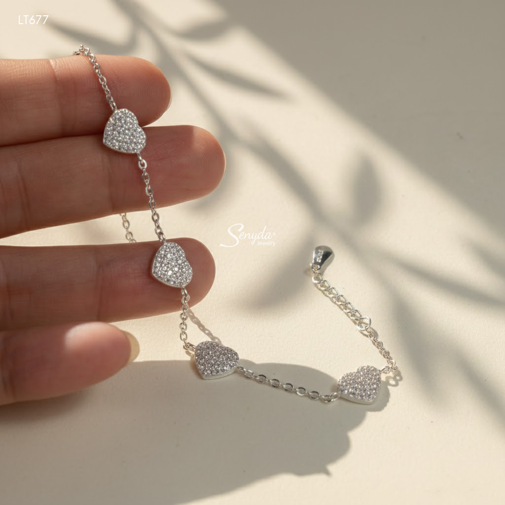 LT677 Lắc tay bạc Ý Senyda dây chữ cong xen tim đá