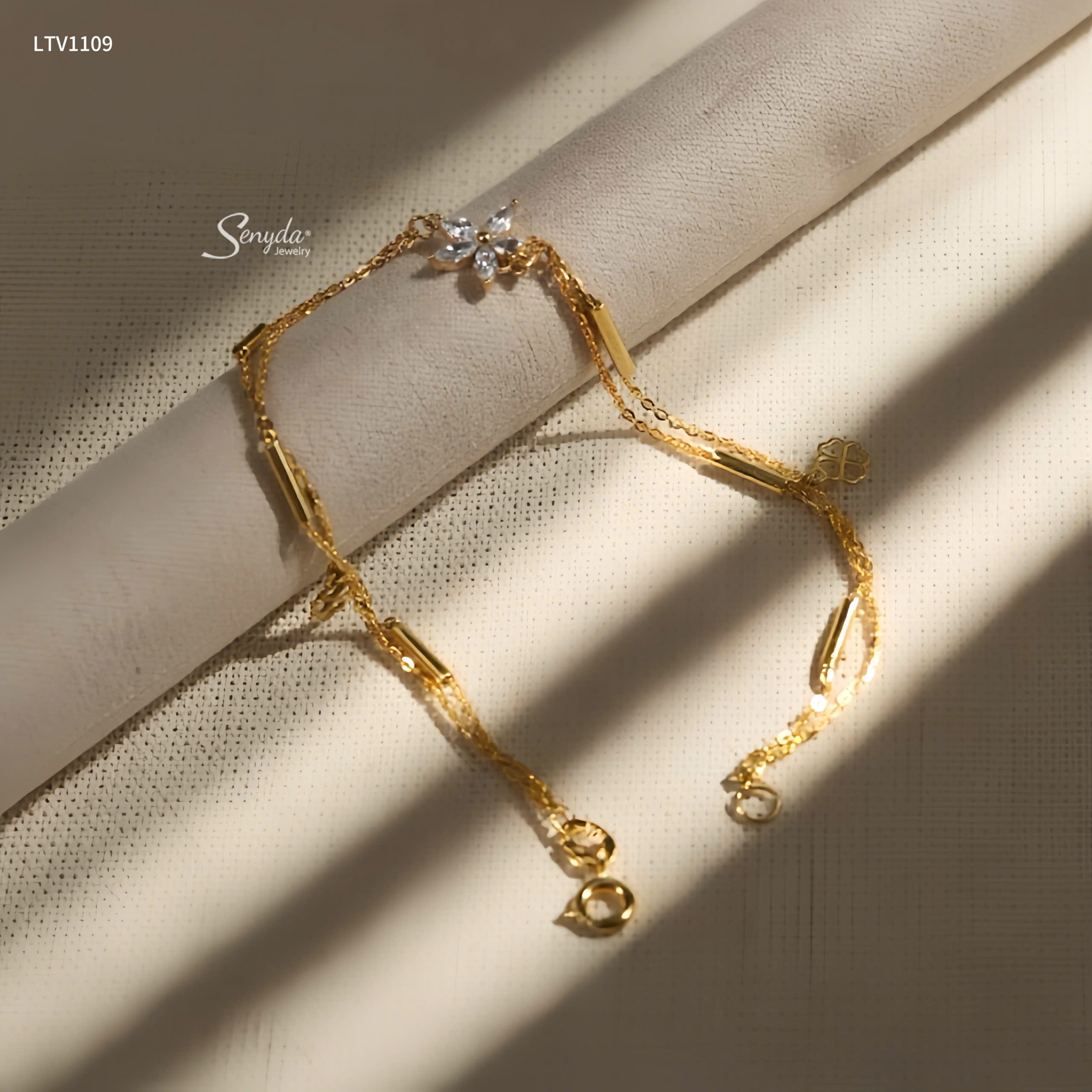 48 đánh giá cho LTV1109 Lắc tay vàng Senyda dây cong kép xỏ ống trơn mặt hoa 5 cánh đá