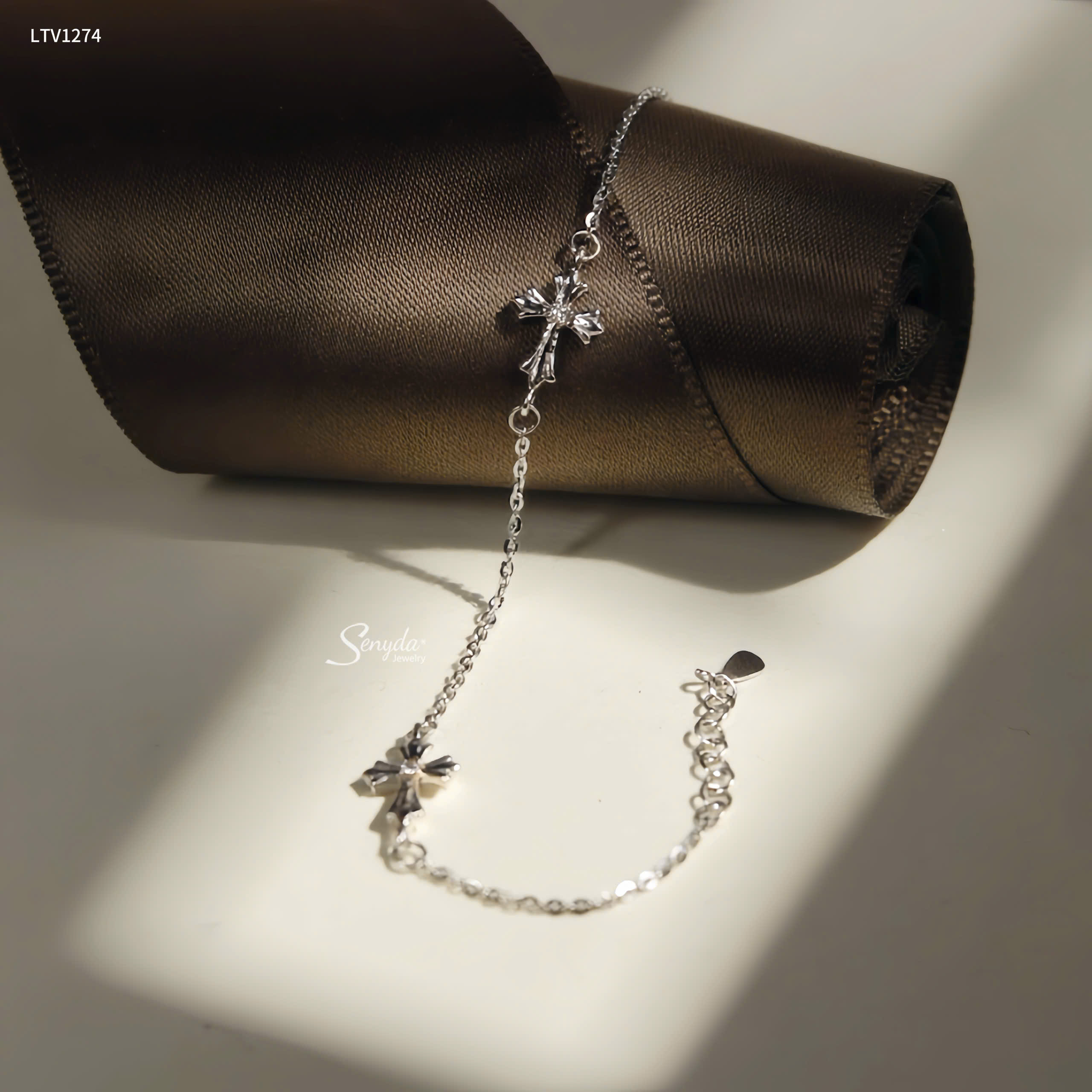 Mô tả: LTV1274 Lắc tay vàng Senyda dây chữ cong xen mặt thánh giá