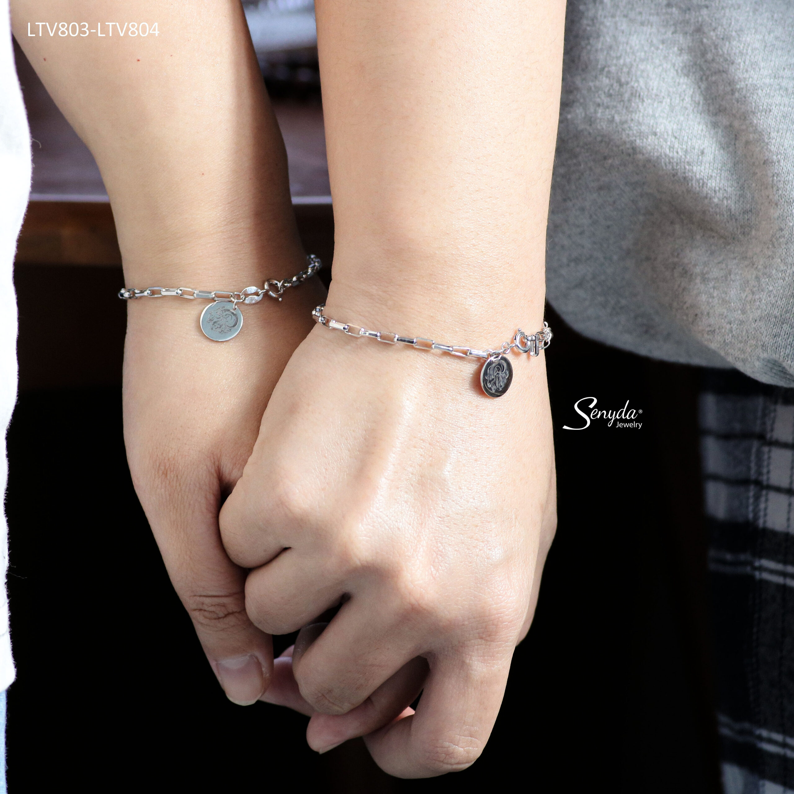 LTV803 Lắc tay vàng Senyda khoen dài treo thẻ tròn