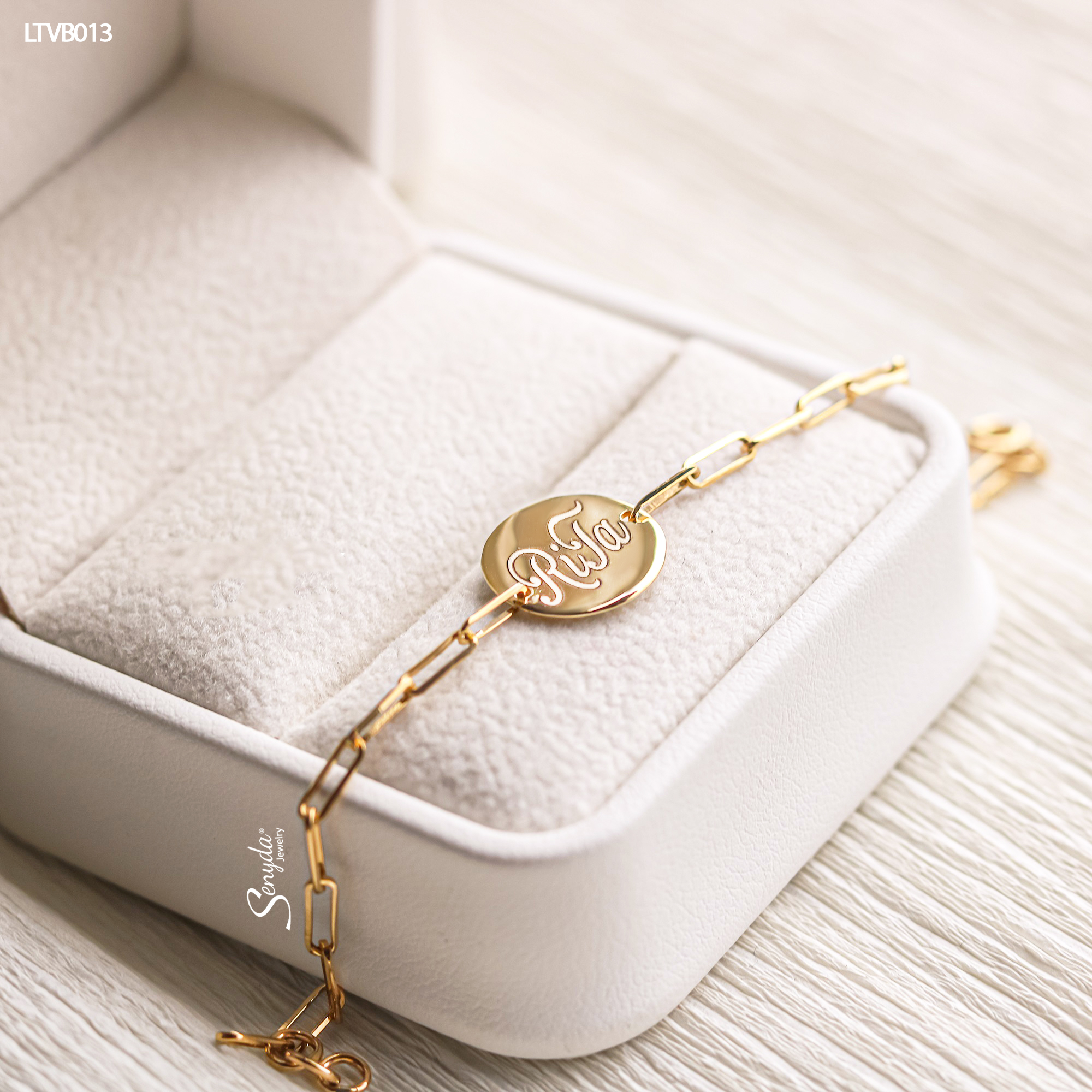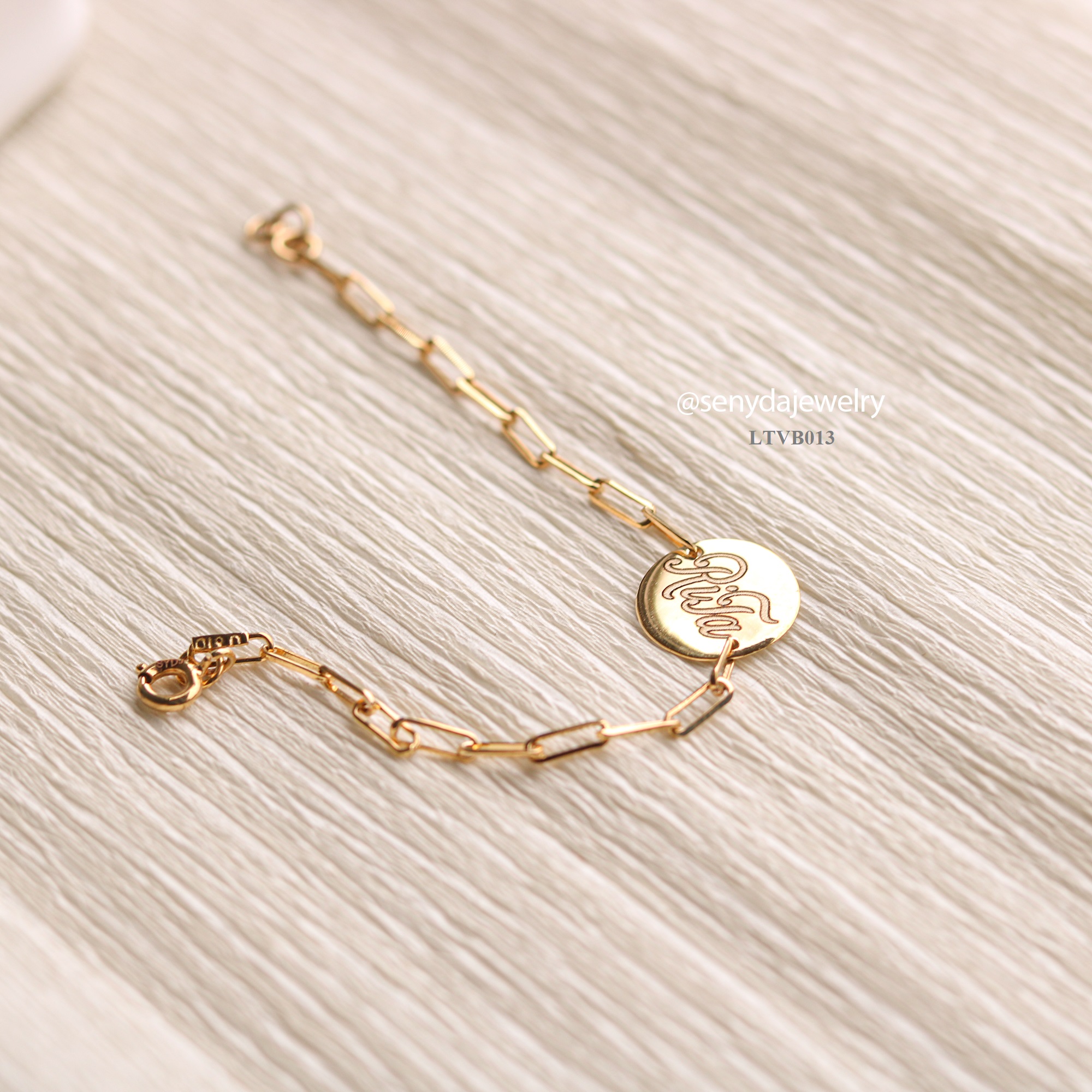 Mô tả: LTVB013 Lắc tay vàng bé Senyda khoen dài thẻ tròn khắc theo yêu cầu