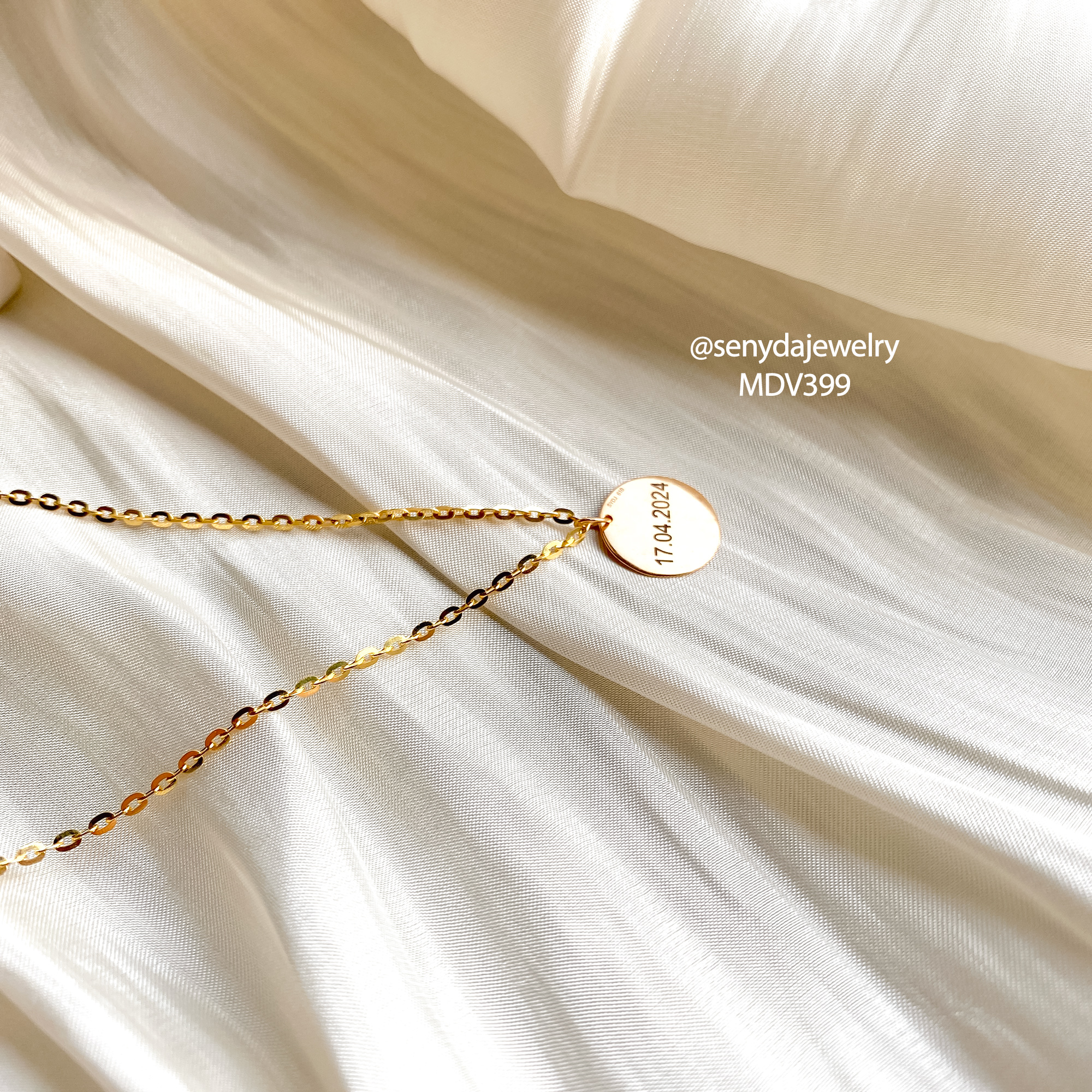 Mô tả: MDV012-M Dây chuyền vàng custom Senyda thẻ tròn khắc tên/dấu vân tay