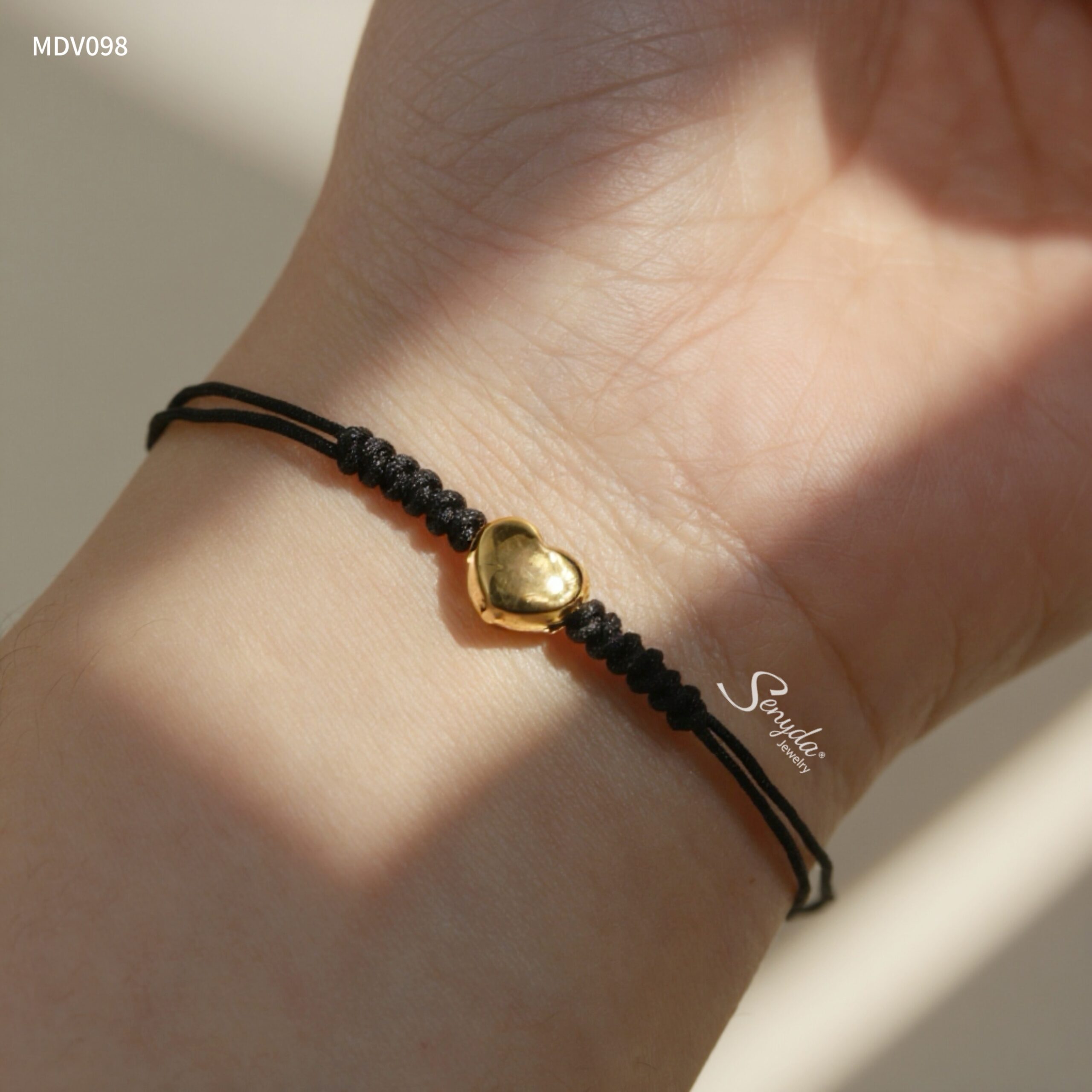Mô tả: MDV098 Vòng dây chỉ đen charm vàng Senyda mặt tim trơn xỏ nhỏ