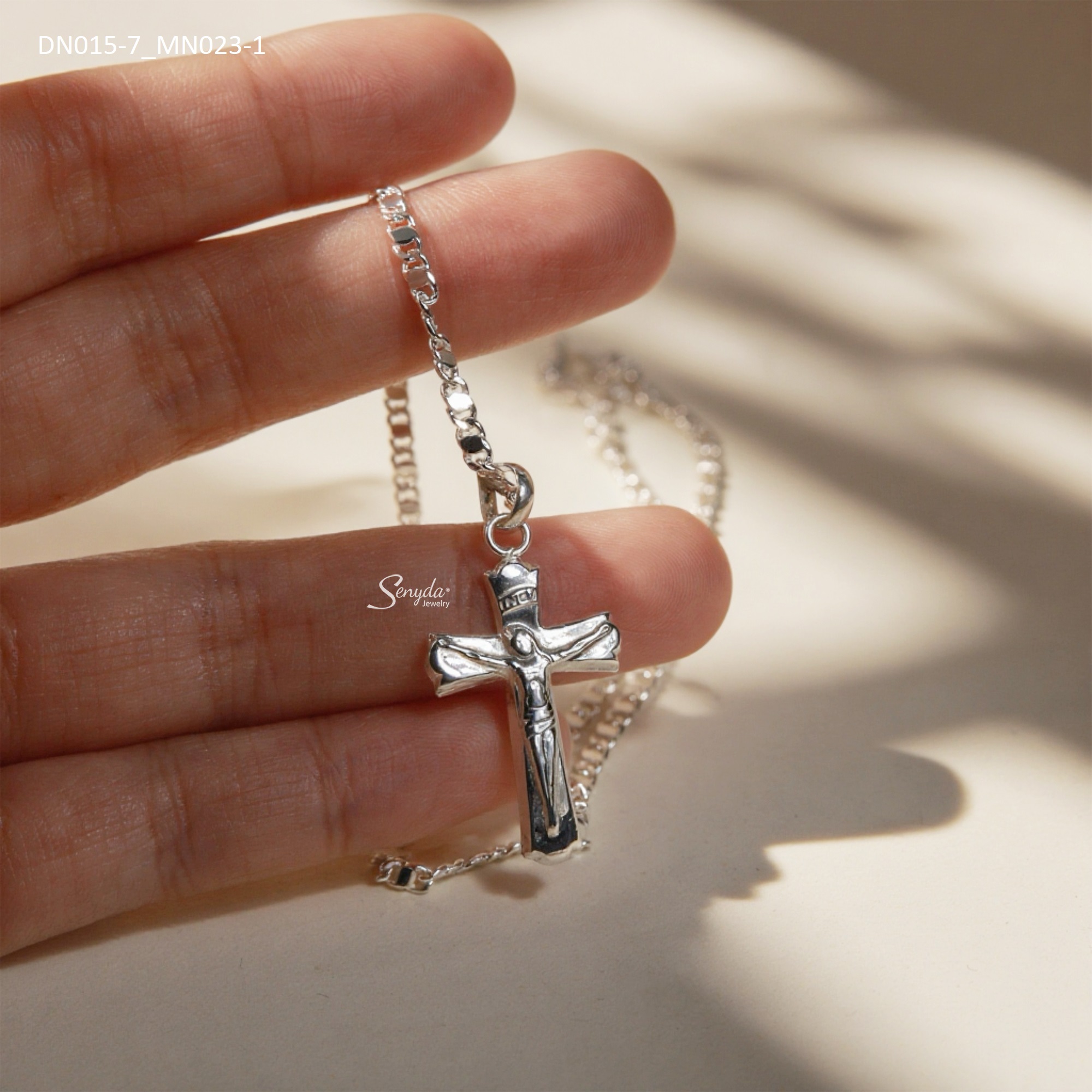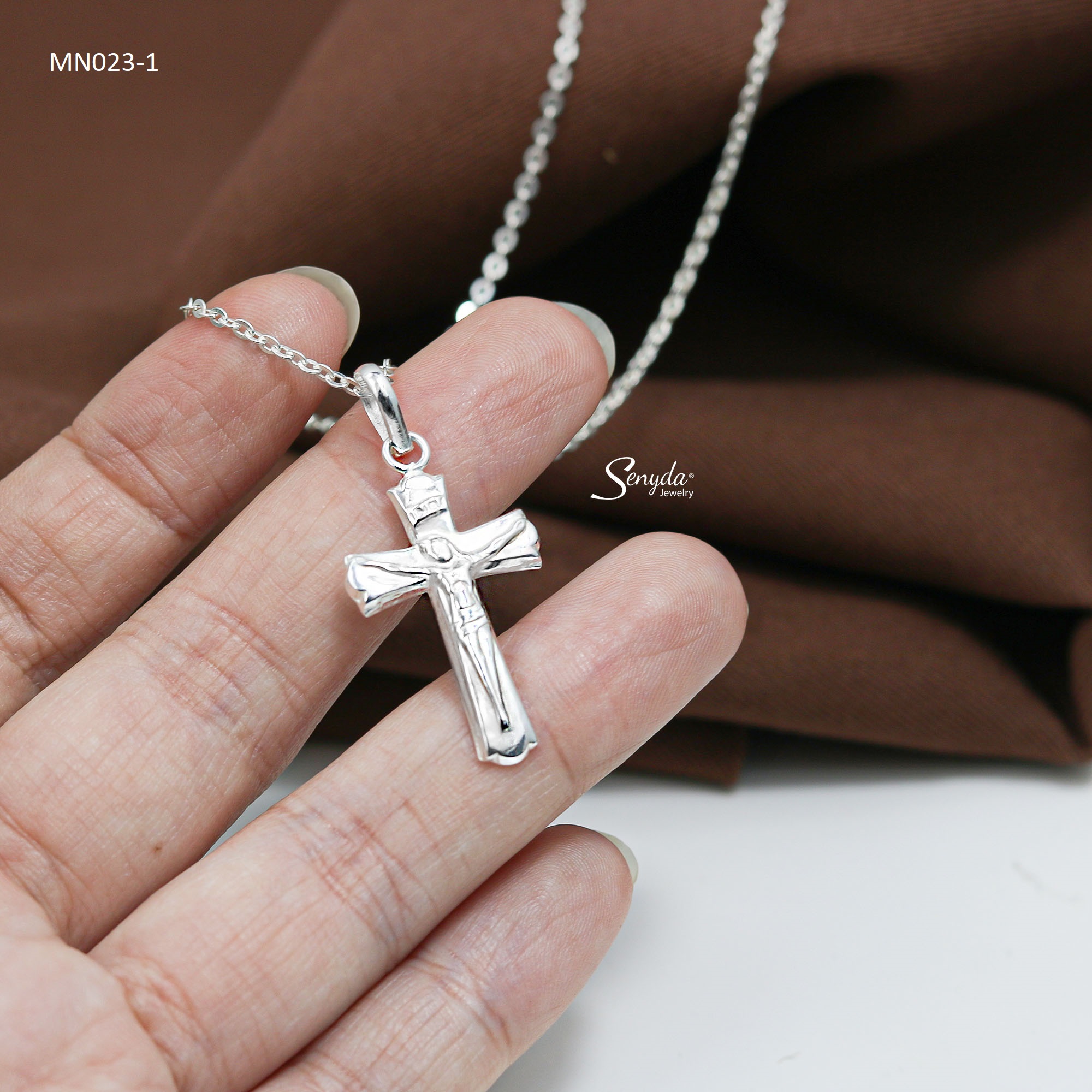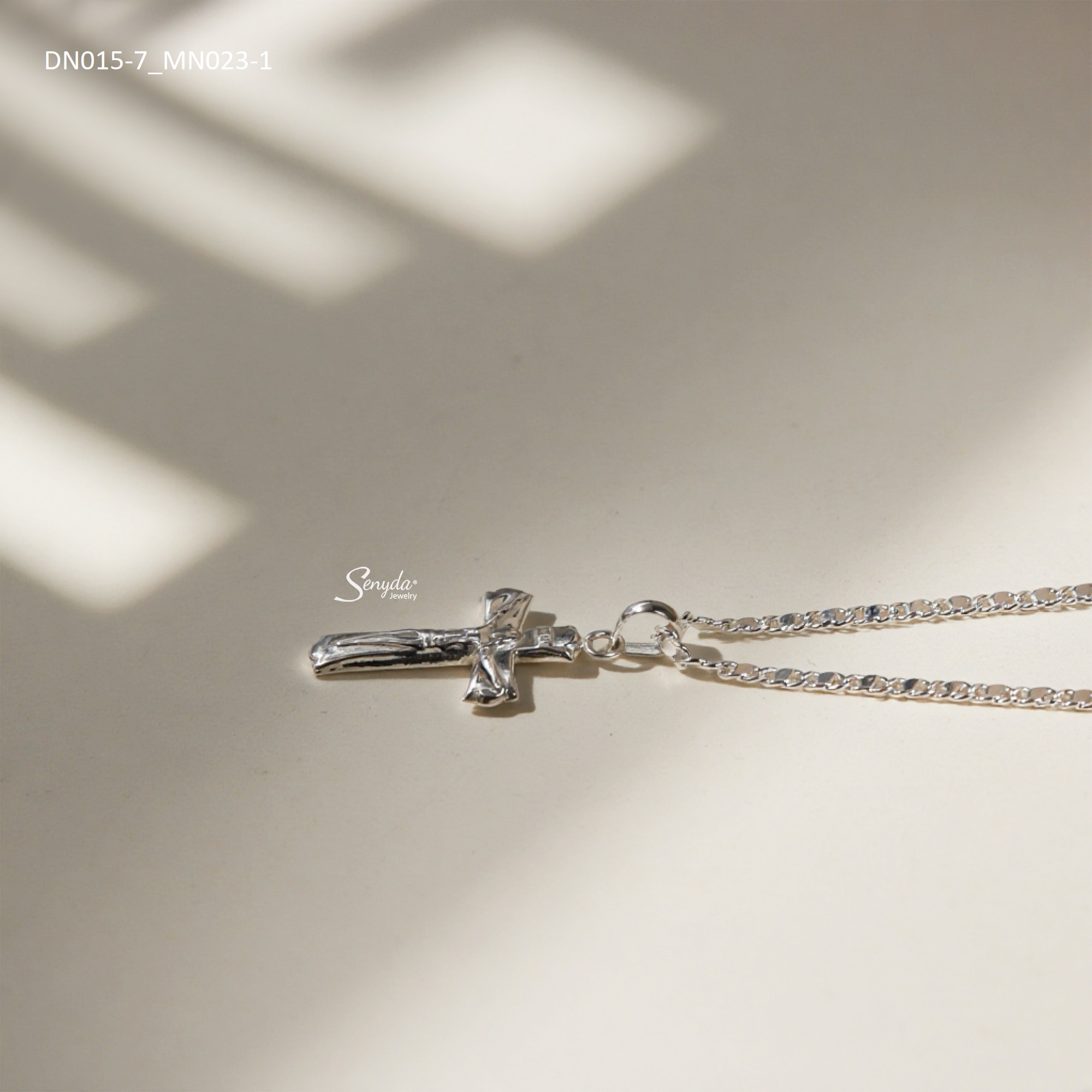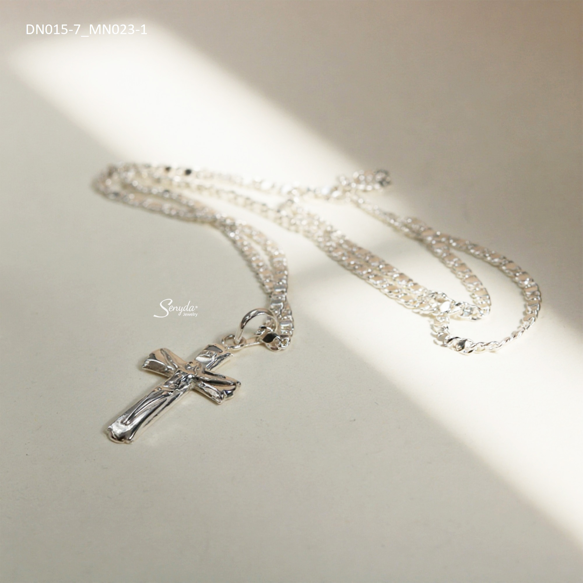 Mô tả: MN023 Dây chuyền bạc nam Senyda Mặt Thánh giá trơn hoa văn nhỏ