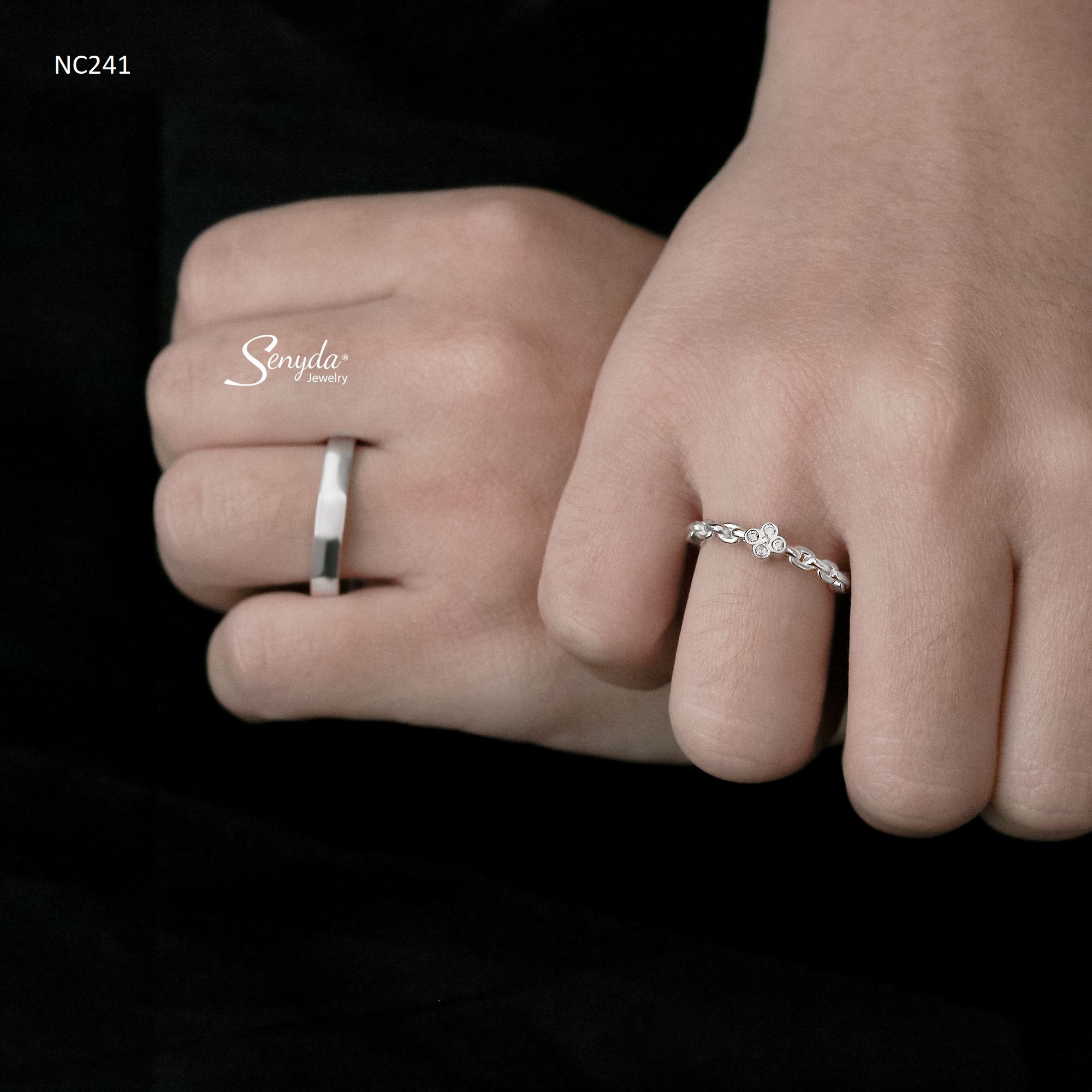 82 đánh giá cho NC241 Nhẫn đôi bạc Ý Senyda đai trơn – hoa 4 cánh đai kiểu chữ cong nối liền