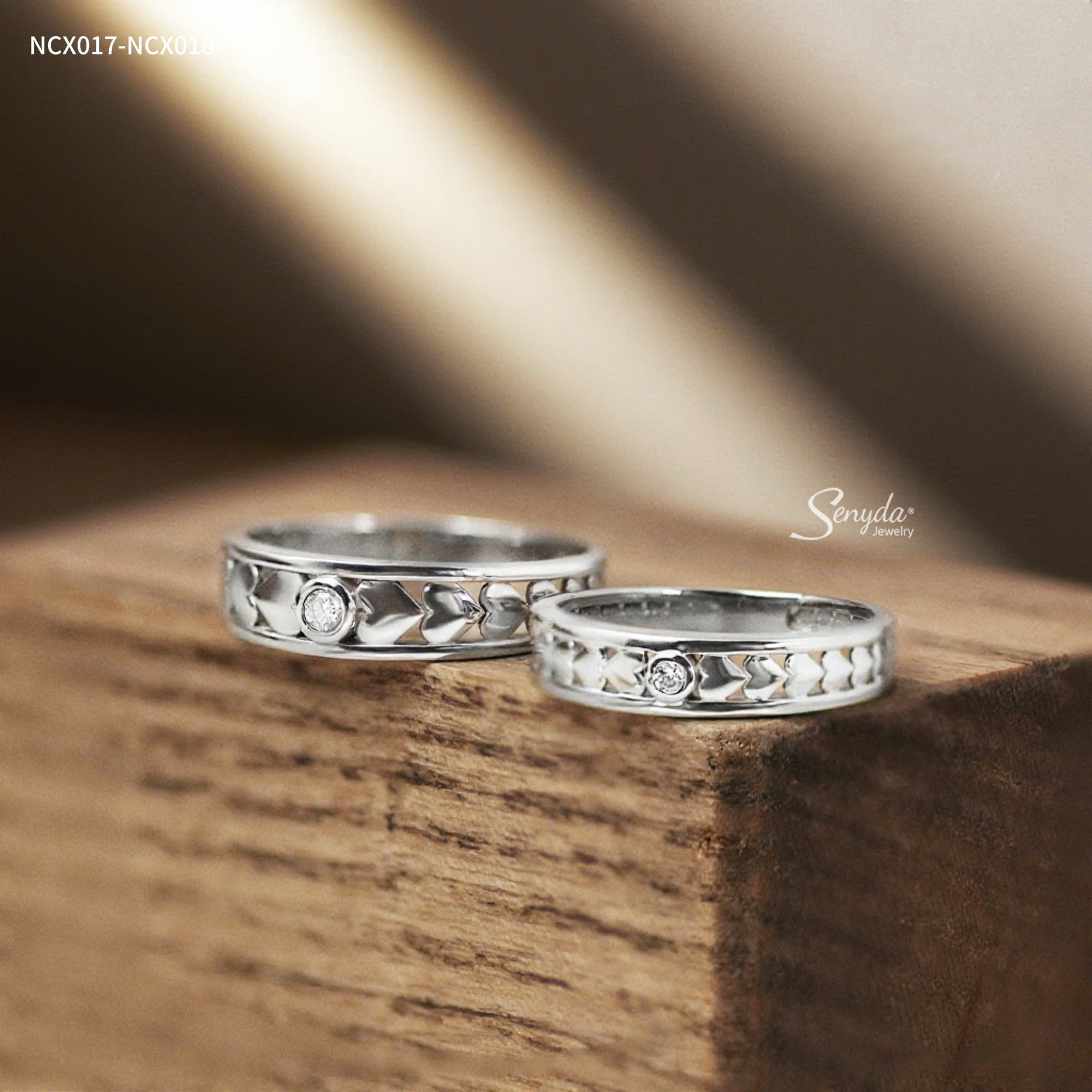 14 đánh giá cho NCX017-NCX018 Nhẫn cưới kim cương Senyda cẩn 1 hột đai trái tim