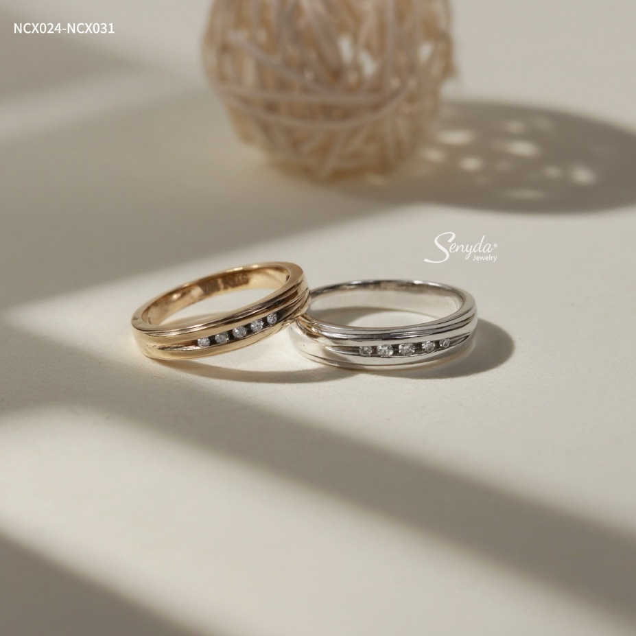 52 đánh giá cho NCX031-NCX024 Nhẫn cưới kim cương Senyda bản trơn ốp cẩn xoàn