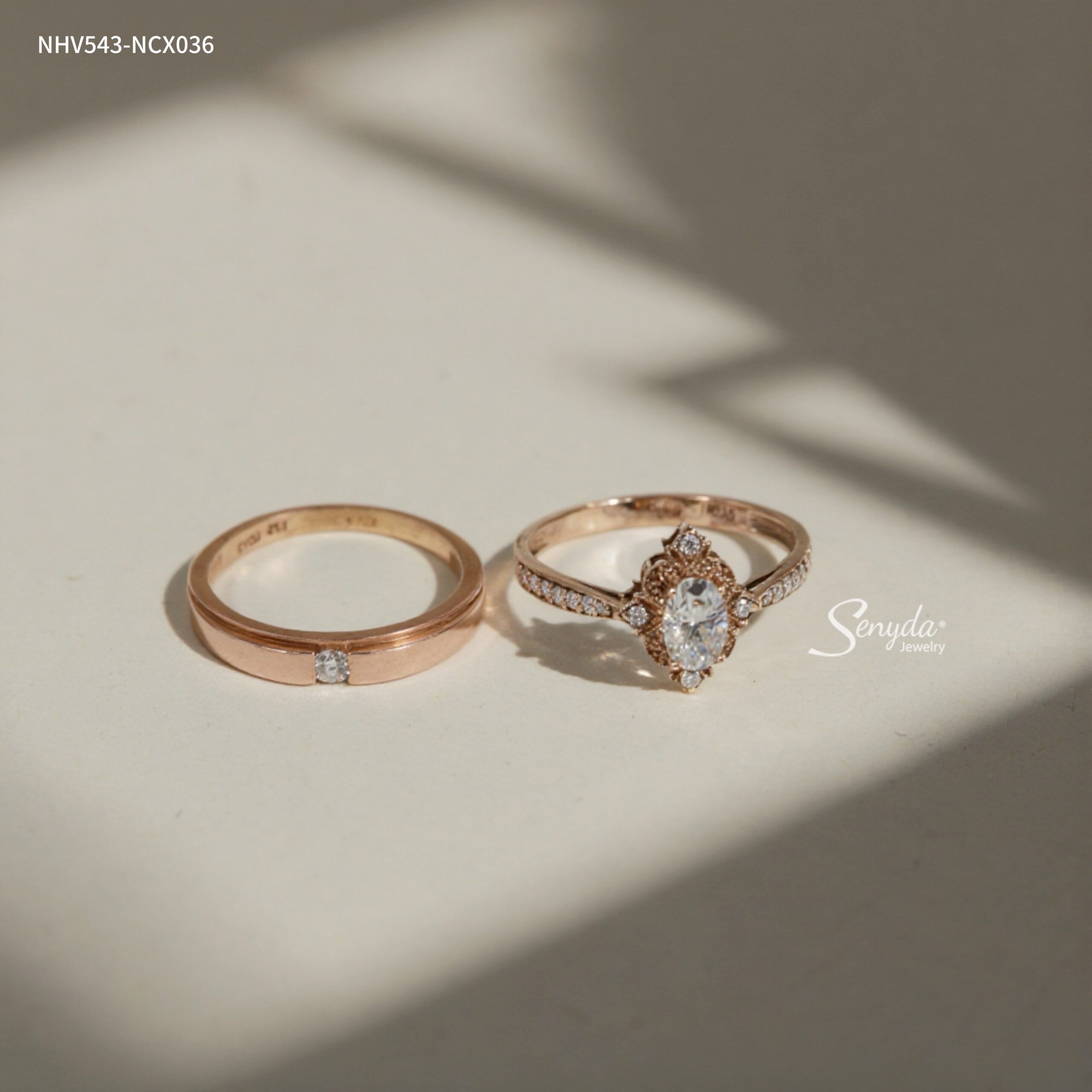 Hãy là người đầu tiên nhận xét “NCX036-NHV543 Nhẫn cưới kim cương Senyda 1 hột rãnh trên hột oval viền thoi hoa văn”