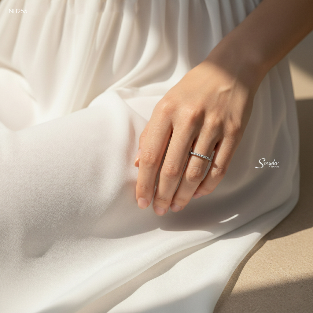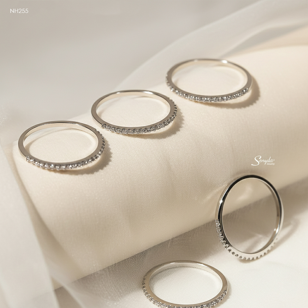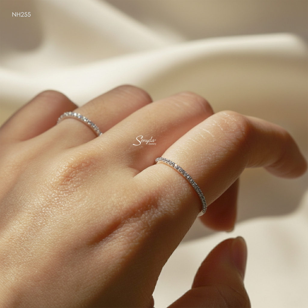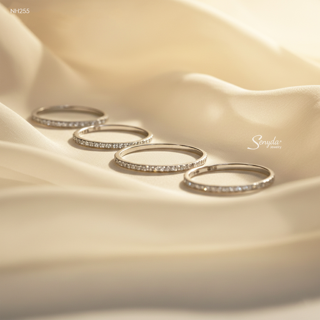 154 đánh giá cho NH255 Nhẫn bạc Ý Senyda nửa hàng đá 1.2li