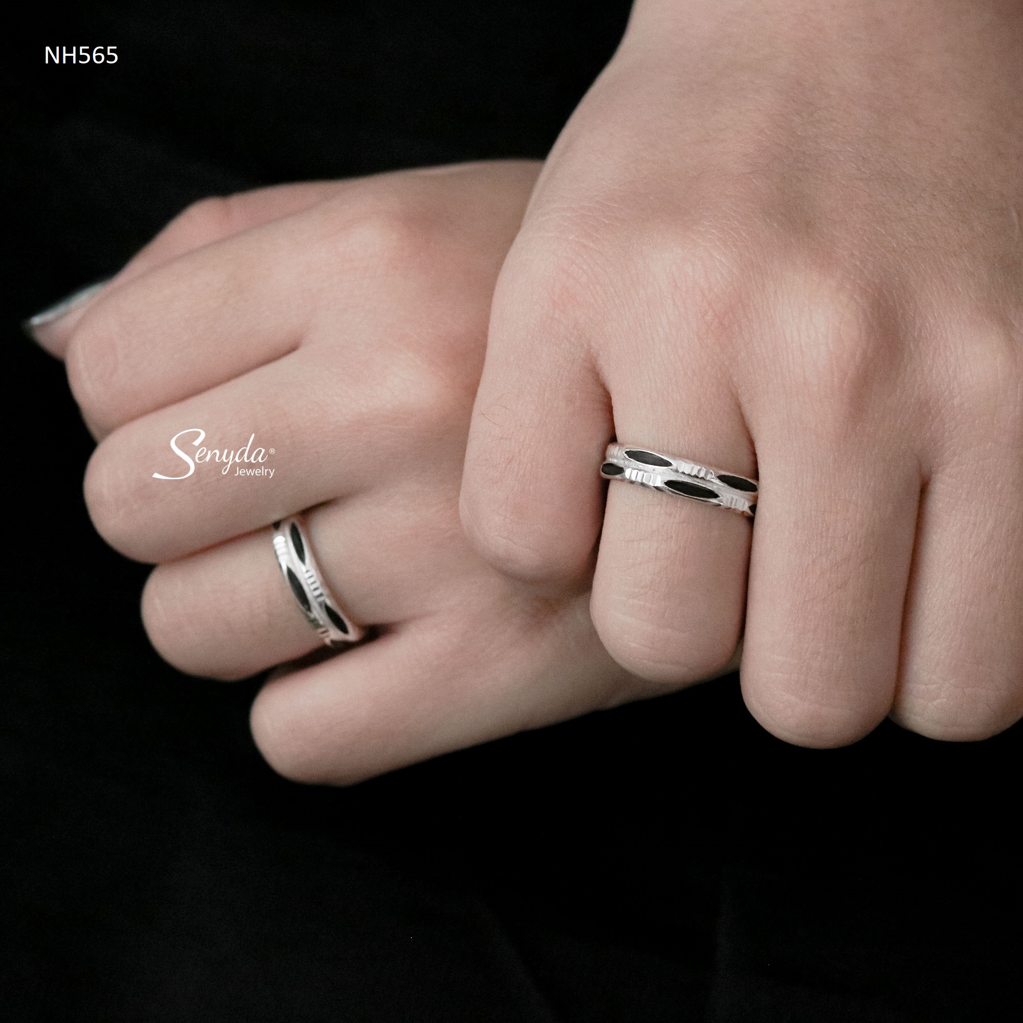 Mô tả: NH565 Nhẫn đôi bạc Ý Senyda lông đuôi voi kép