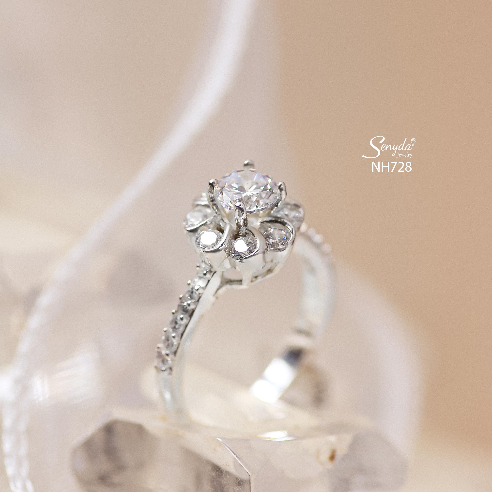 Mô tả: NH728 Nhẫn bạc Ý Senyda 1 hột viền hoa cẩn đá hàng đá nhỏ