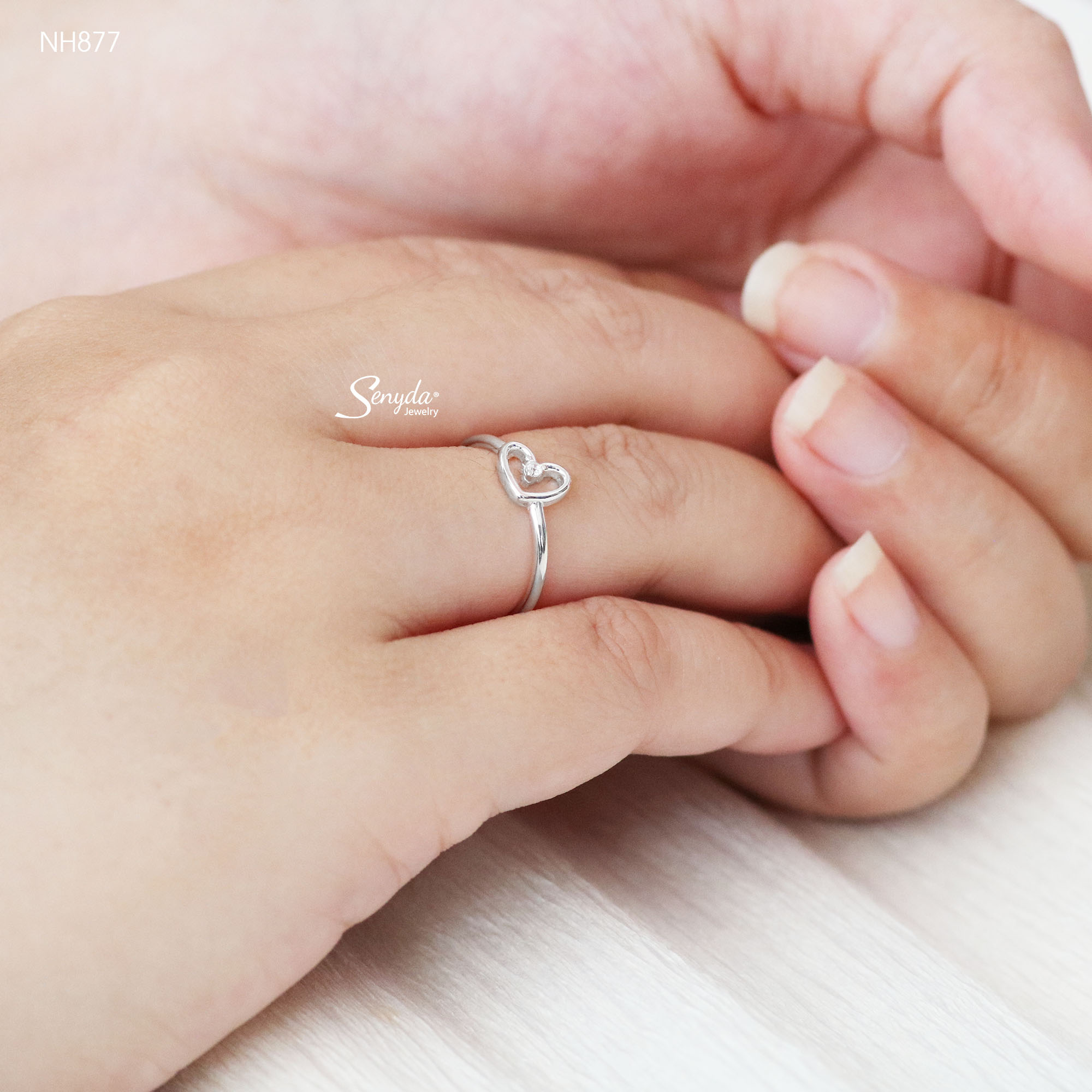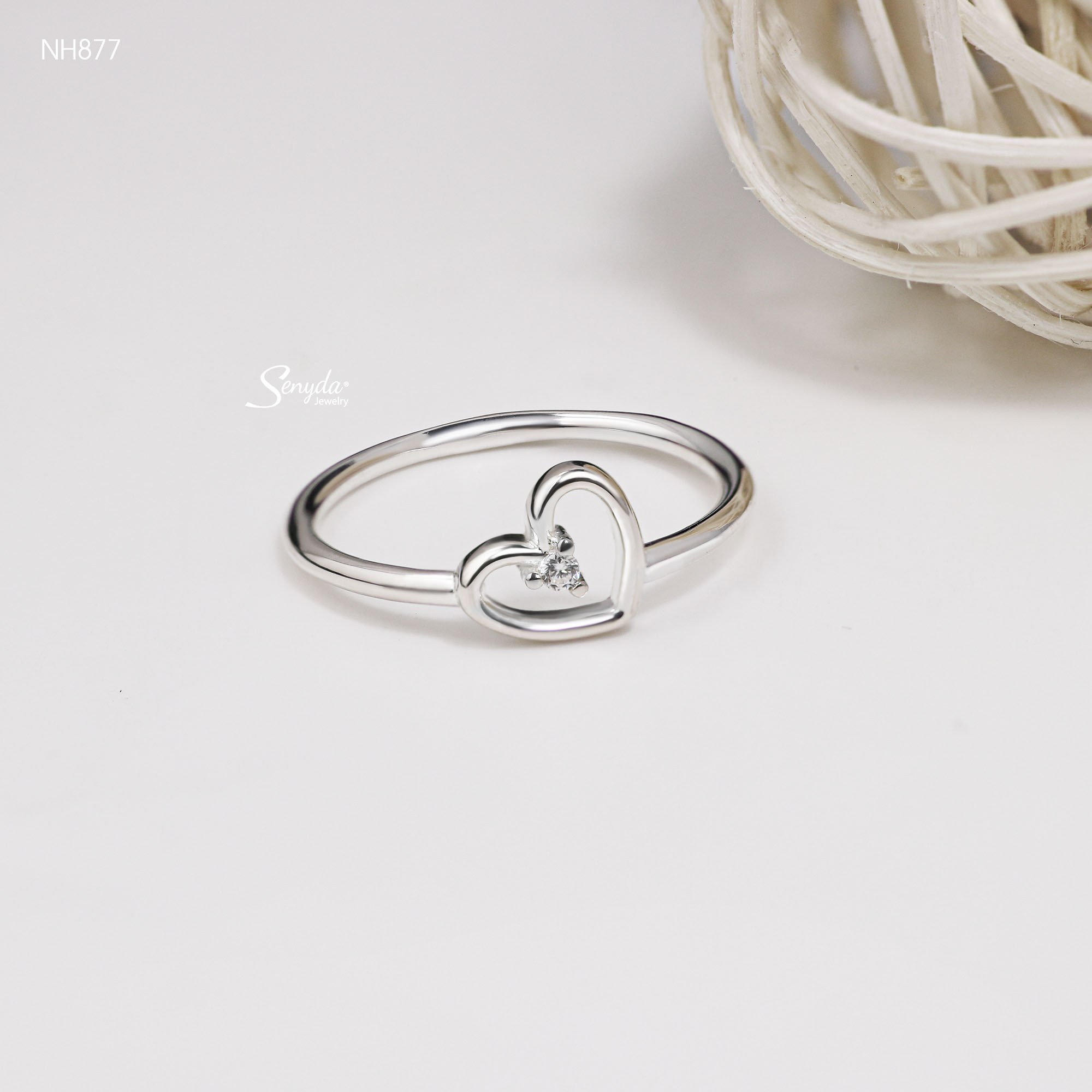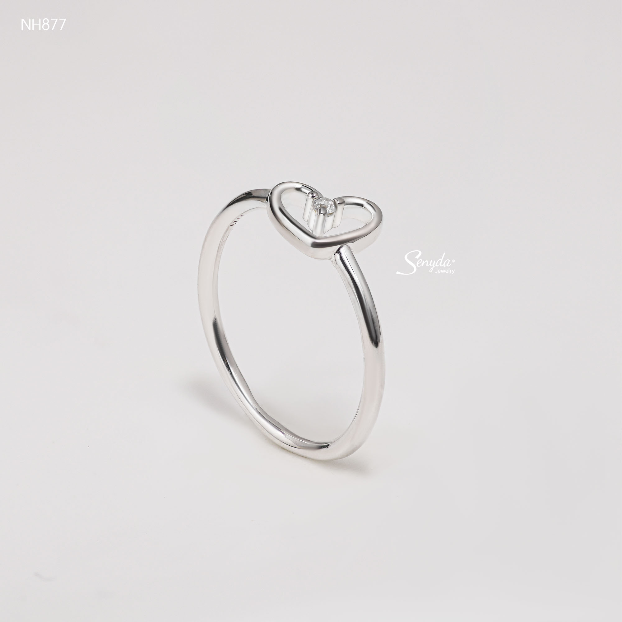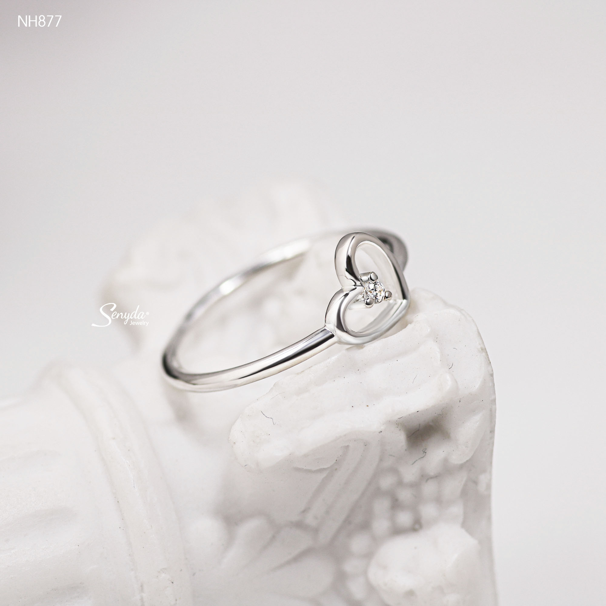 Mô tả: NH877 Nhẫn bạc Ý Senyda trái tim rỗng nụ đá giữa