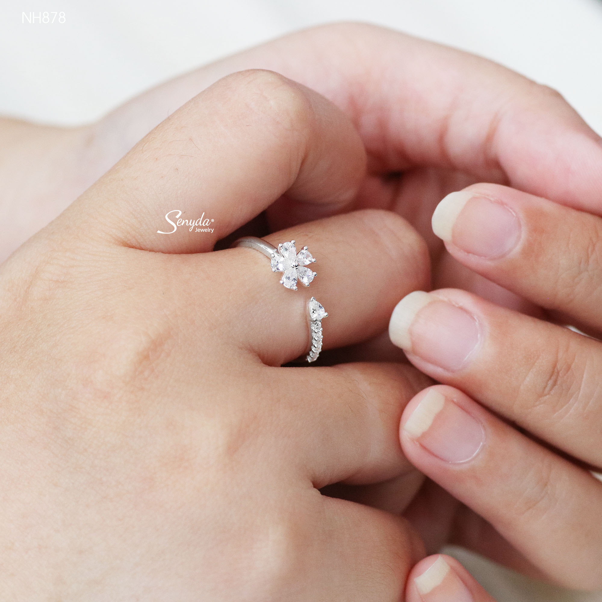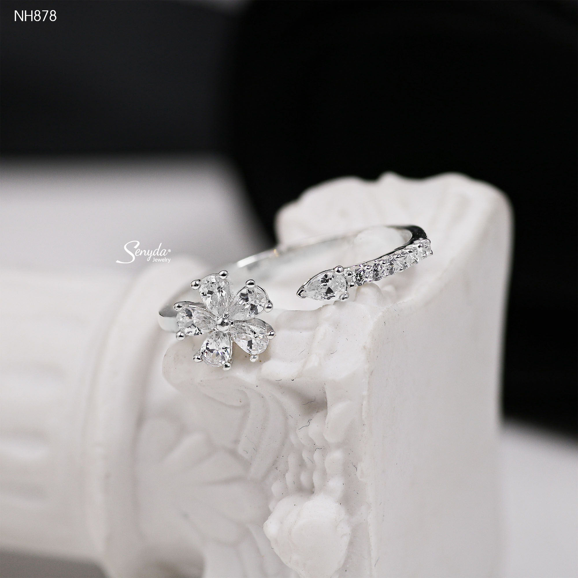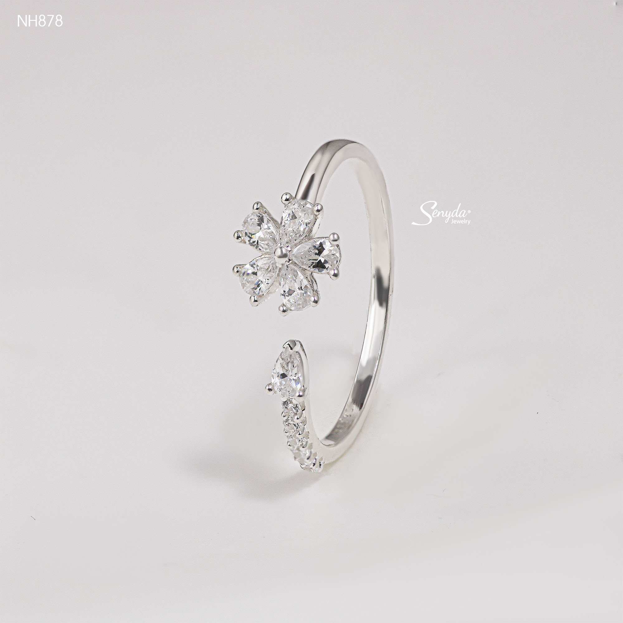 Mô tả: NH878 Nhẫn bạc Ý Senyda hoa 5 cánh đá giọt nước hở
