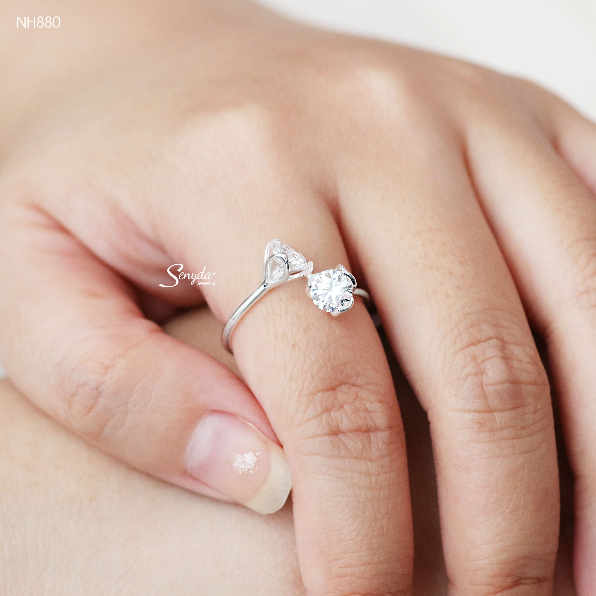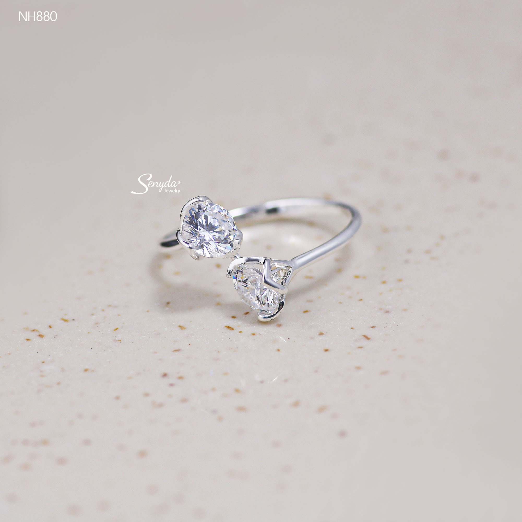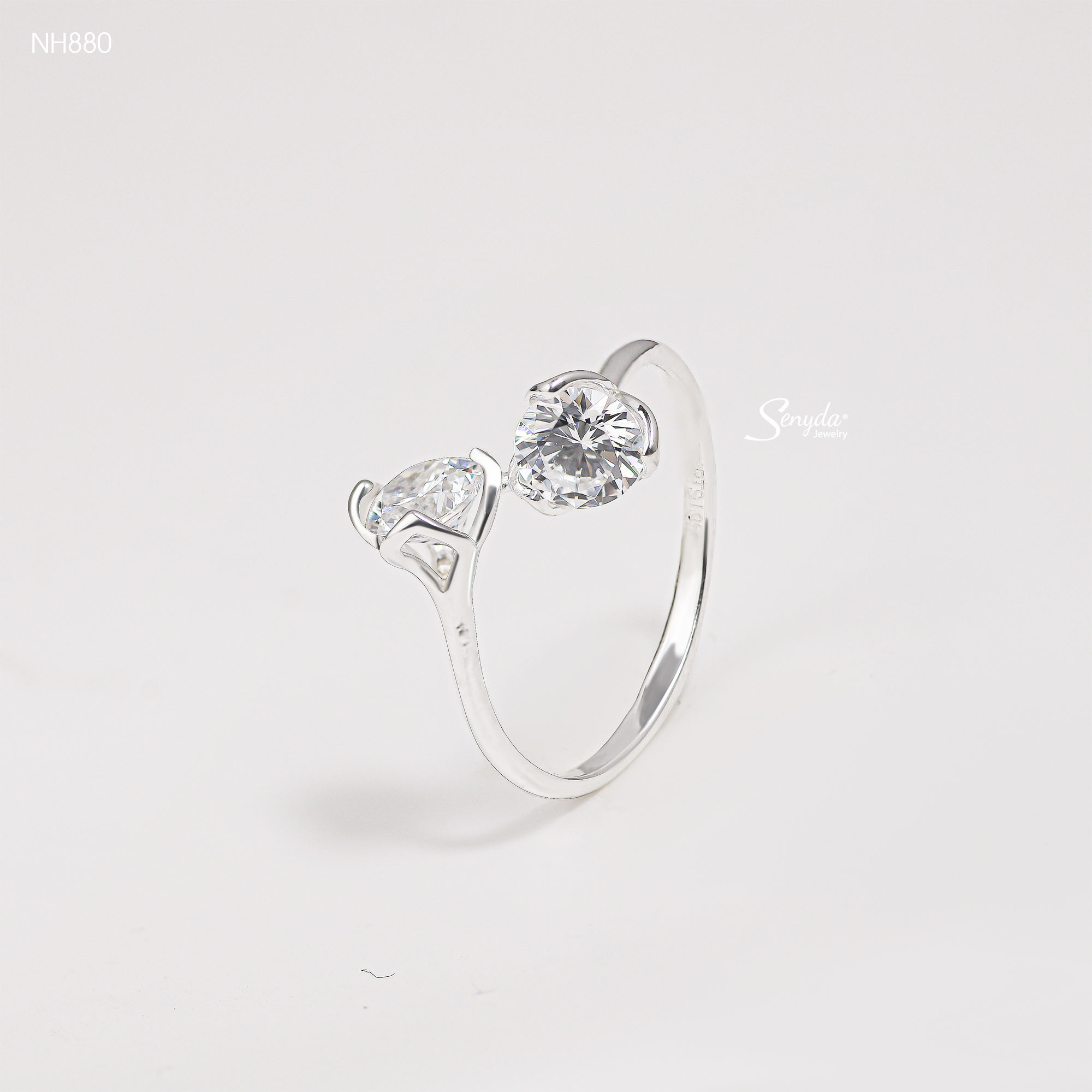 Mô tả: NH880 Nhẫn bạc Ý Senyda 2 nụ đá chấu ốp hoa trơn