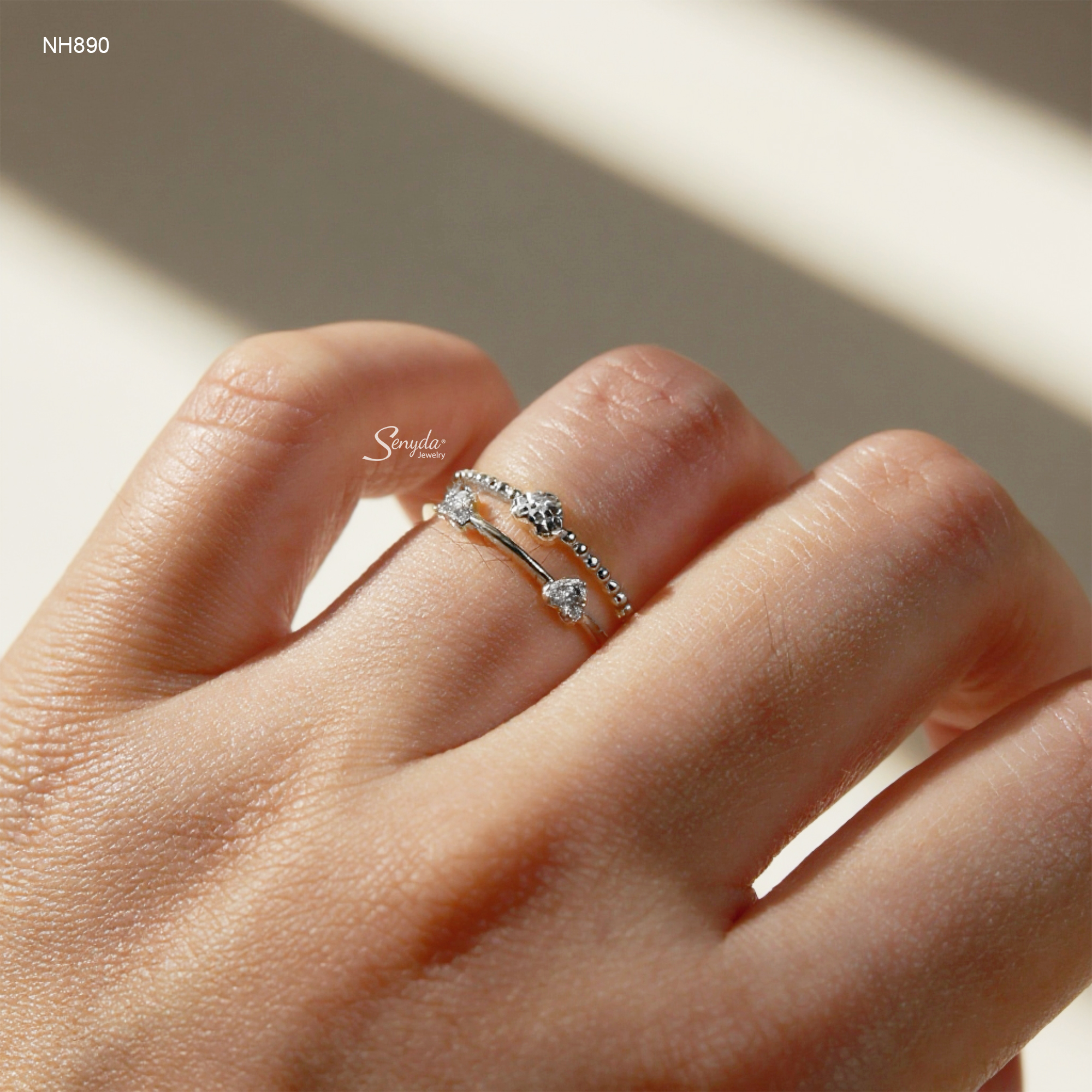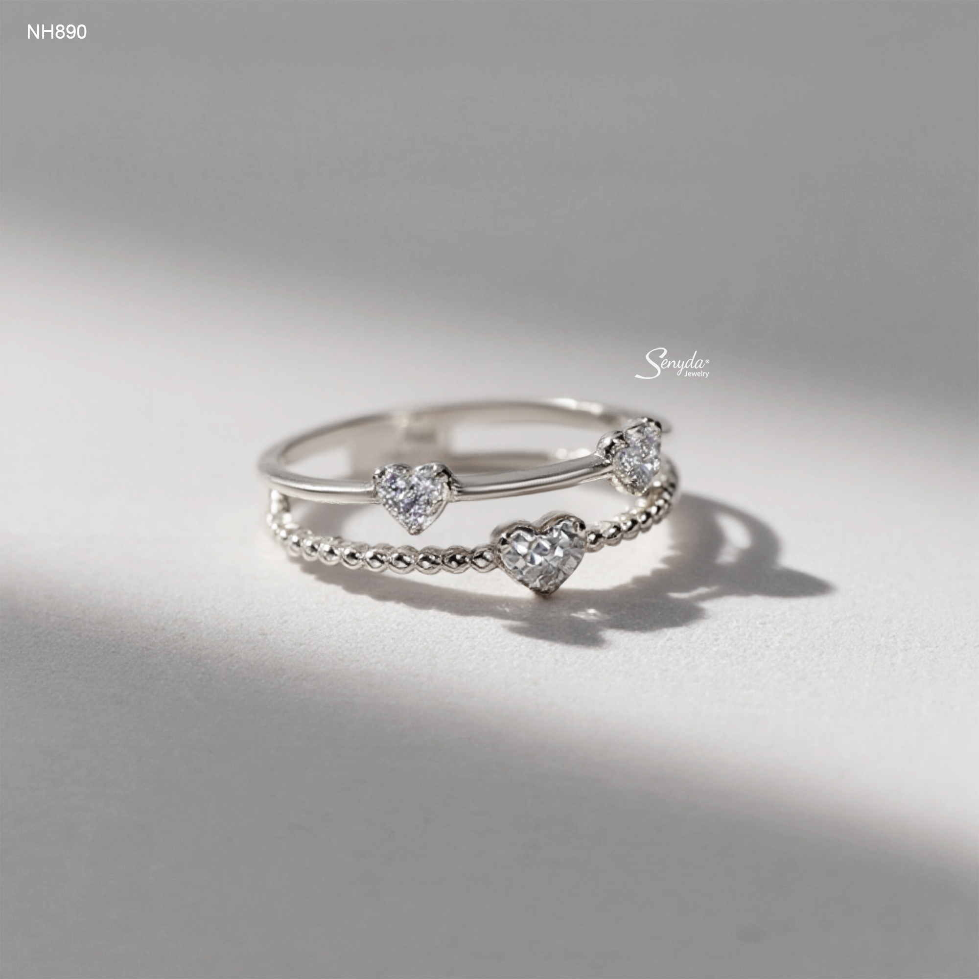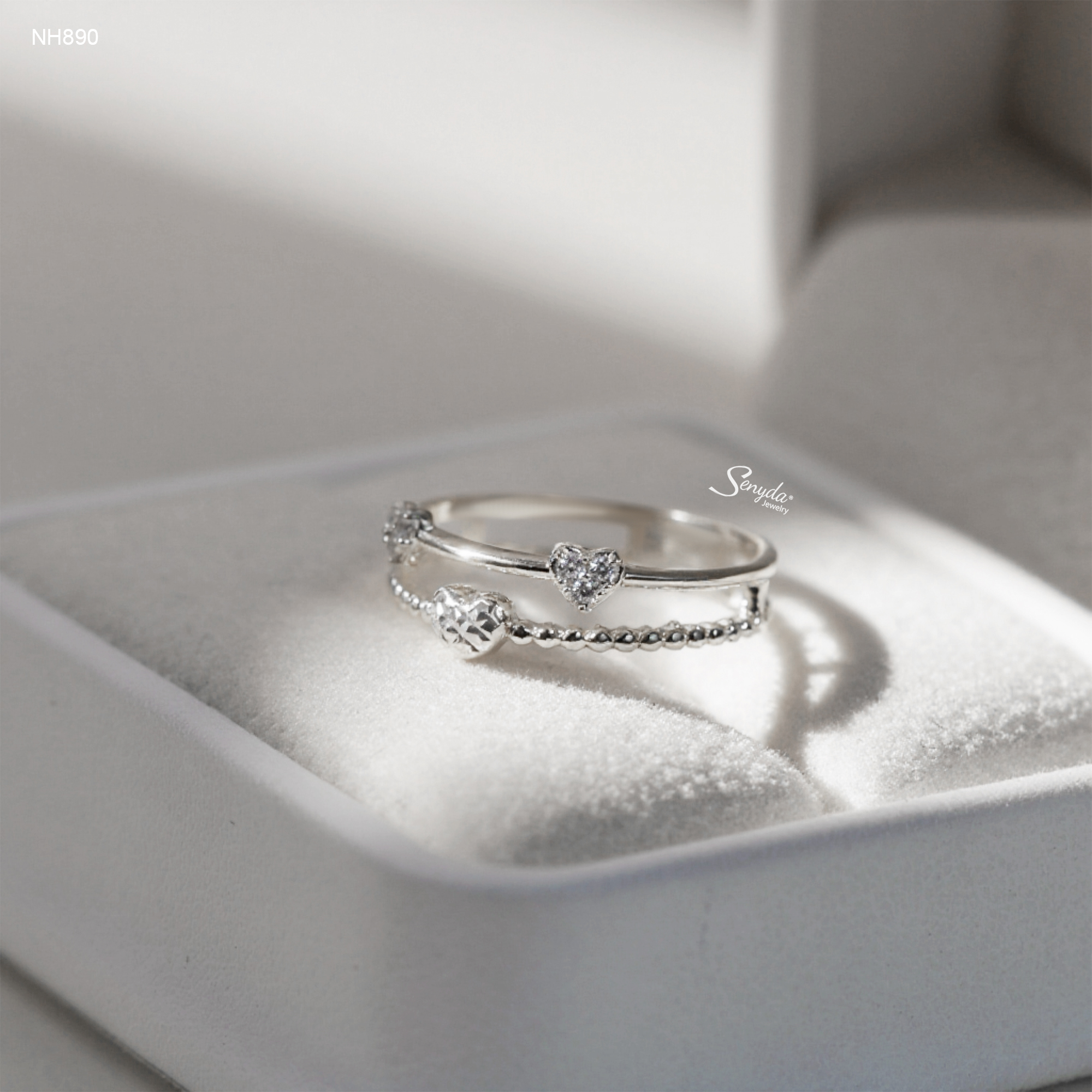 Mô tả: NH890 Nhẫn bạc Ý Senyda kép tim đá giác