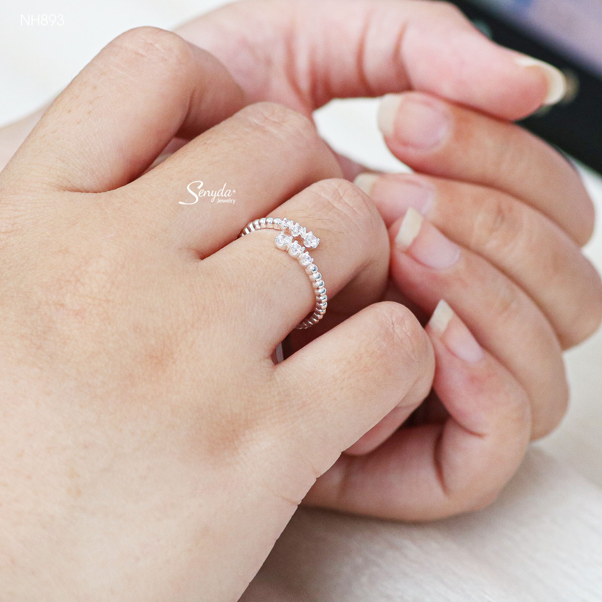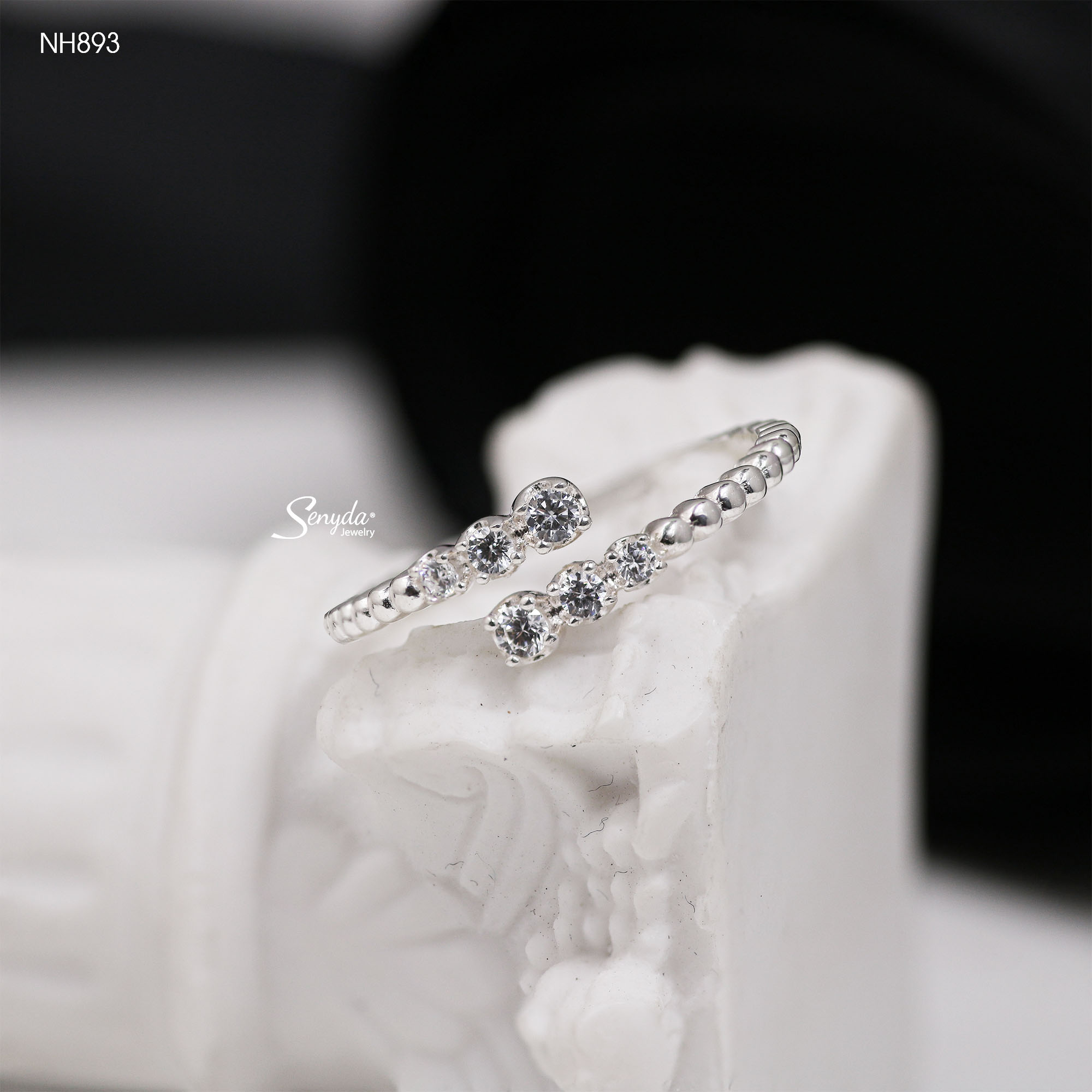 Hãy là người đầu tiên nhận xét “NH893 Nhẫn bạc Ý Senyda dãy đá đai bi trơn hở”