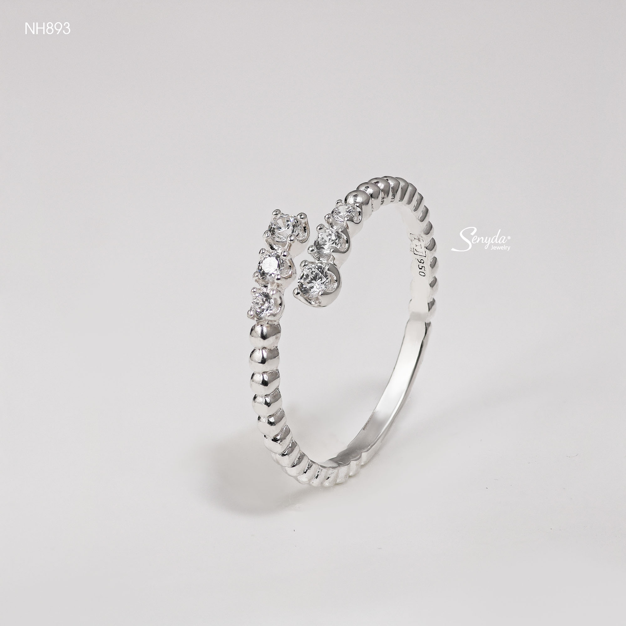 NH893 Nhẫn bạc Ý Senyda dãy đá đai bi trơn hở