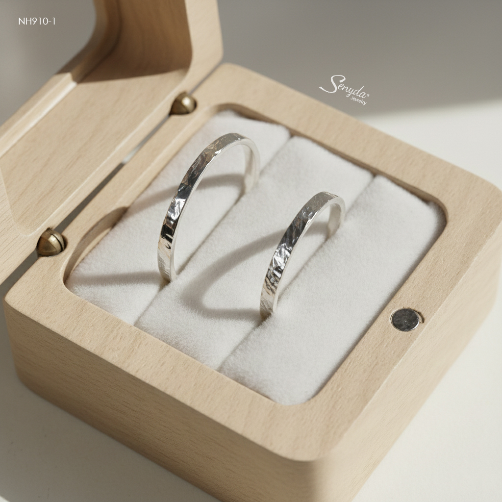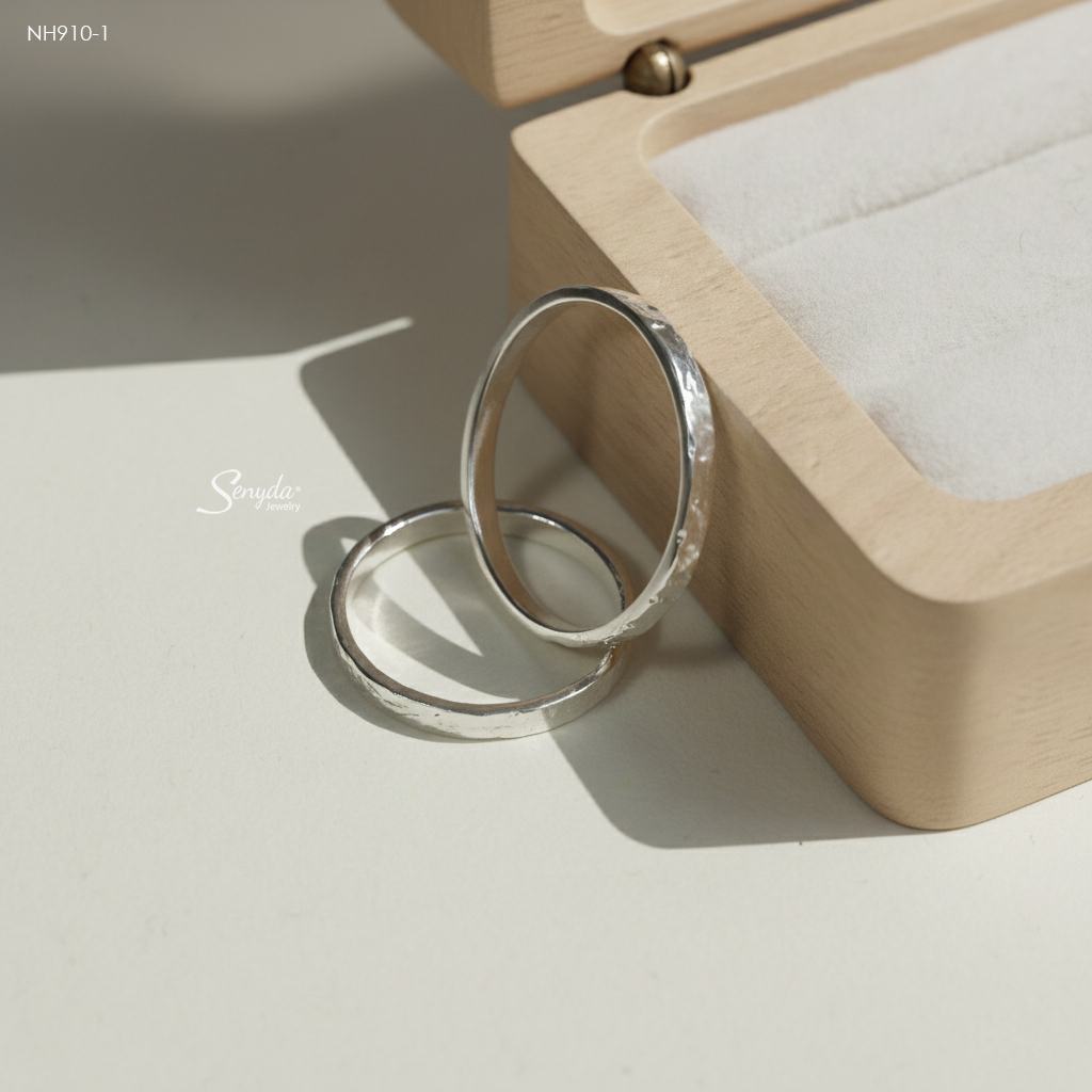 63 đánh giá cho NH910-1 Nhẫn đôi bạc Ý Senyda bản 2mm mặt đập