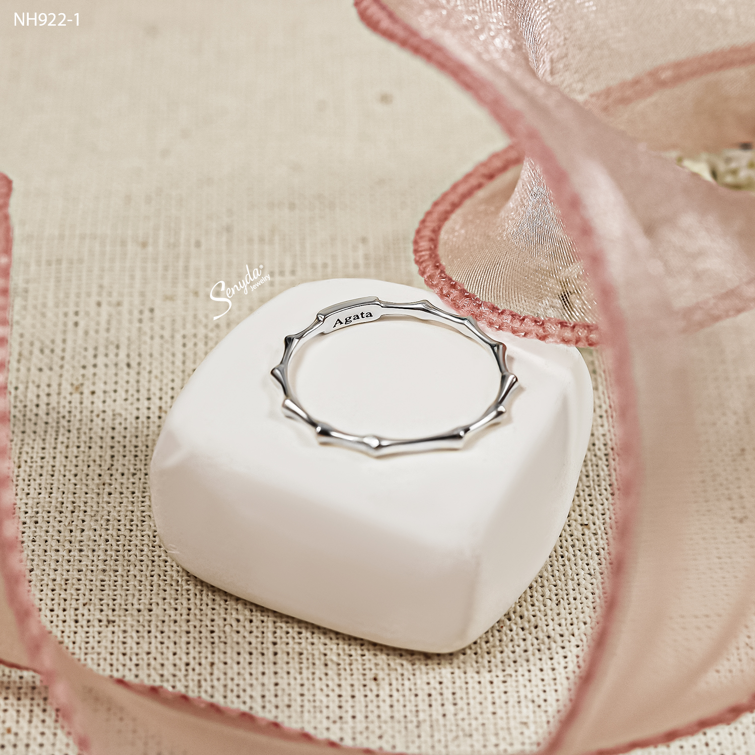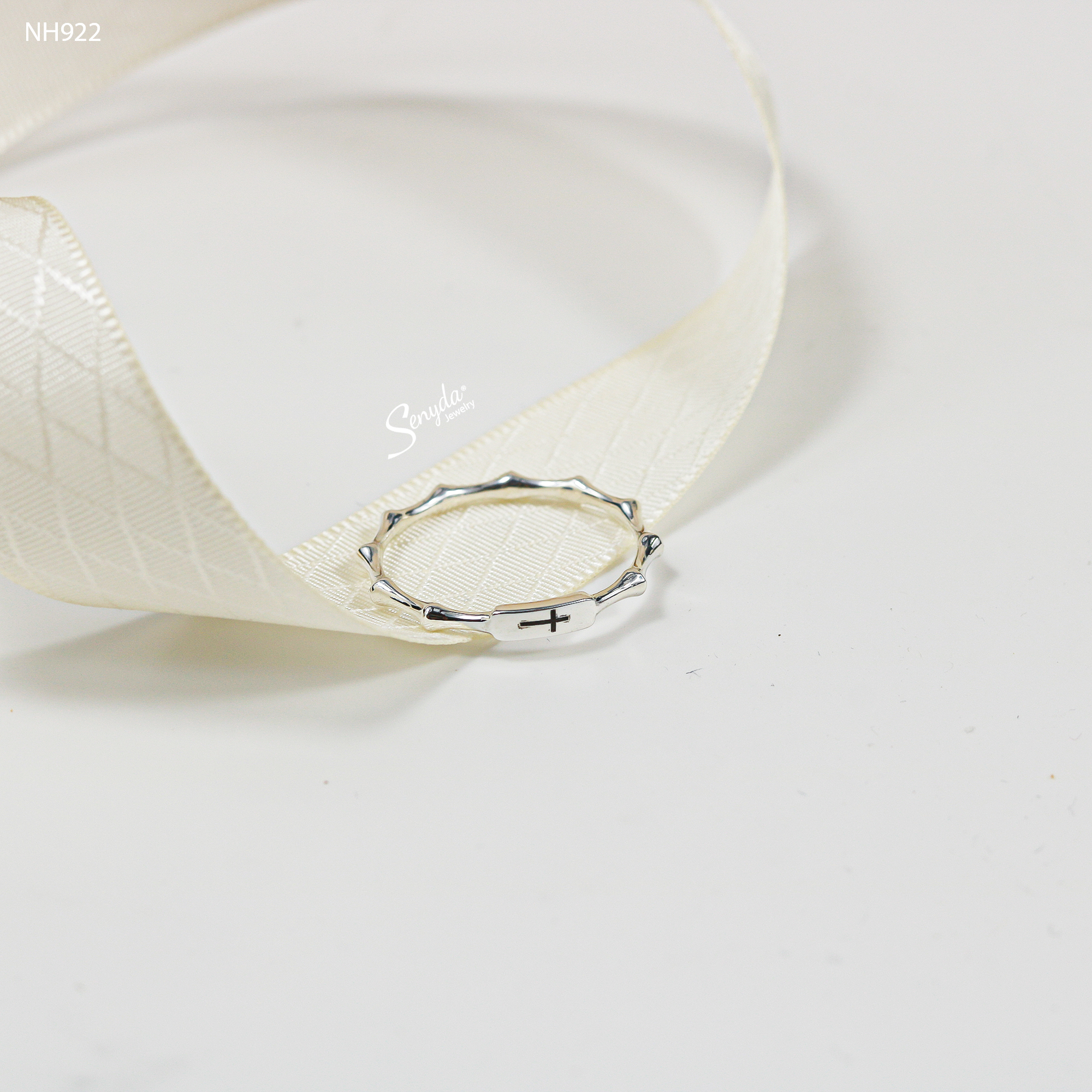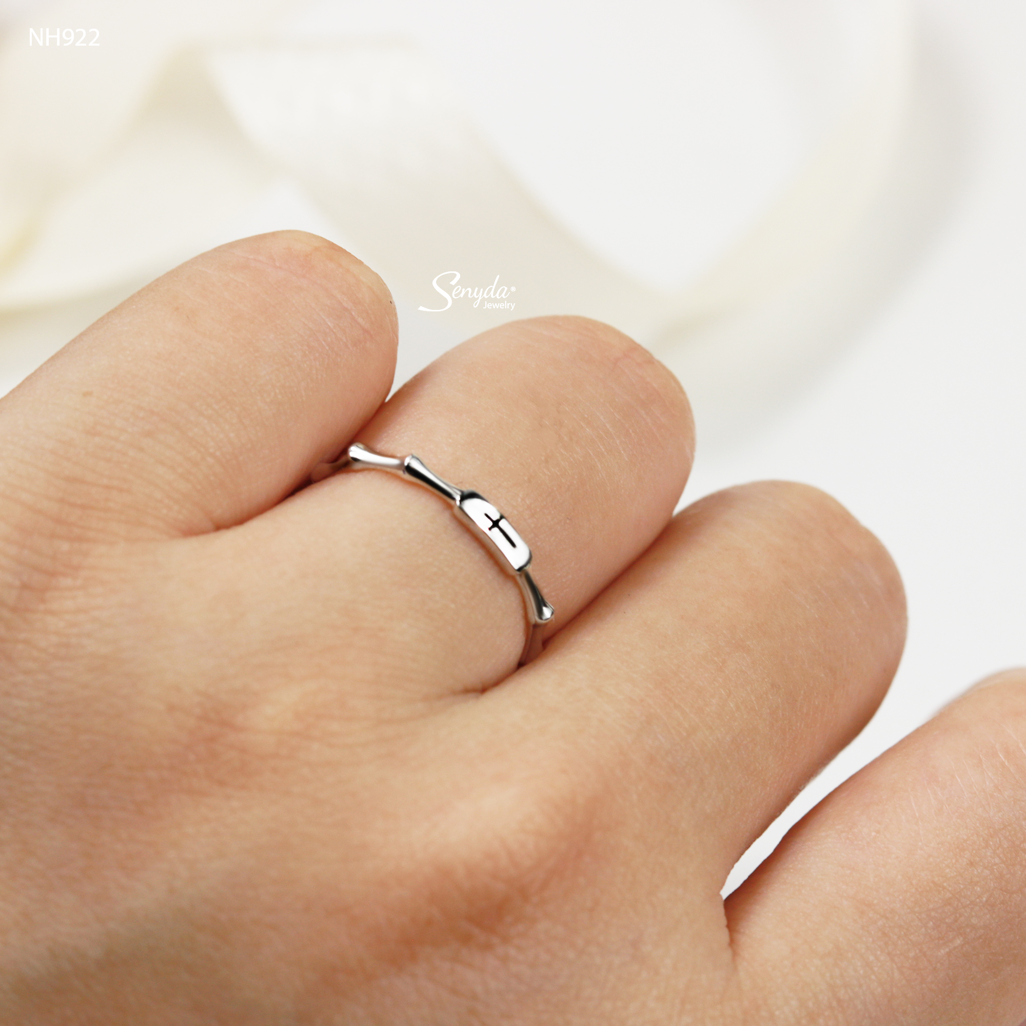 Mô tả: NH922 Nhẫn bạc Ý Senyda mặt chữ nhật trơn đai khúc tre