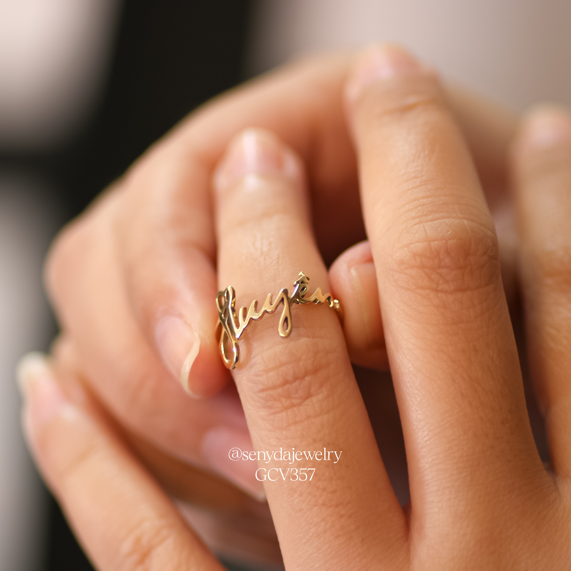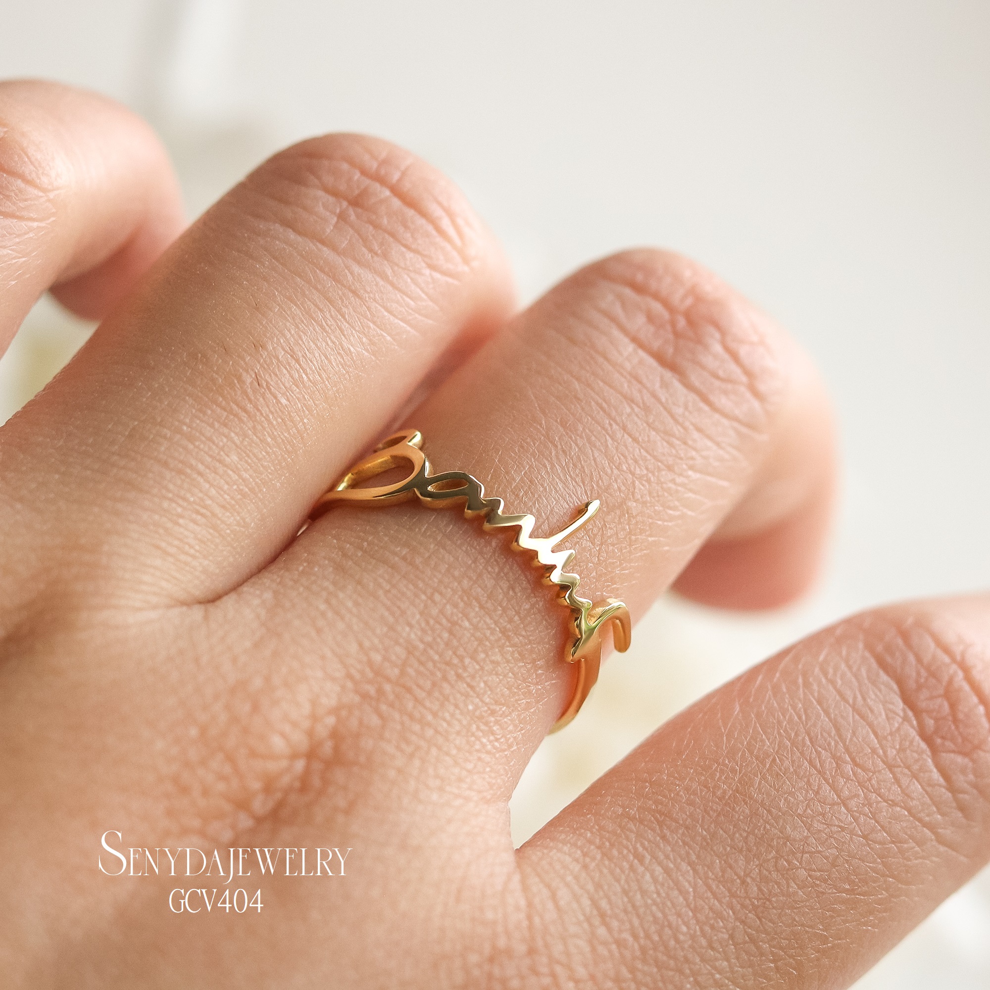 NHV033-M Nhẫn vàng custom Senyda lộng chữ theo yêu cầu (3-5 chữ)