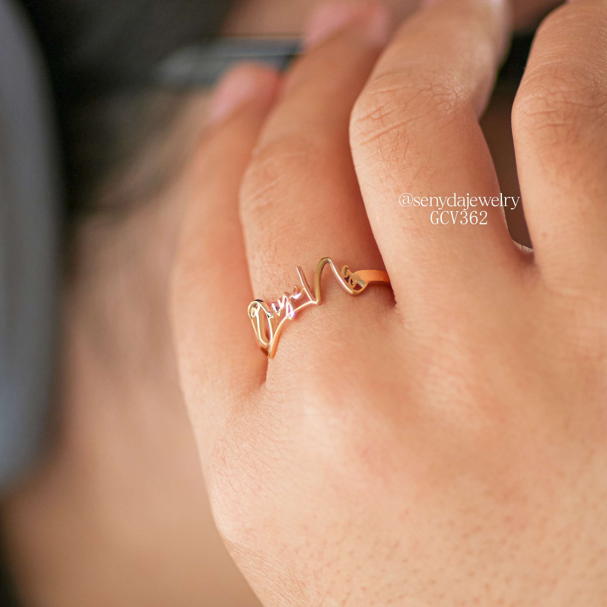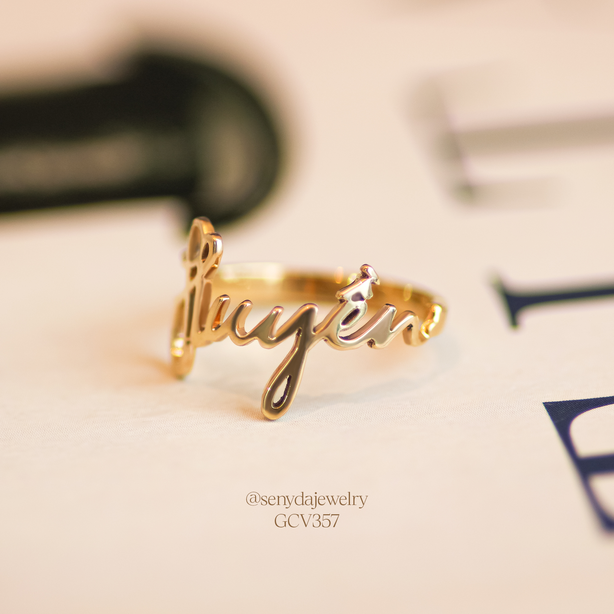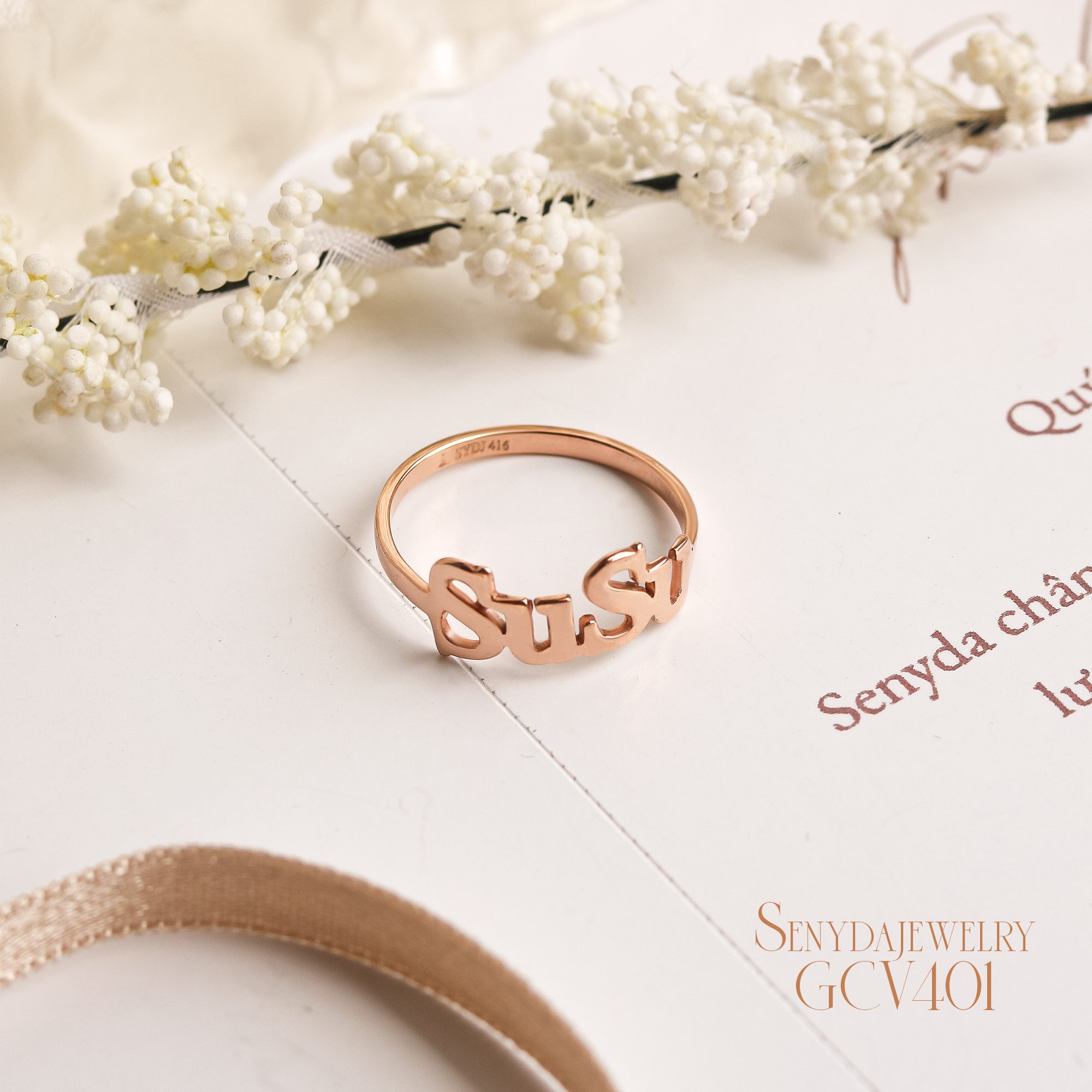 Mô tả: NHV033-M Nhẫn vàng custom Senyda lộng chữ theo yêu cầu (3-5 chữ)