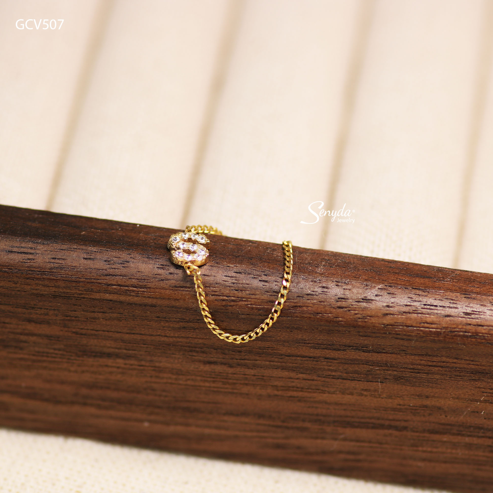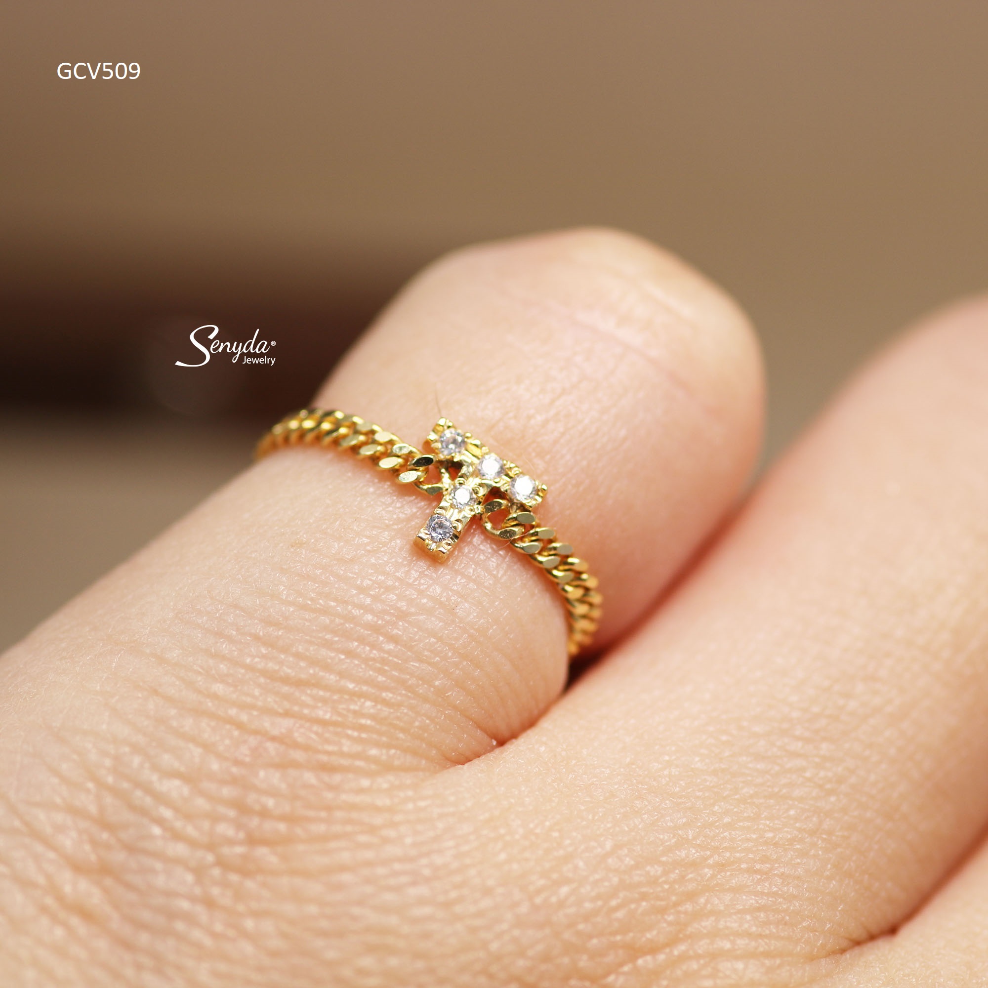 NHV040-M Nhẫn vàng custom Senyda dây mặt chữ đính đá