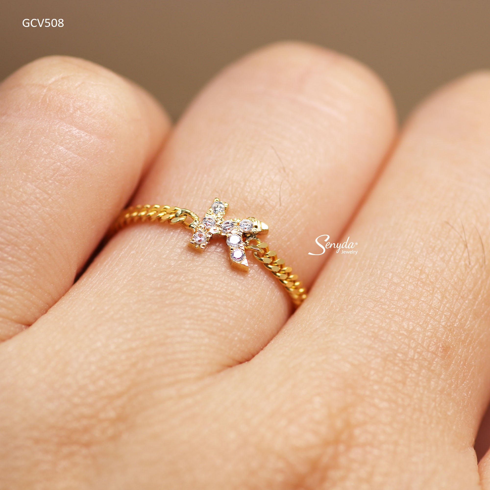 55 đánh giá cho NHV040-M Nhẫn vàng custom Senyda dây mặt chữ đính đá