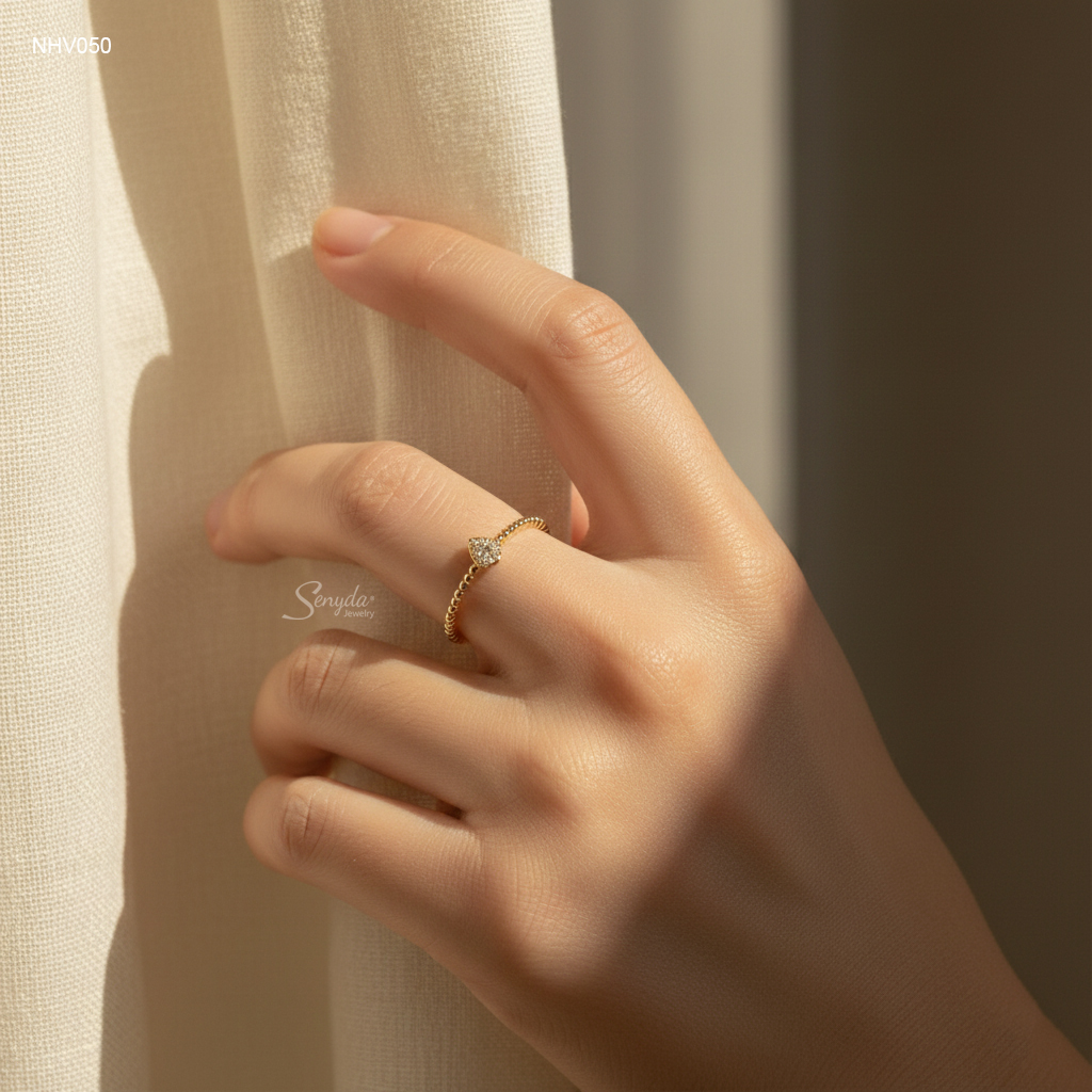 Mô tả: NHV050 Nhẫn vàng Senyda giọt nước tấm