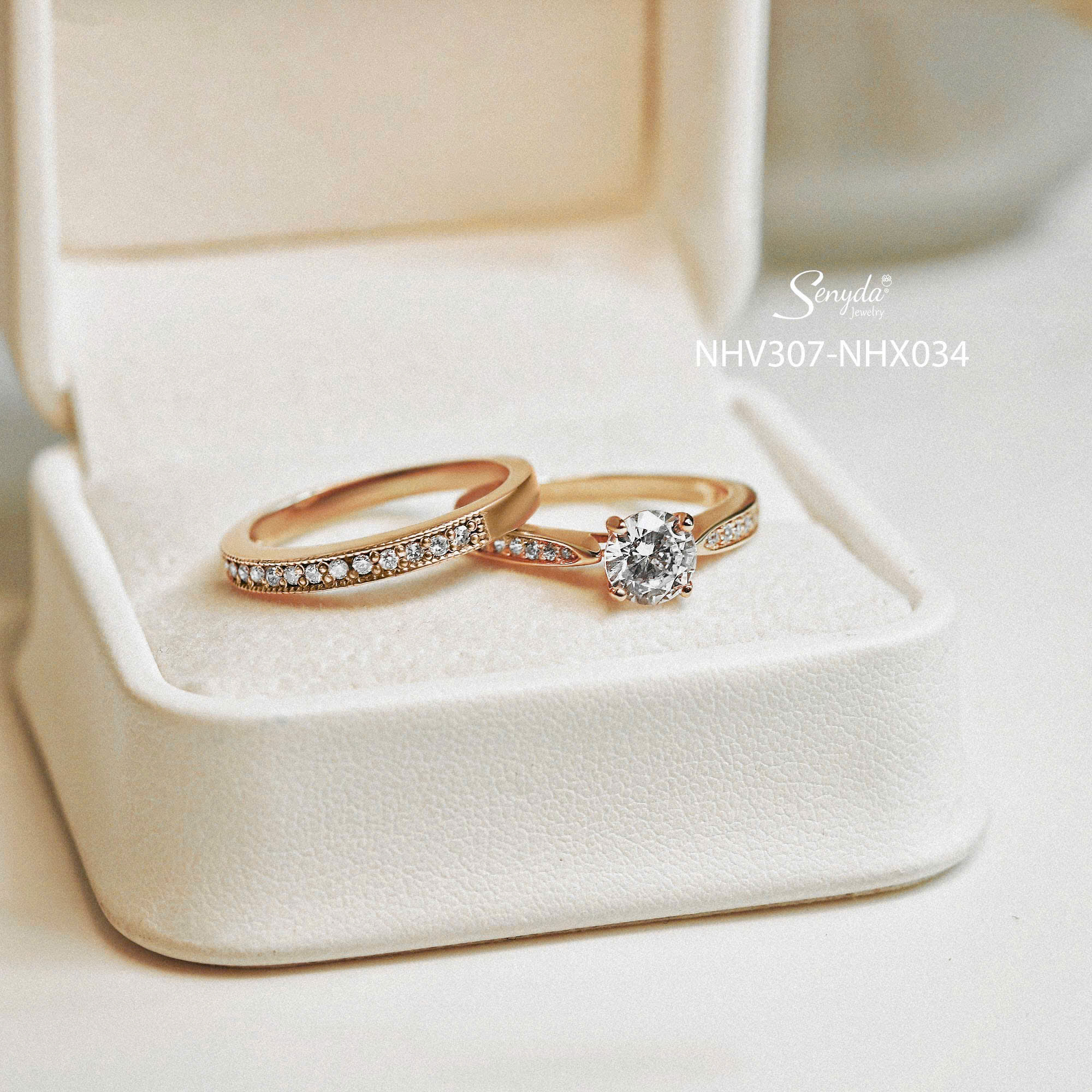 30 đánh giá cho NHV307-NHX034 Nhẫn cưới kim cương Senyda 1 hột 4 chấu đai cẩn đá kết hợp dãy xoàn lớn