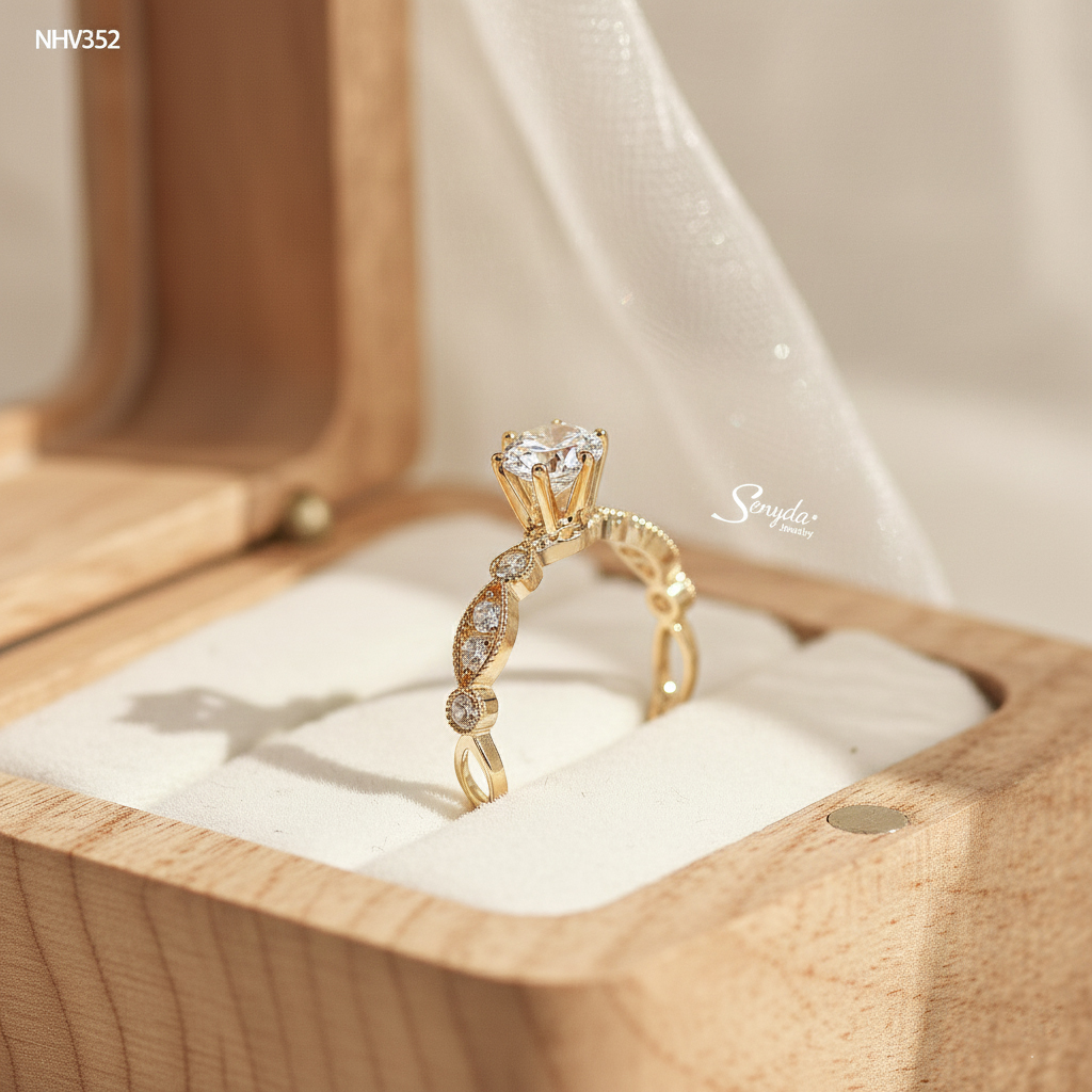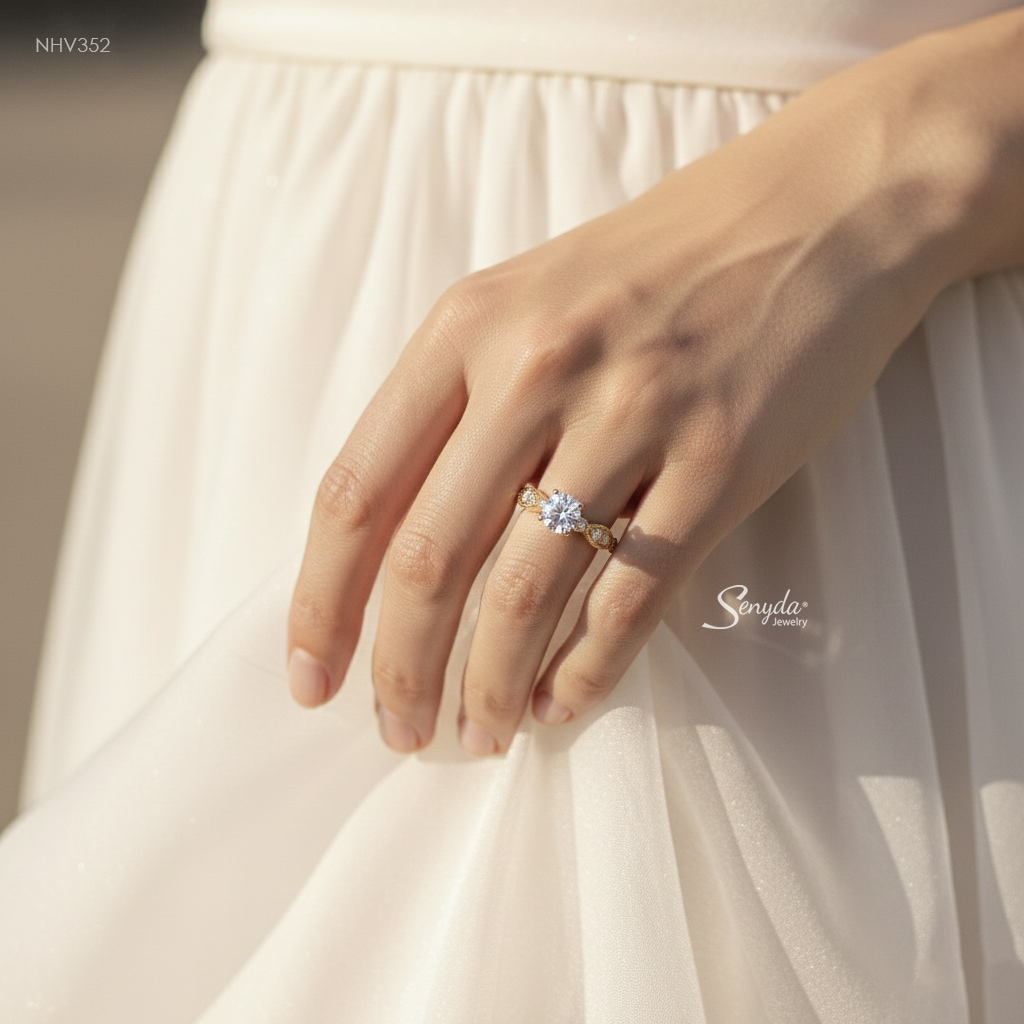 Mô tả: NHV352 Nhẫn vàng Senyda 1 hột đai hoa văn