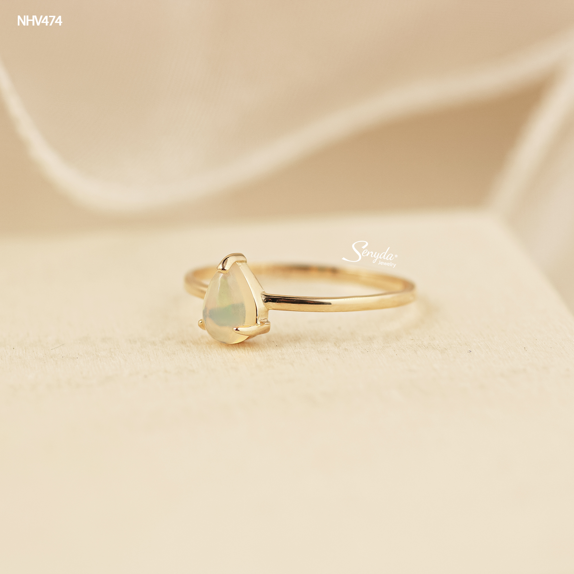 NHV474 Nhẫn vàng Senyda mặt đá Opal giọt nước đai trơn