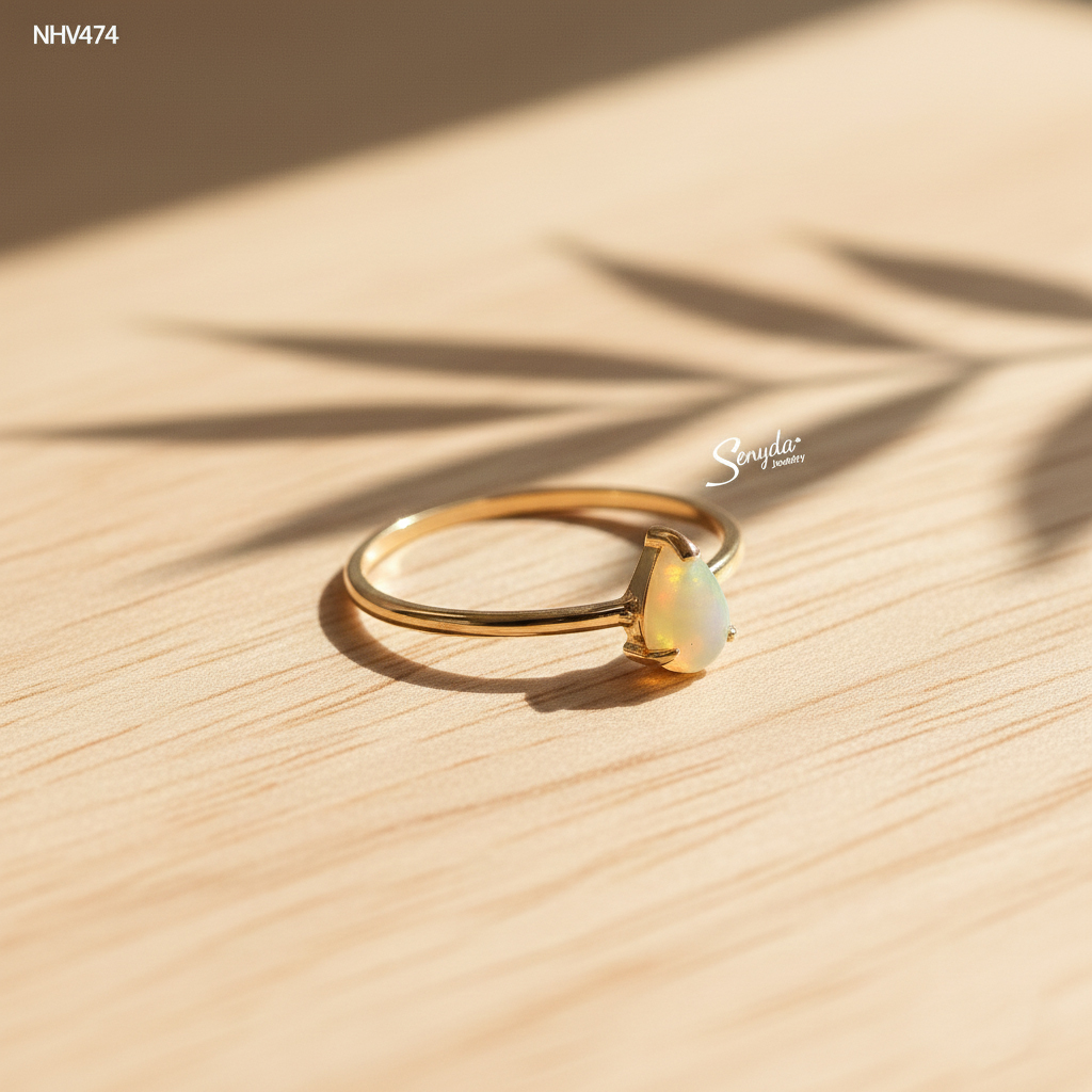 77 đánh giá cho NHV474 Nhẫn vàng Senyda mặt đá Opal giọt nước đai trơn