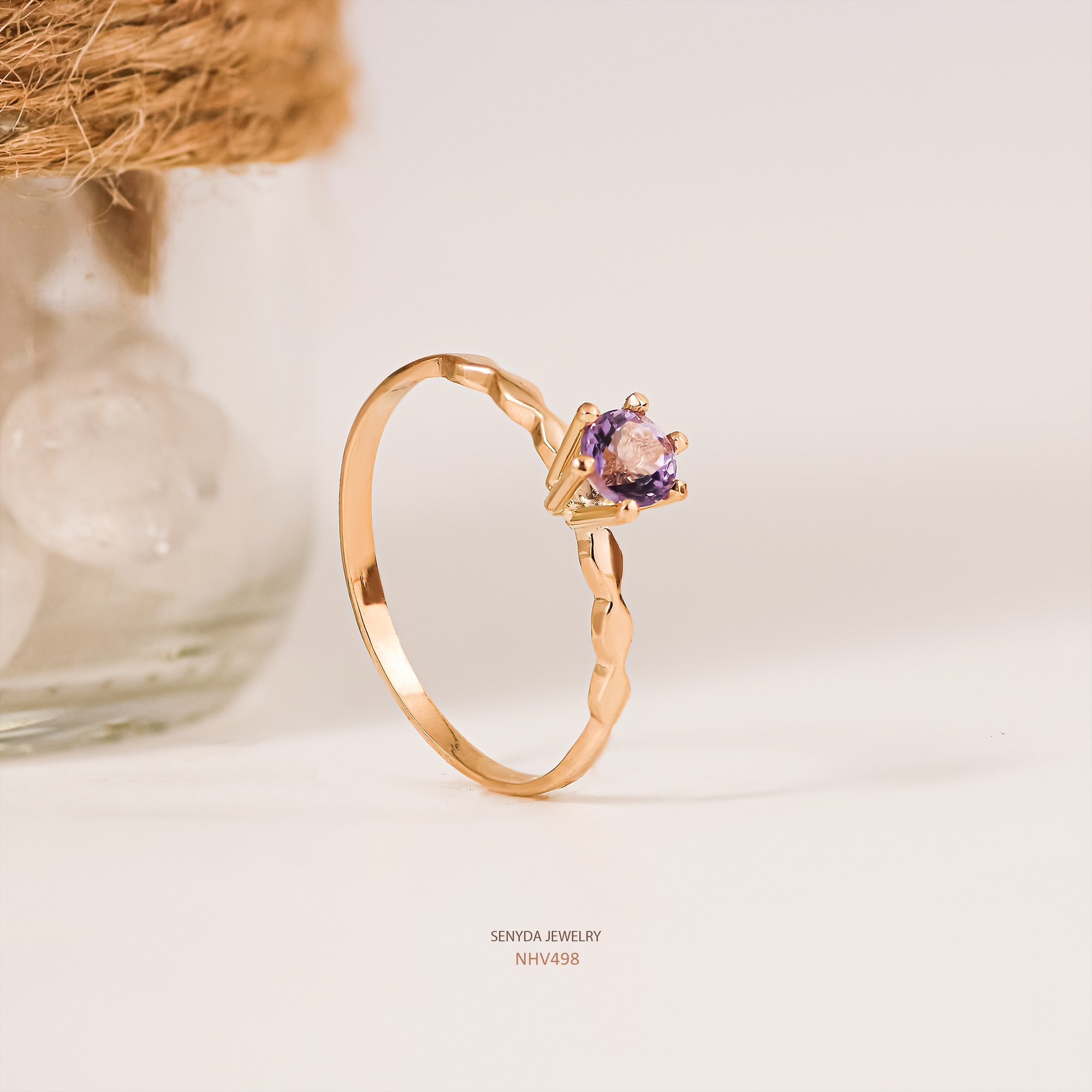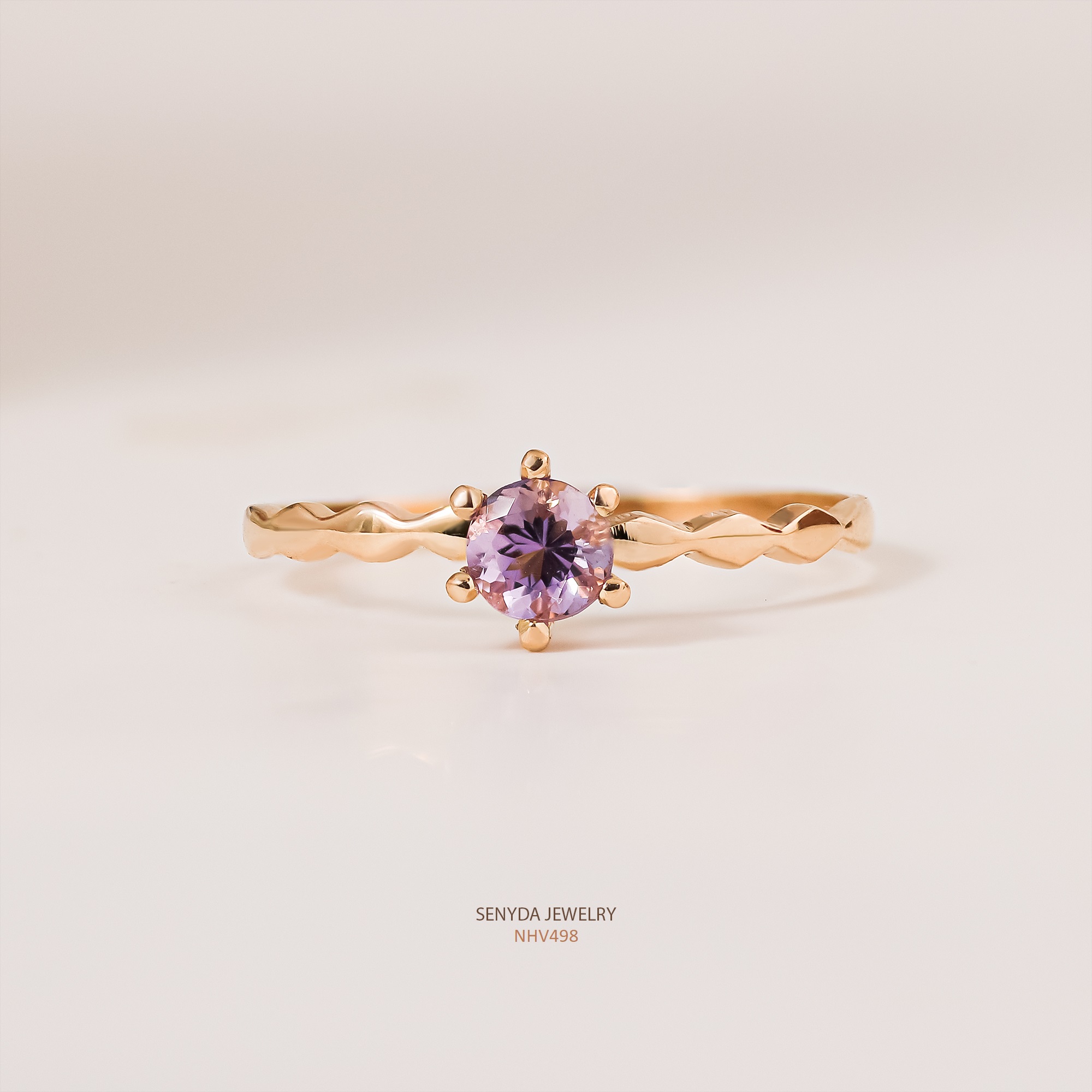 NHV498 Nhẫn vàng Senyda đá Amethyst 4,3mm 6 chấu đai thoi trơn
