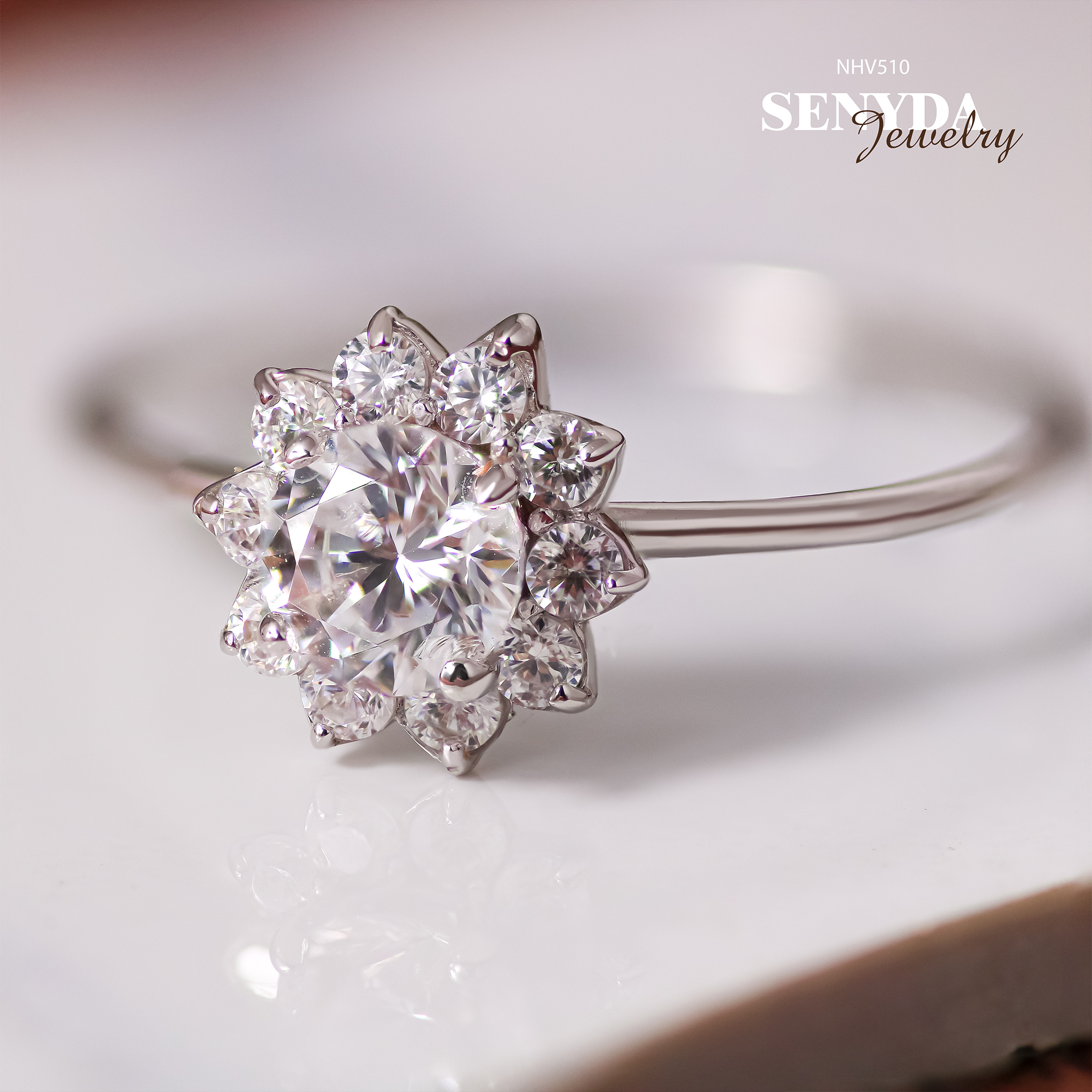 Hãy là người đầu tiên nhận xét “NHV510 Nhẫn vàng Senyda hoa 8 cánh đá”
