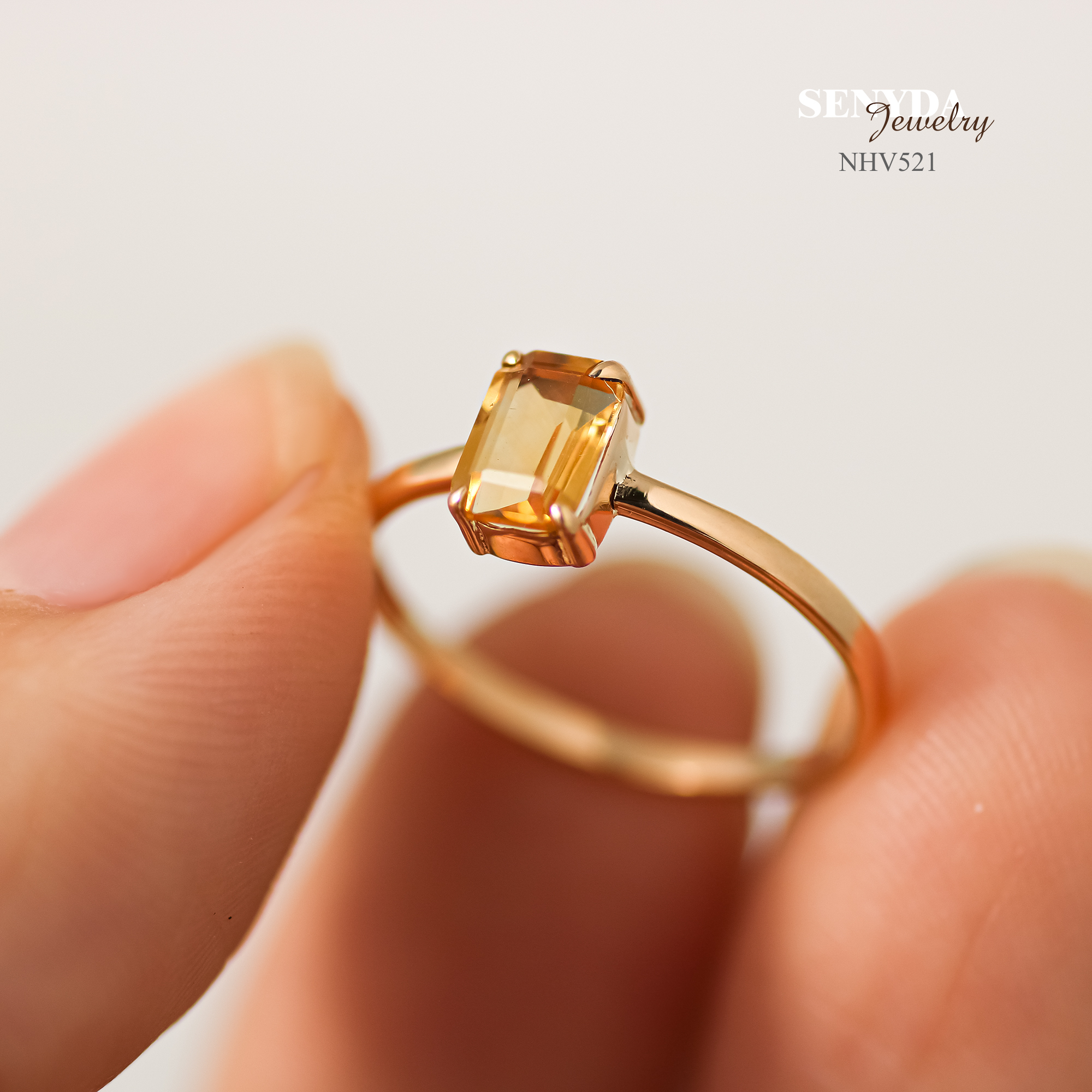 Mô tả: NHV521 Nhẫn vàng Senyda mặt đá Citrine emerald đai trơn