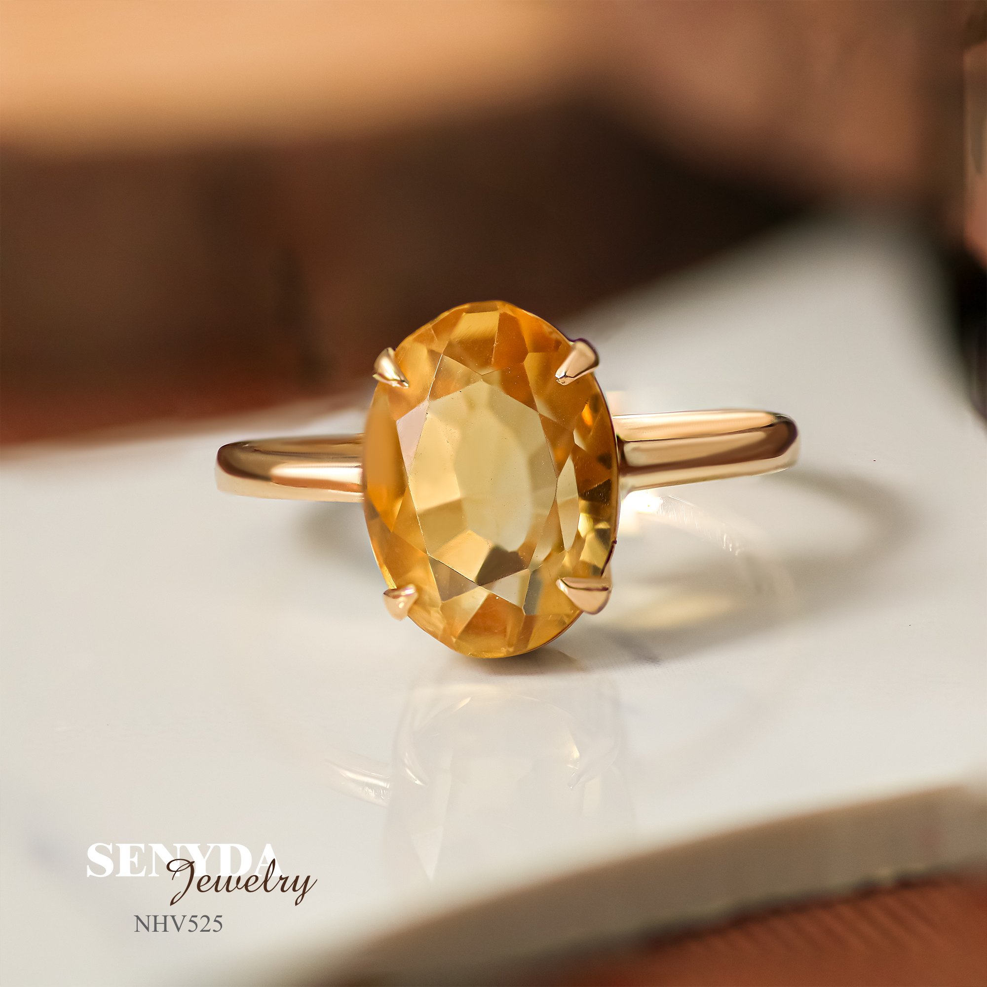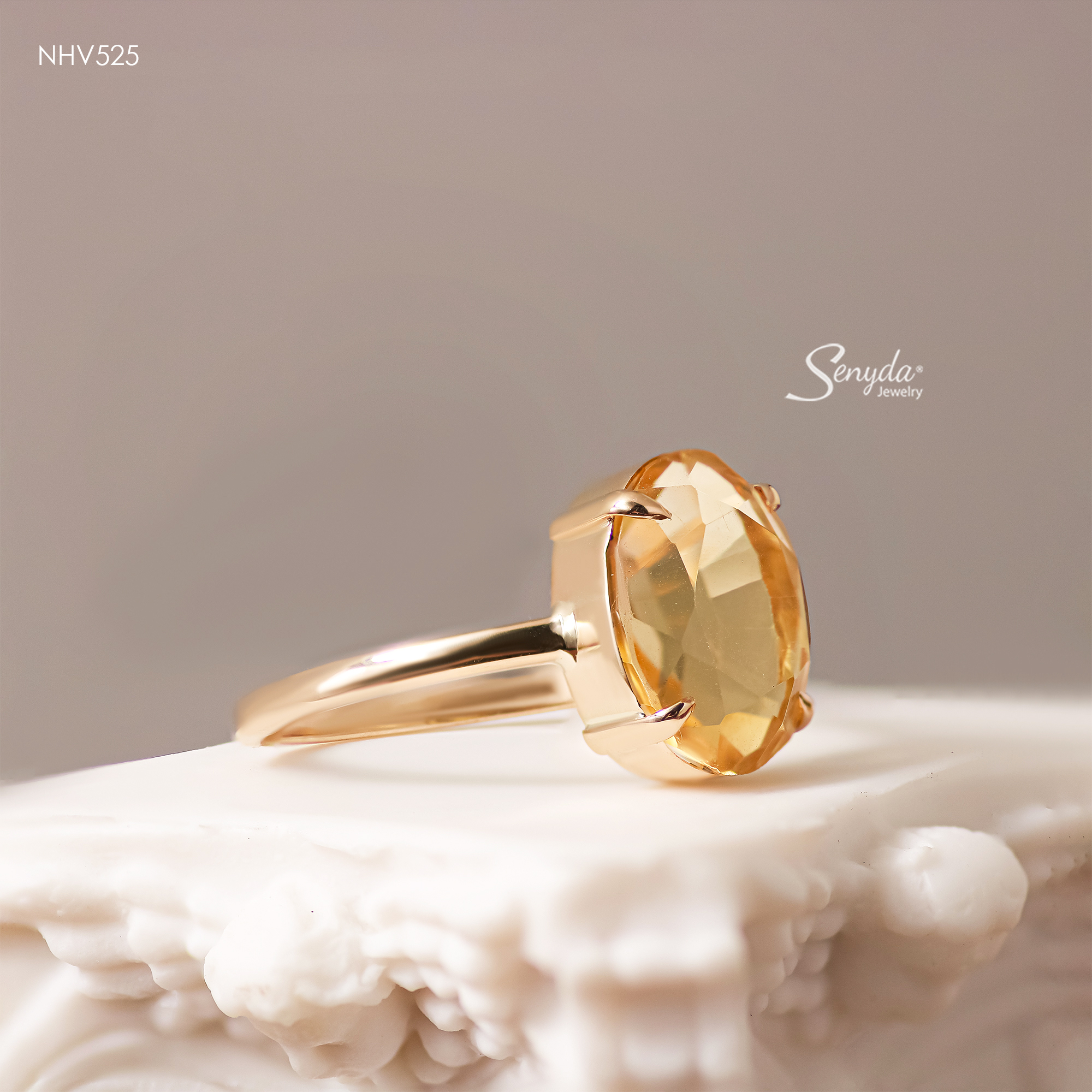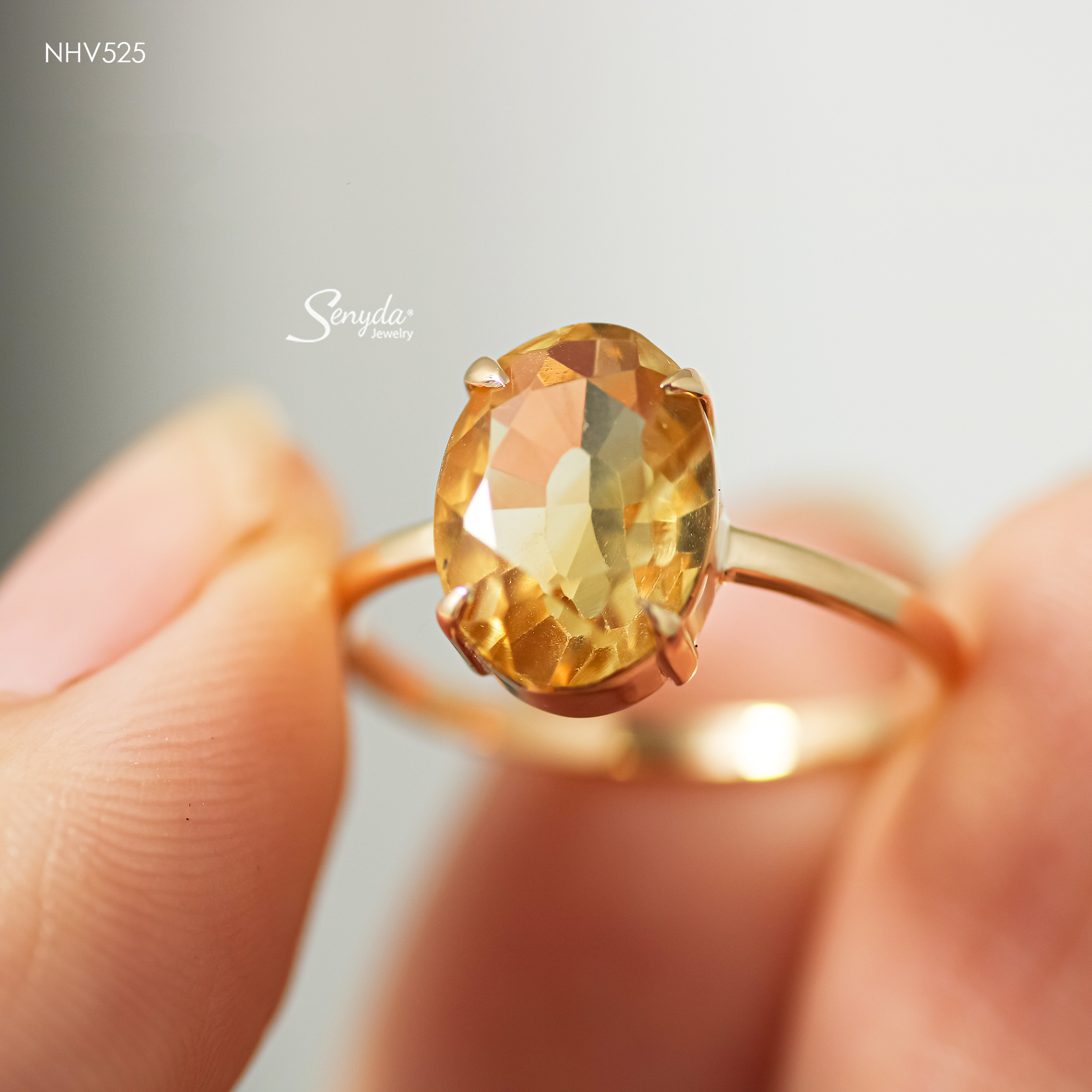 NHV525 Nhẫn vàng Senyda mặt đá Citrine oval đai trơn