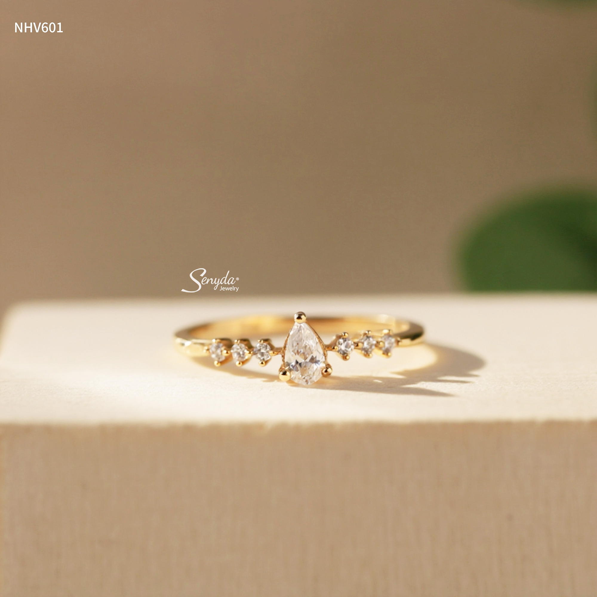 NHV601 Nhẫn vàng Senyda 1 hột giọt nước đai tấm rời