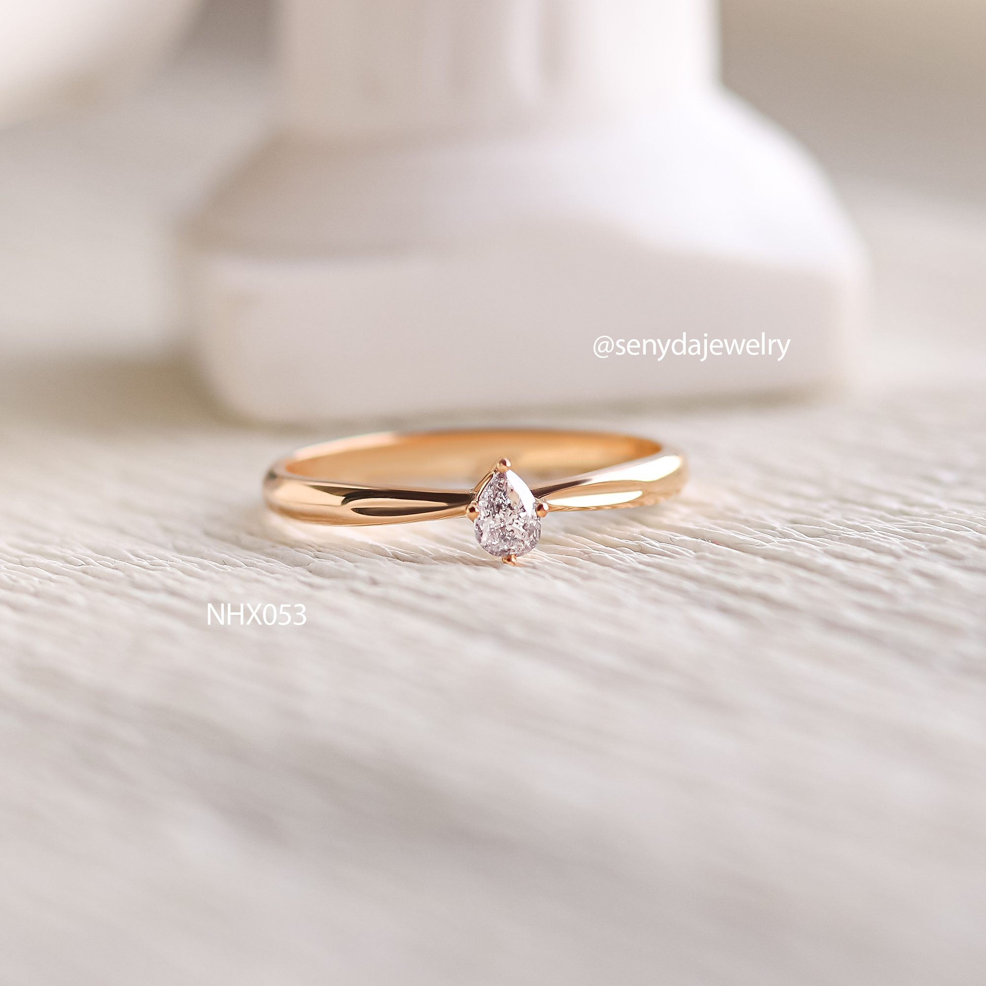 Mô tả: NHX053 Nhẫn kim cương Senyda giọt nước đai nơ phồng