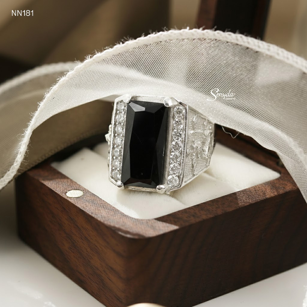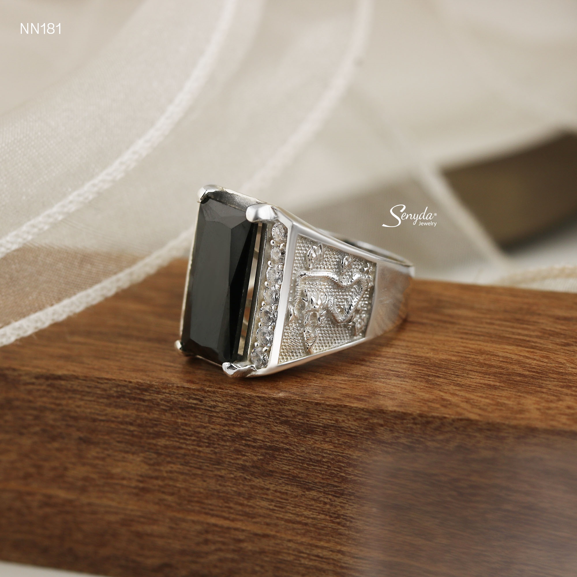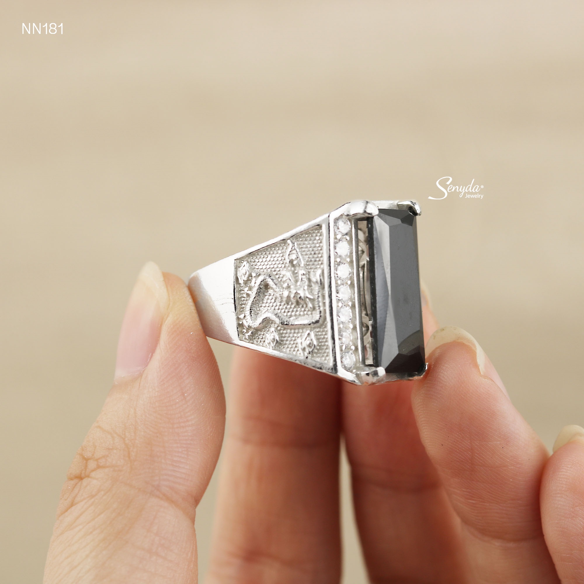NN181 Nhẫn bạc nam Senyda đá chữ nhật đen đai rồng