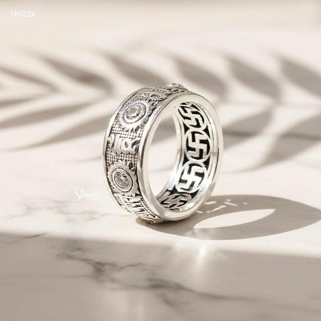 Hãy là người đầu tiên nhận xét “NN224 Nhẫn bạc nam Senyda bản hoa văn ốp cẩn đá”
