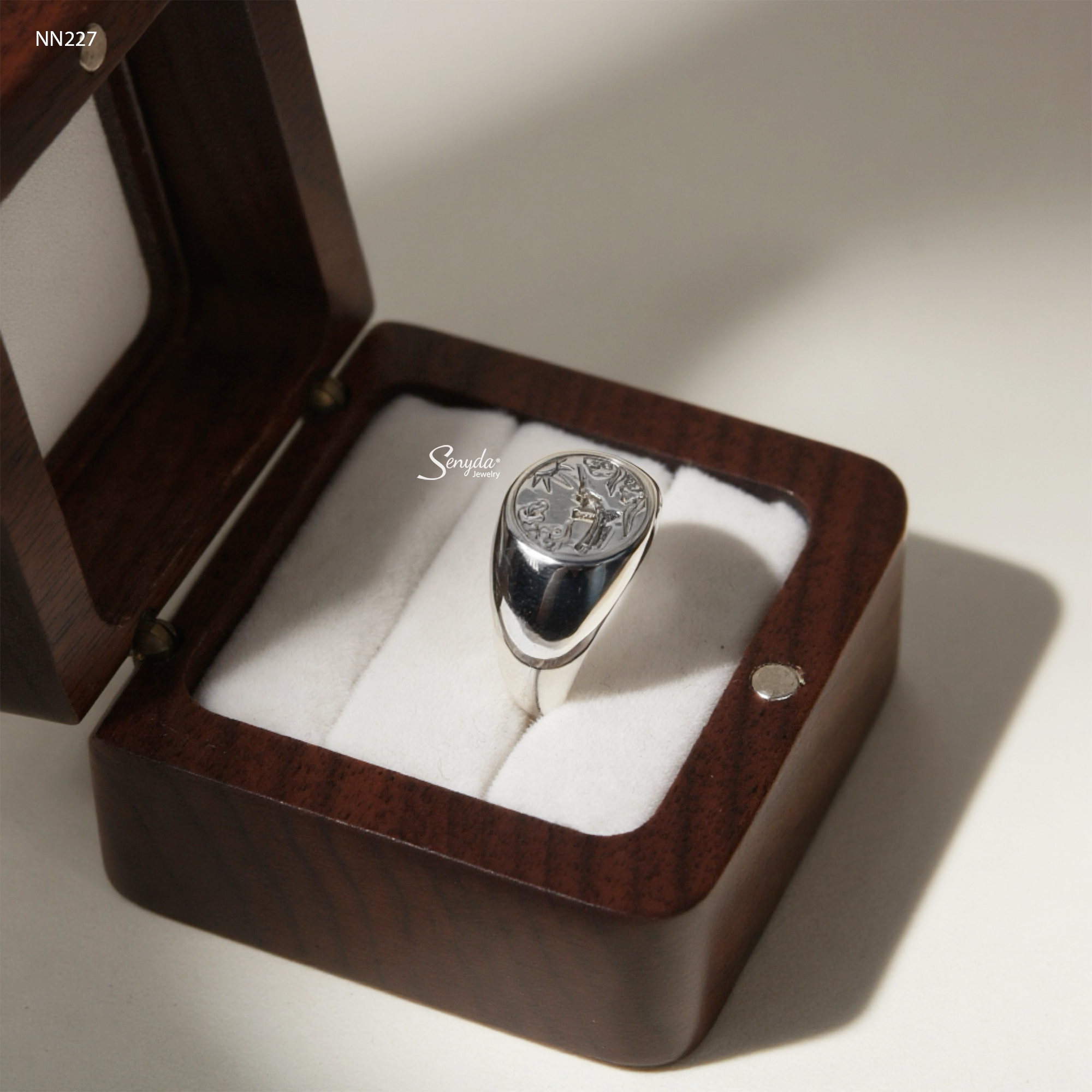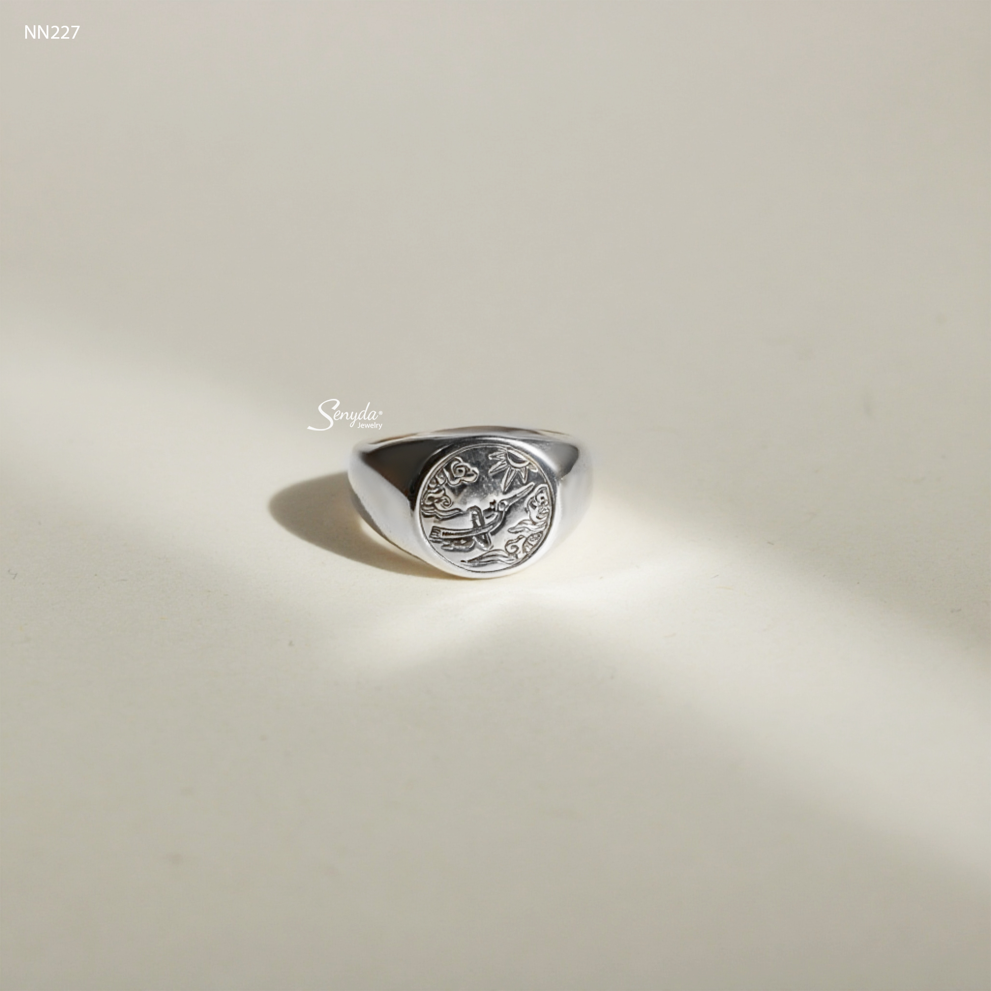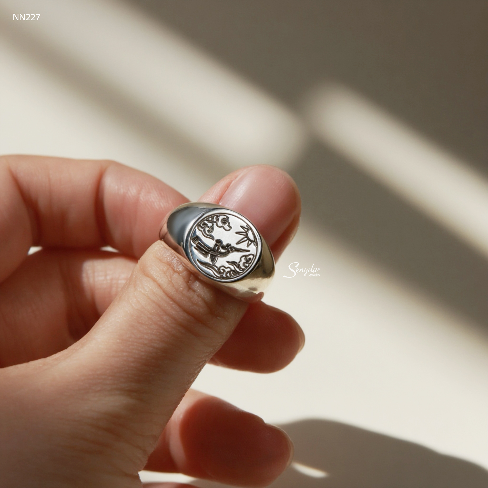 Mô tả: NN227 Nhẫn bạc nam Senyda signet mặt tròn khắc hoa văn Chim Lạc