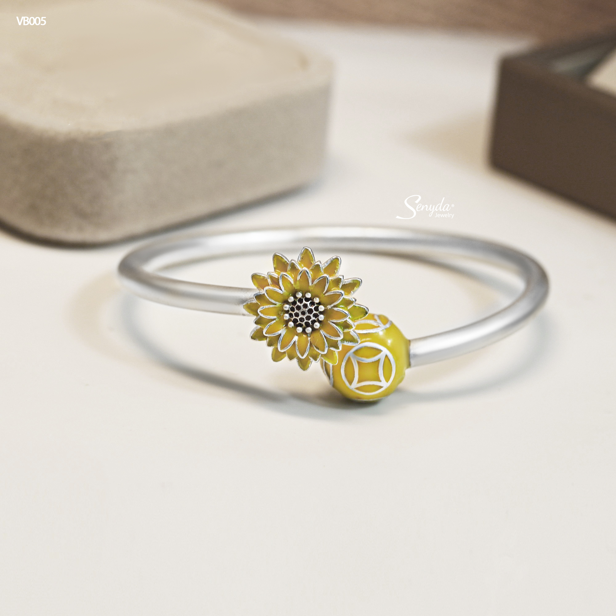 Mô tả: VB005 Vòng tay bạc cho bé Senyda hoa hướng dương
