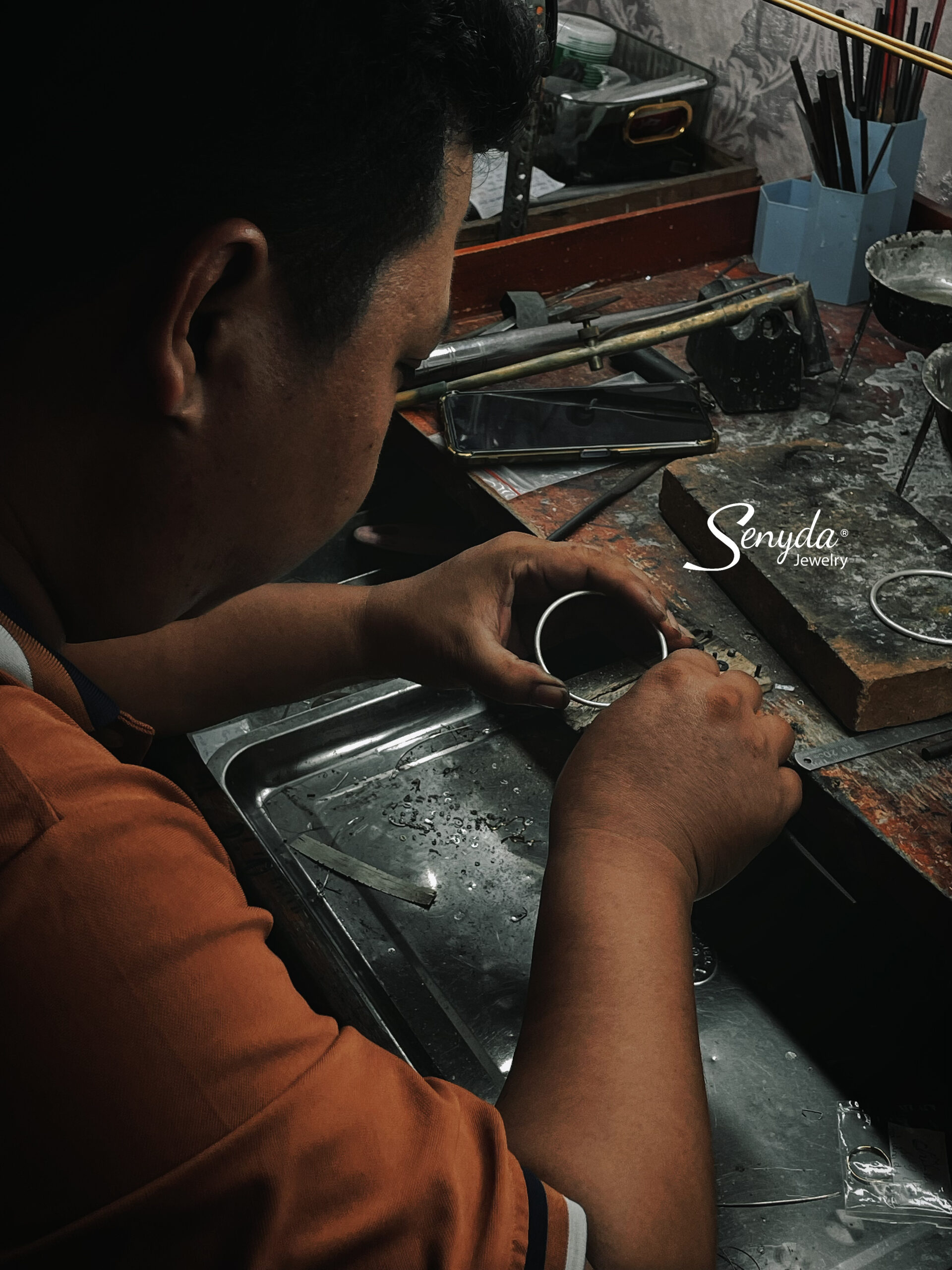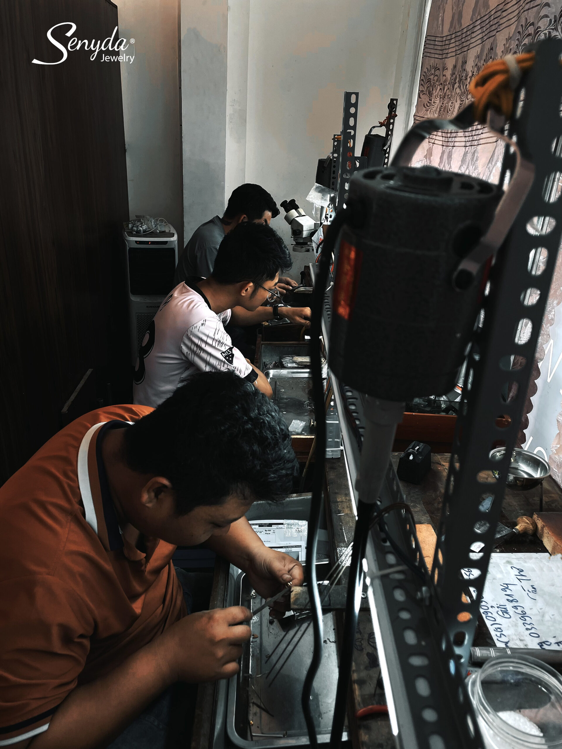 Cuối cùng là giai đoạn chế tác và hoàn thiện. Senyda Jewelry lựa chọn chất liệu cao cấp và đá quý chất lượng. Mỗi sản phẩm được gia công thủ công tỉ mỉ, từ việc cắt, đính đá, đánh bóng đến hoàn thiện các chi tiết nhỏ nhất, đảm bảo sự tinh tế, bền bỉ và mang dấu ấn cá nhân rõ nét.