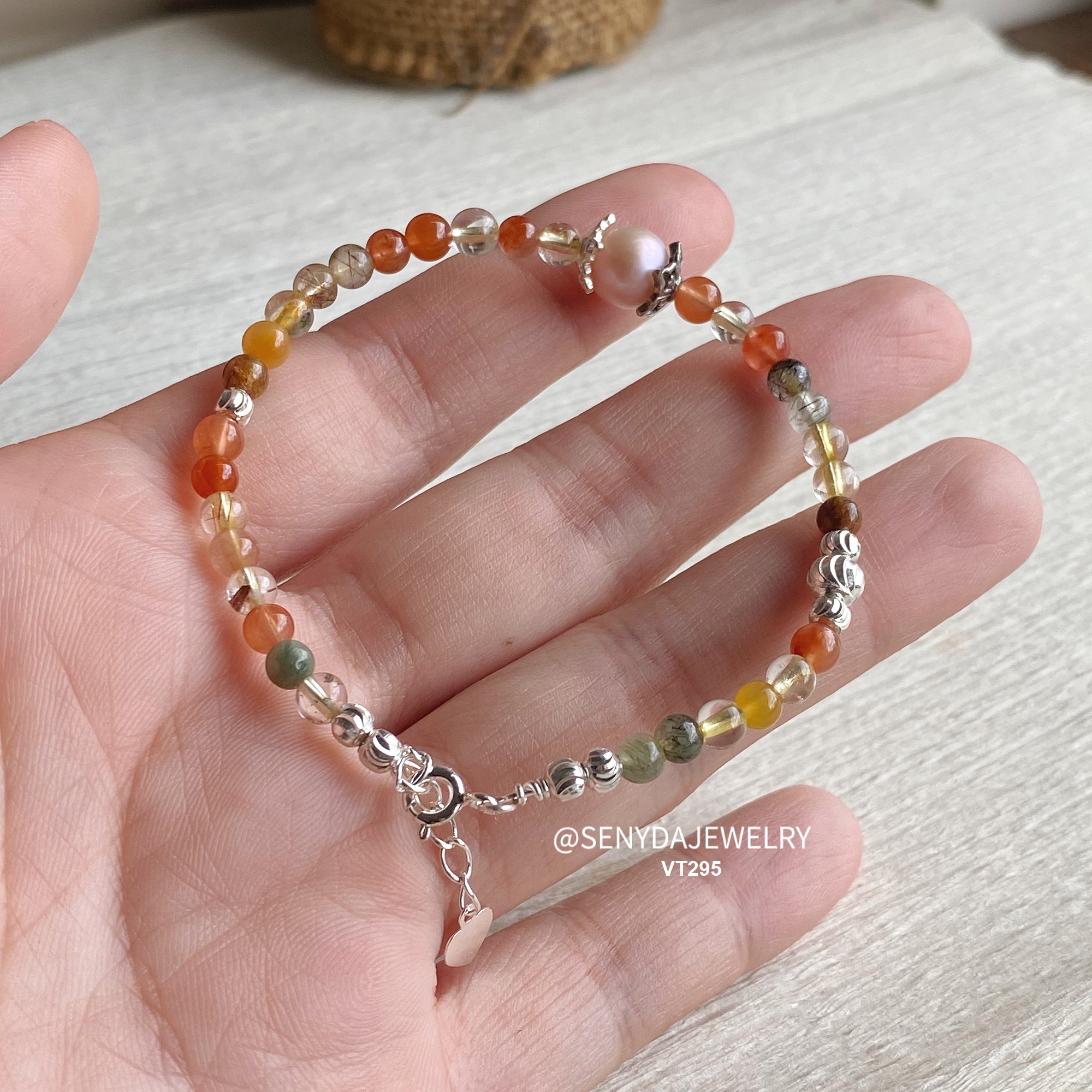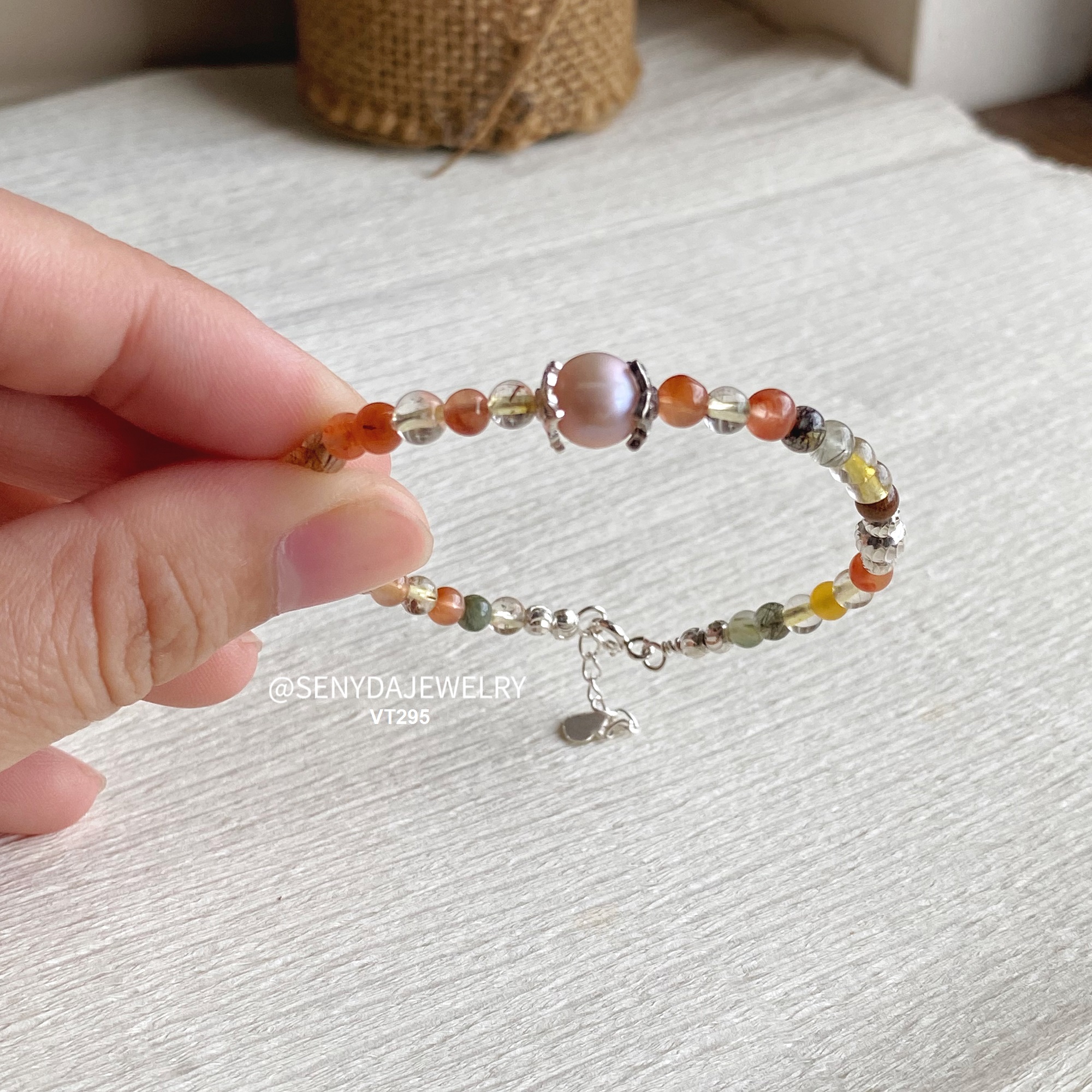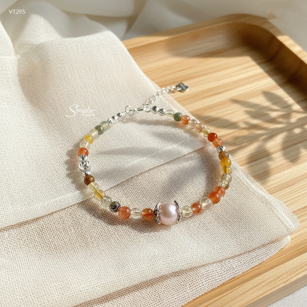 Mô tả: VT295 Vòng tay bạc Ý Senyda đá Thạch anh tam tài mix Ngọc trai nước ngọt