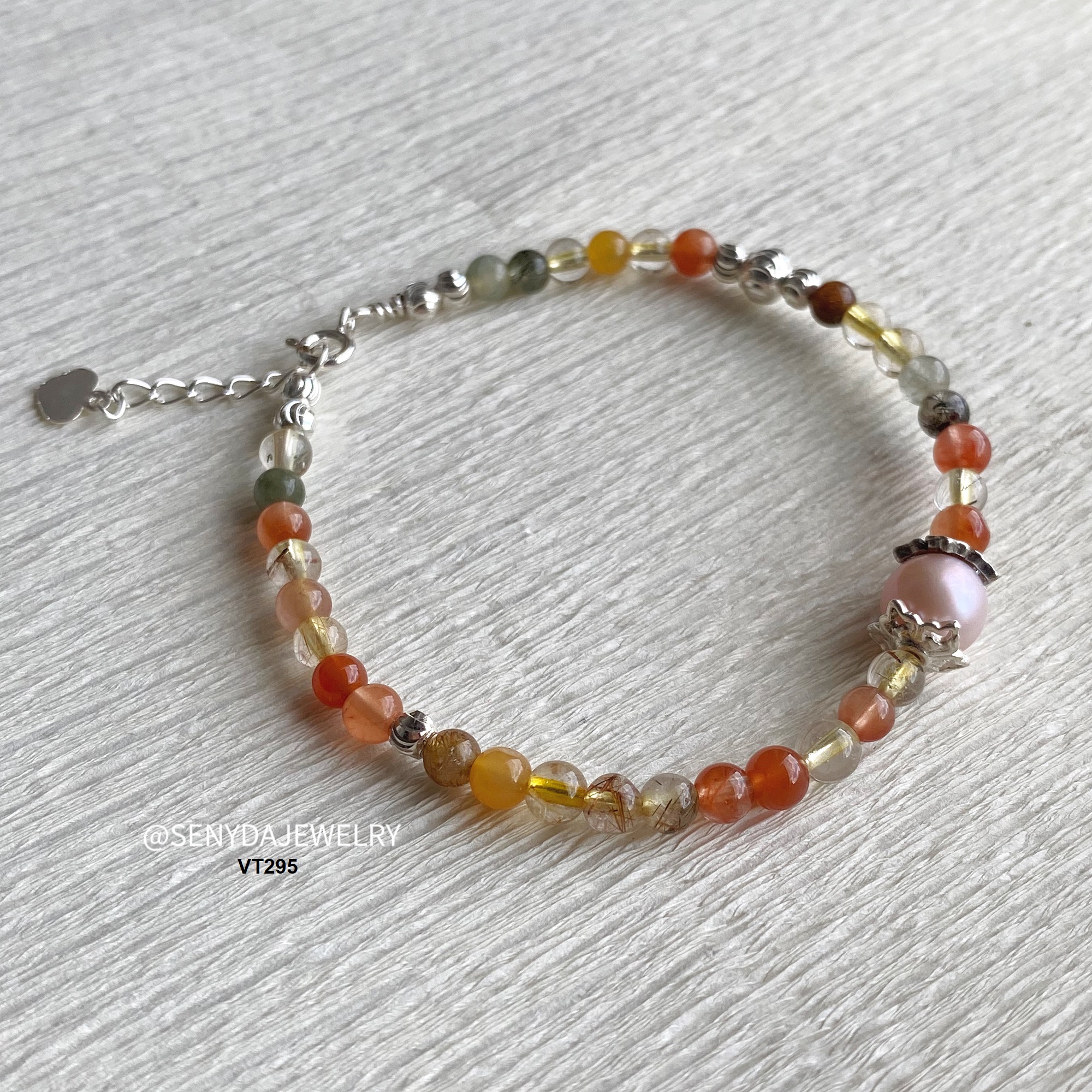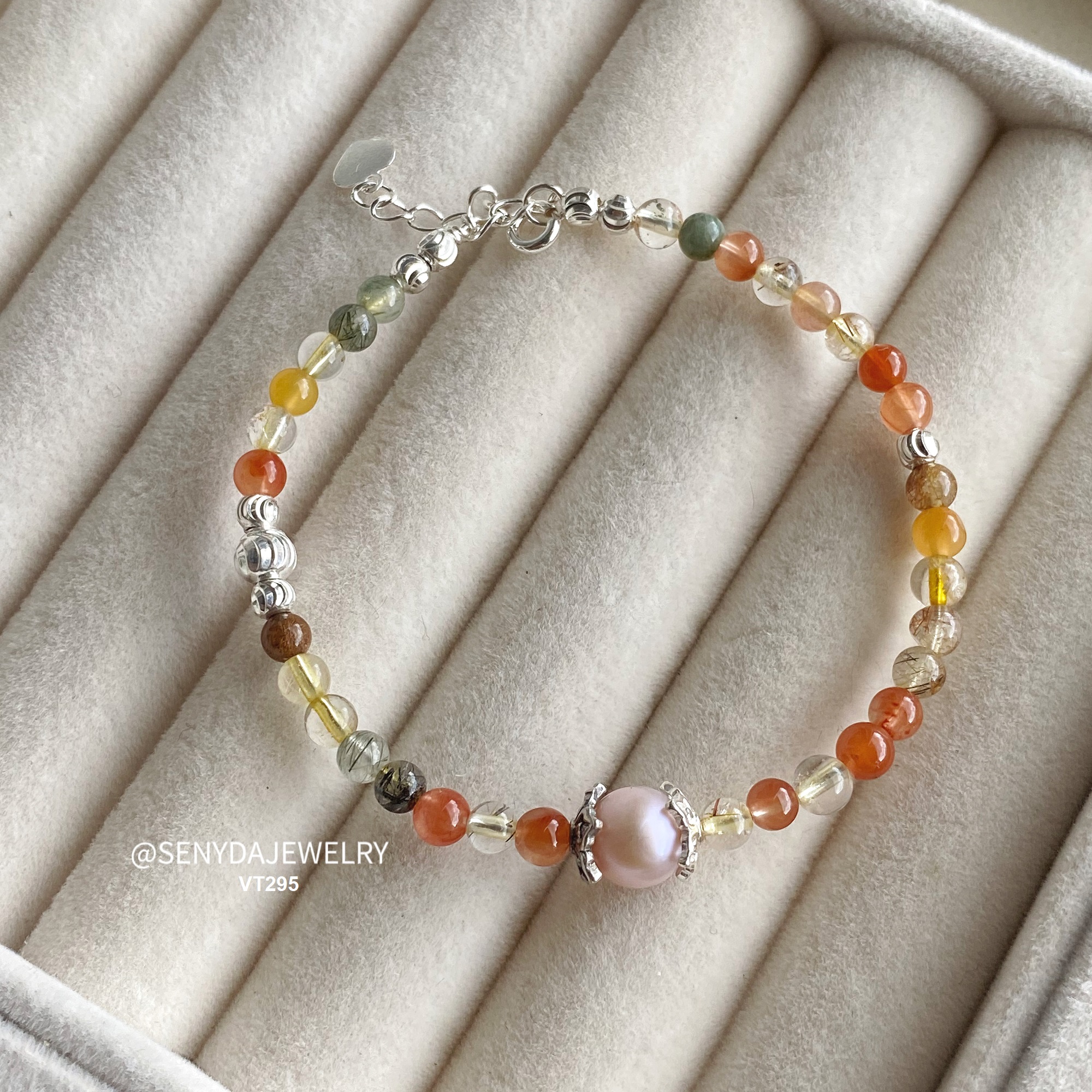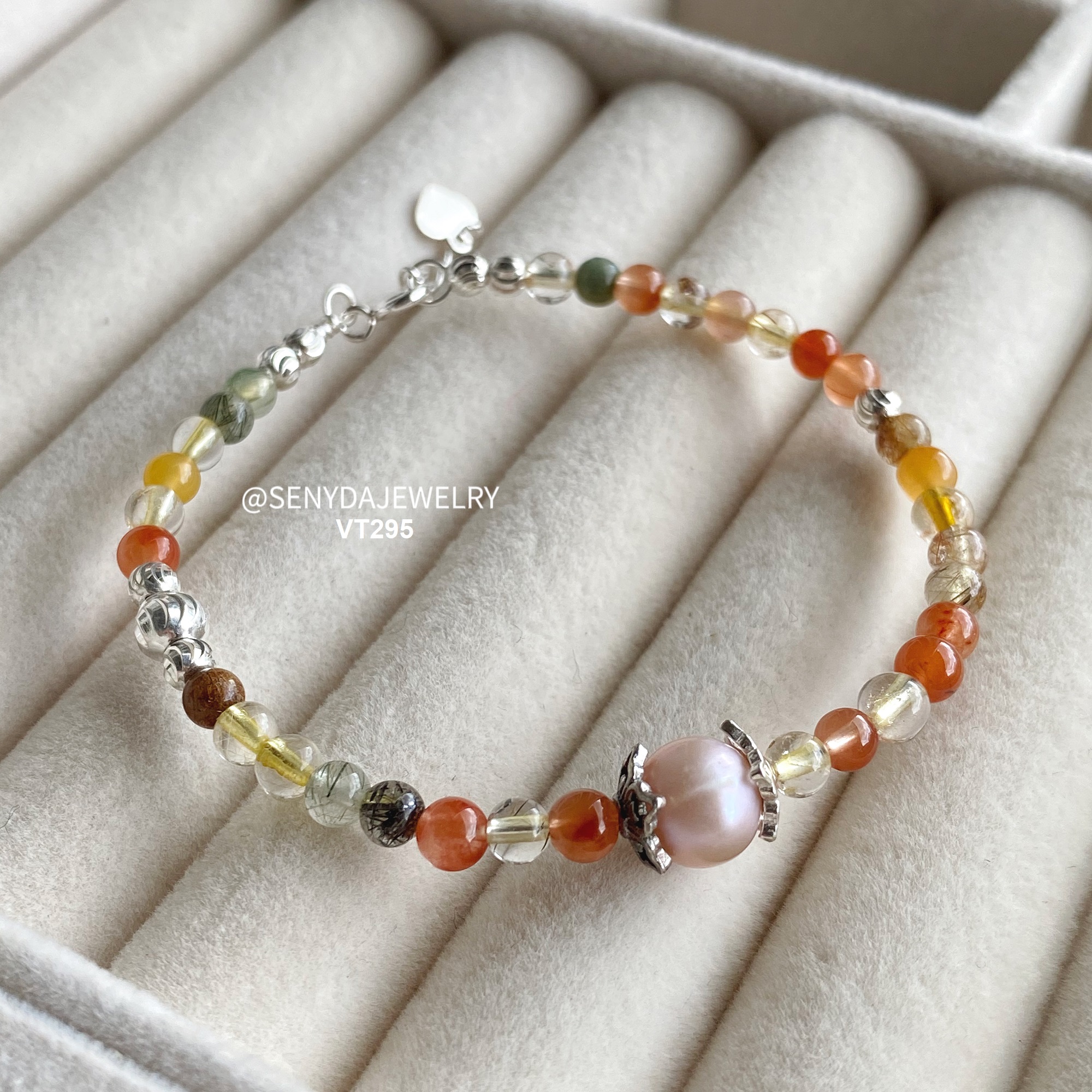 Mô tả: VT295 Vòng tay bạc Ý Senyda đá Thạch anh tam tài mix Ngọc trai nước ngọt