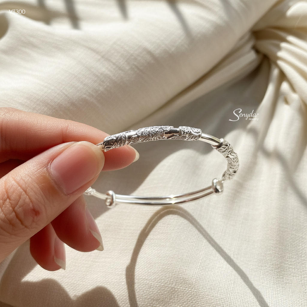 Mô tả: VT300 Vòng tay bạc Senyda hoa văn lá quấn
