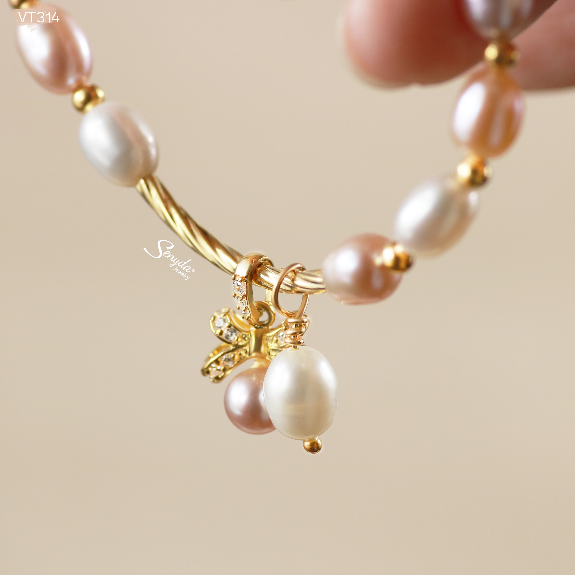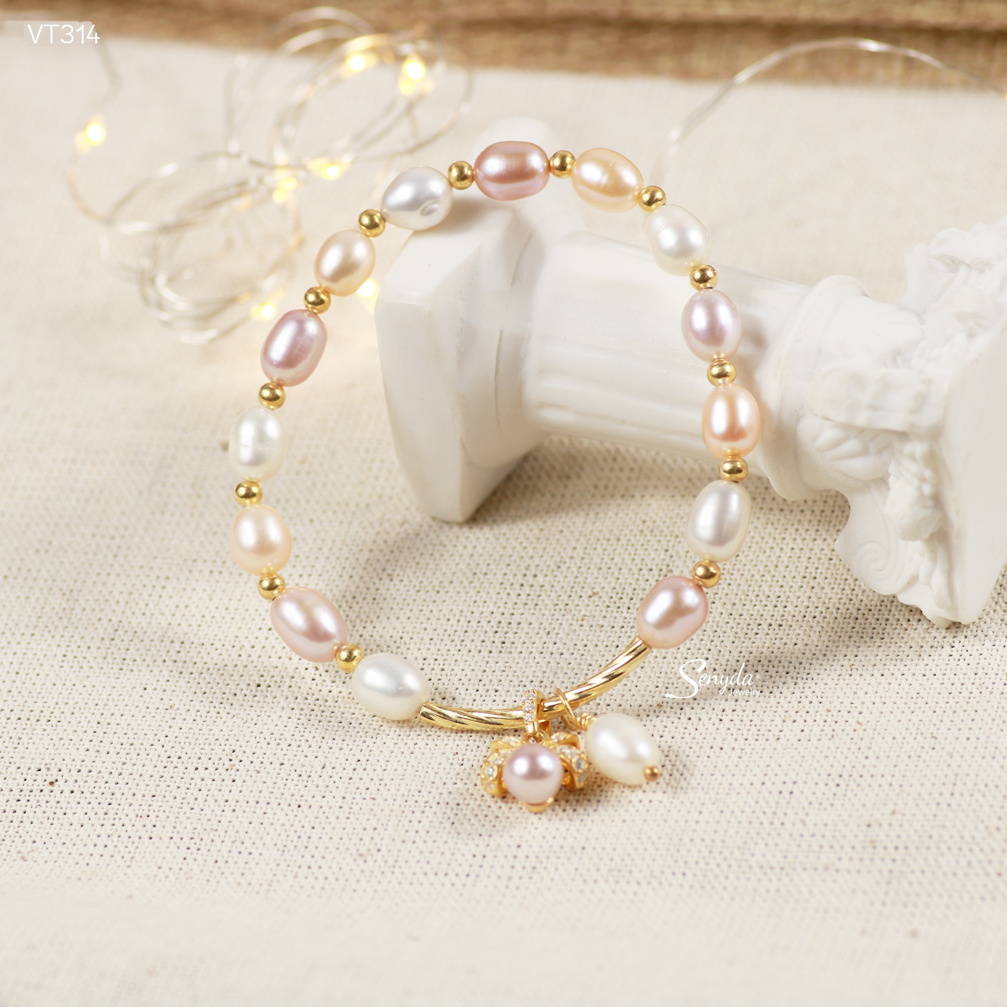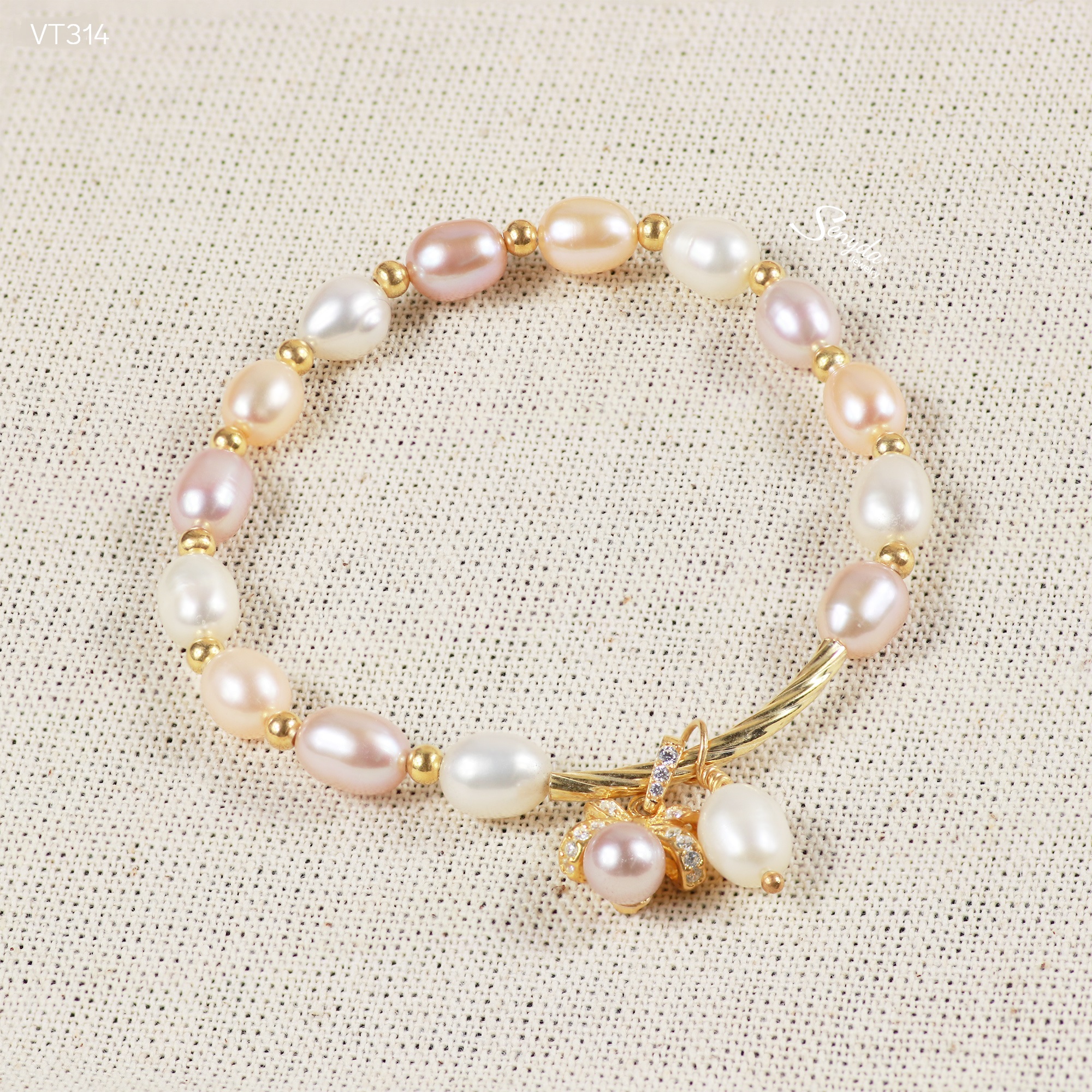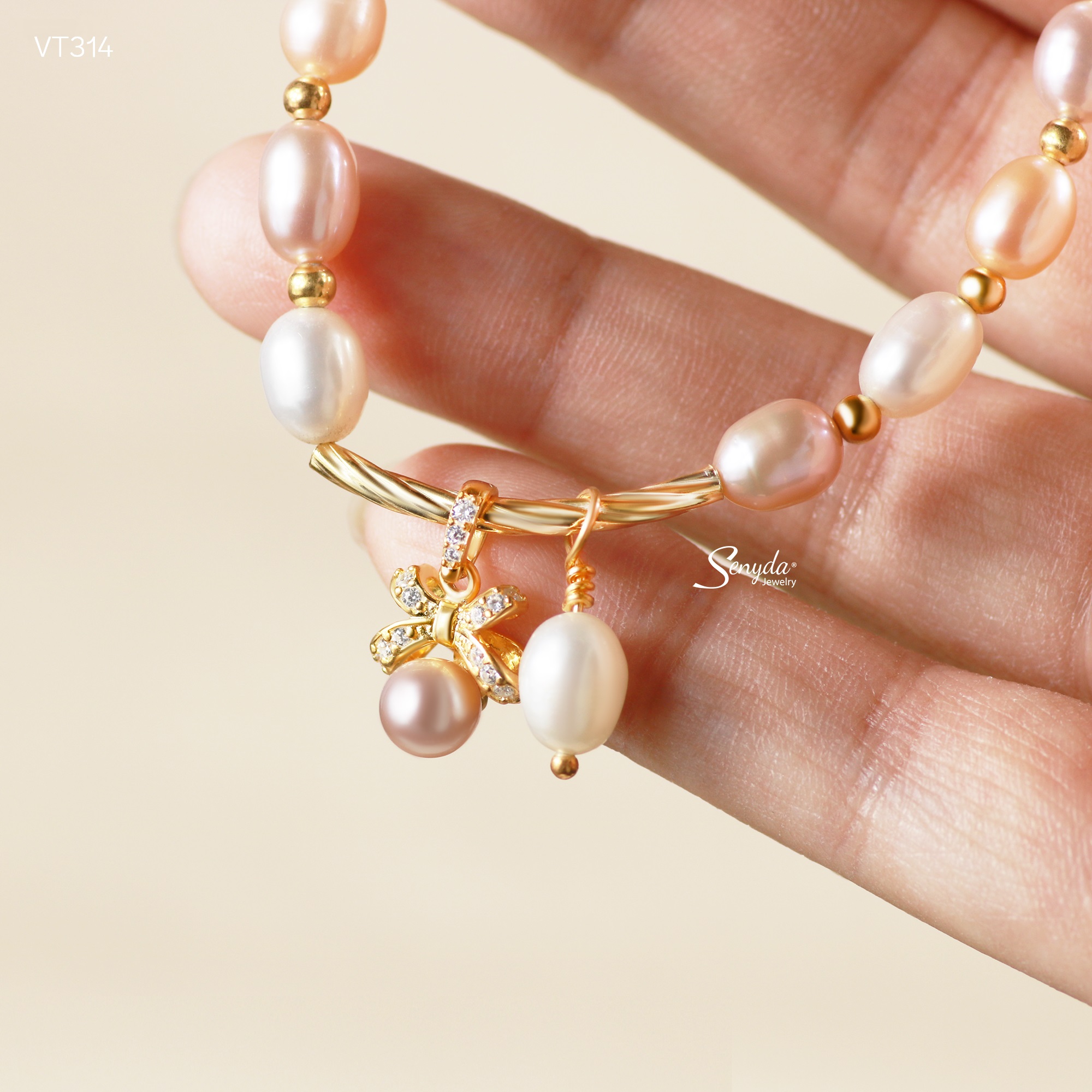 VT314 Vòng tay Senyda full ngọc trai nước ngọt xen bi charm treo