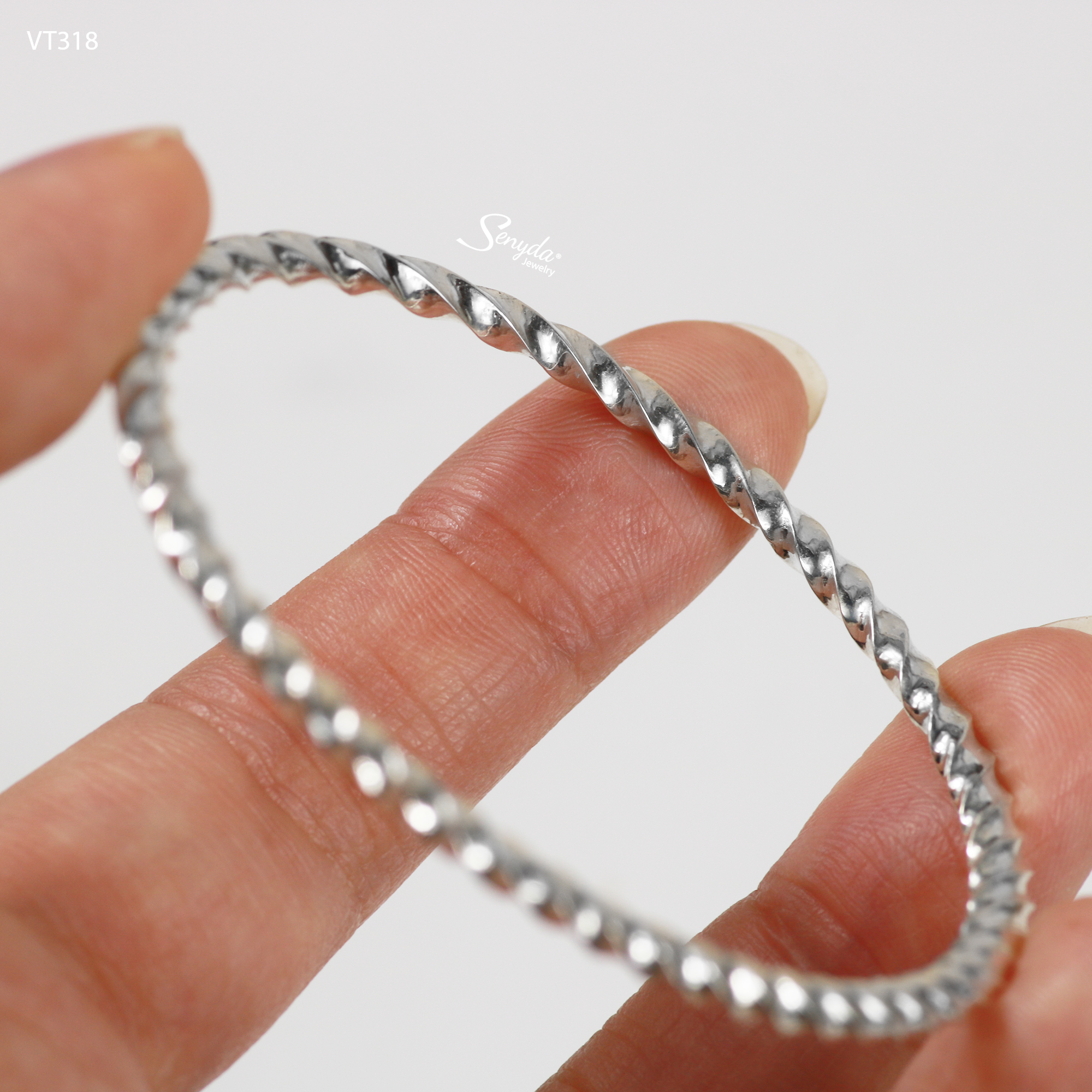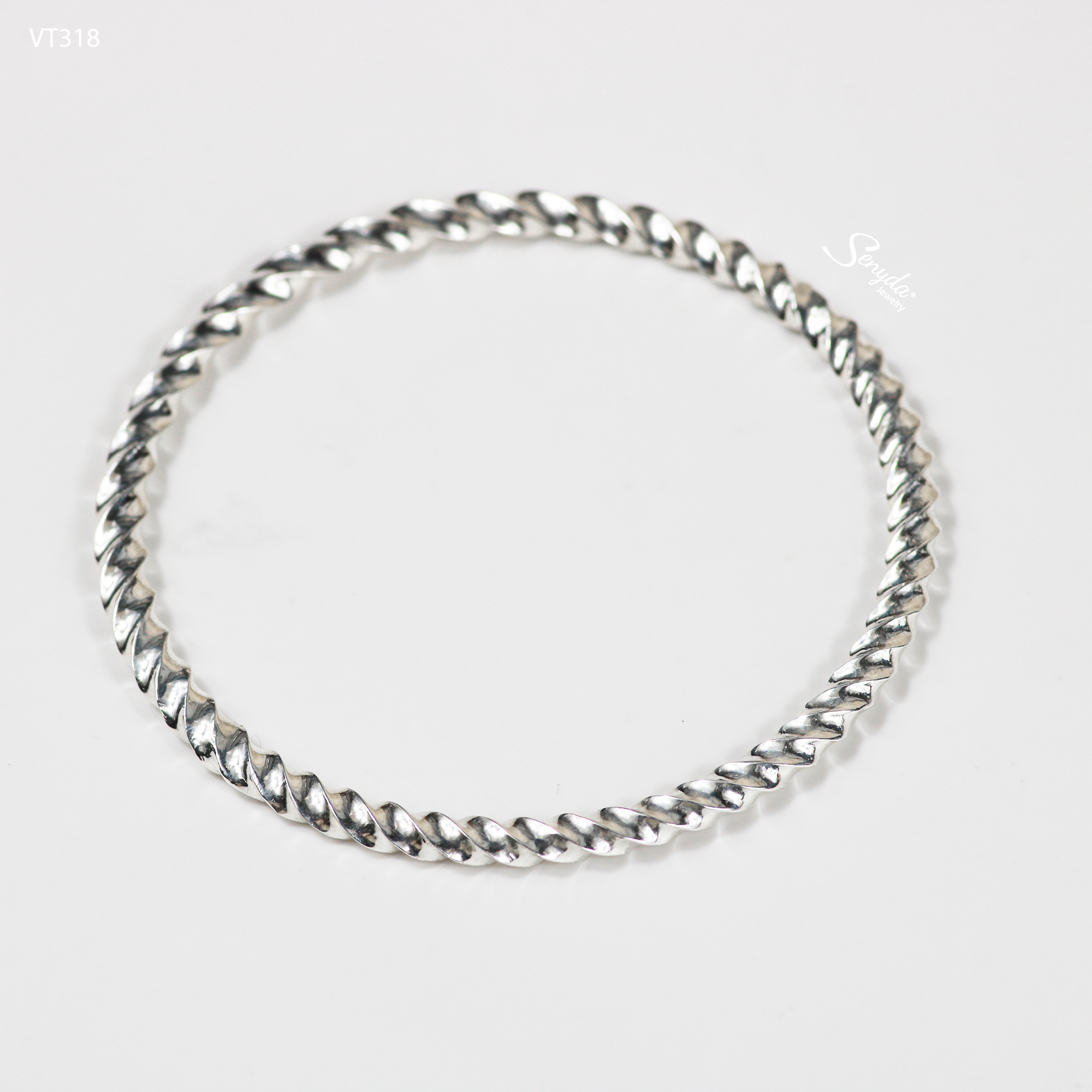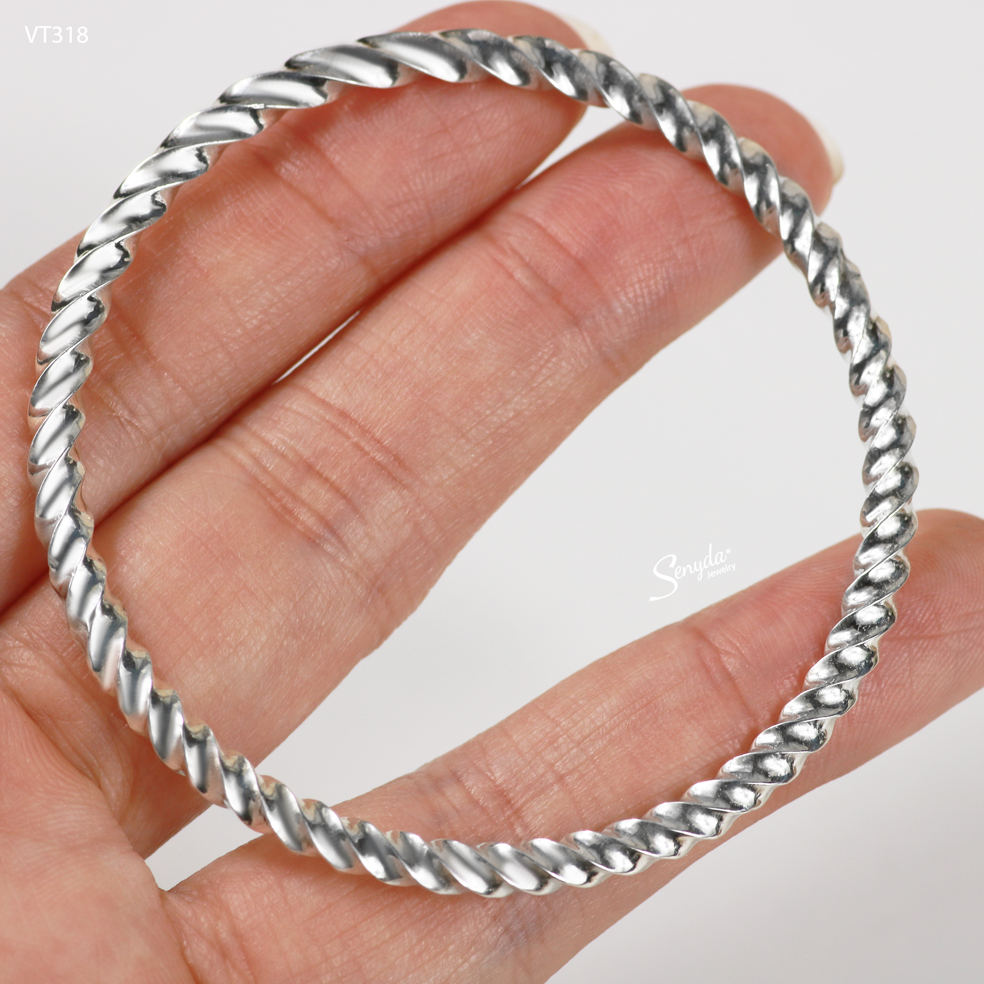 Mô tả: VT318 Vòng tay bạc Ý Senyda trụ xoắn trơn